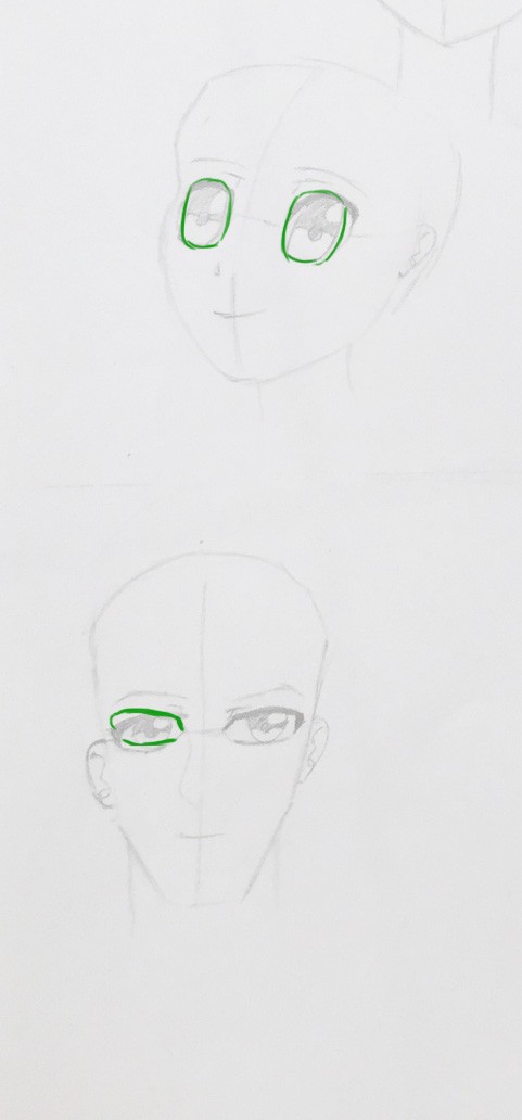 Tes yeux sont globalement bien placés partout et avec une bonne taille. Tu as choisi un style très très féminin pour les yeux masculin. Pourquoi pas, du coup je suis resté dans l'idée pour corriger légèrement la forme et harmoniser les deux côtés. Pour la fille, tu as un œil trop gros et un œil trop petit et top décalé vers le bord du visage (ou trop éloigné du nez si tu préfères). Pour l'enfant, tu avais un œil trop petit et placé trop bas (presque sous la ligne du nez) et l'autre, incliné. Du coup j'ai corrigé tout ça ^^