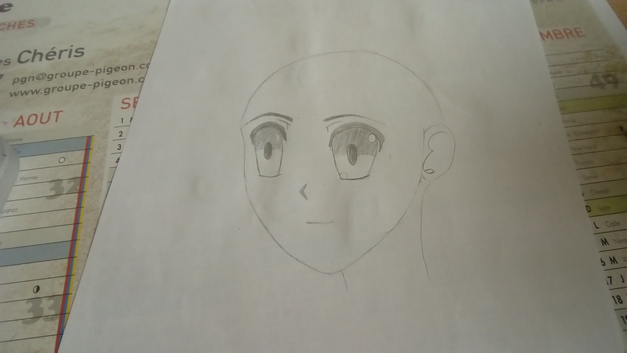 Attention aussi à bien aligner les yeux, ici celui vers le fond me semble plus haut que l'autre, ce qui n'est pas logique. Pour les prochains dessins, essaye de prendre des photos bien de dessus, sinon j'ai des déformations dues à la perspective qui fausse ce que je vois ^^