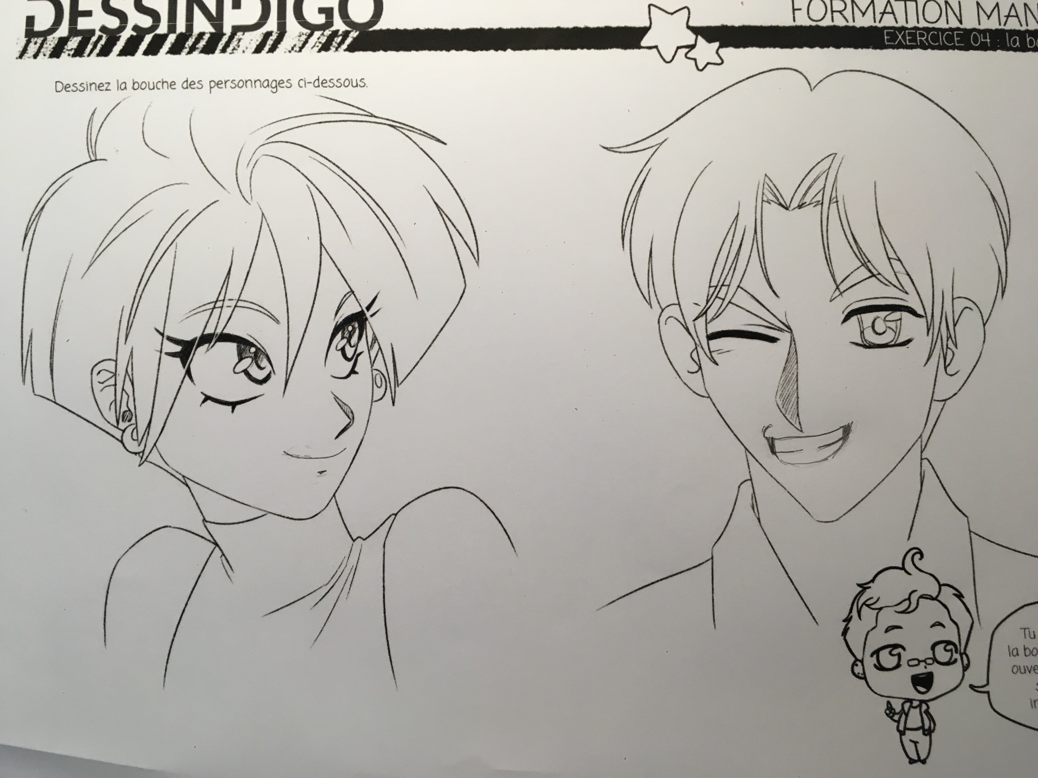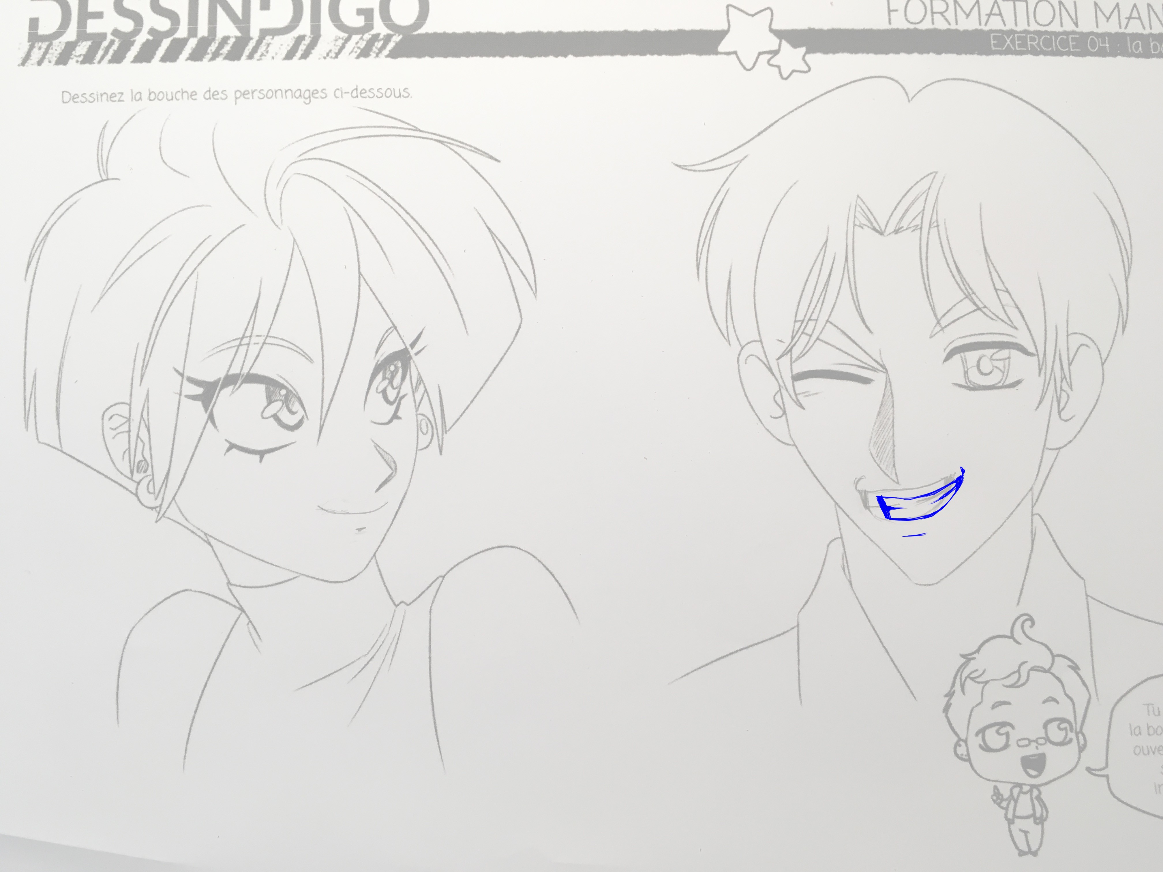 Voici les dessins que j’ai faits pour la bouche. J’en ai fait 2 différents pour essayer.