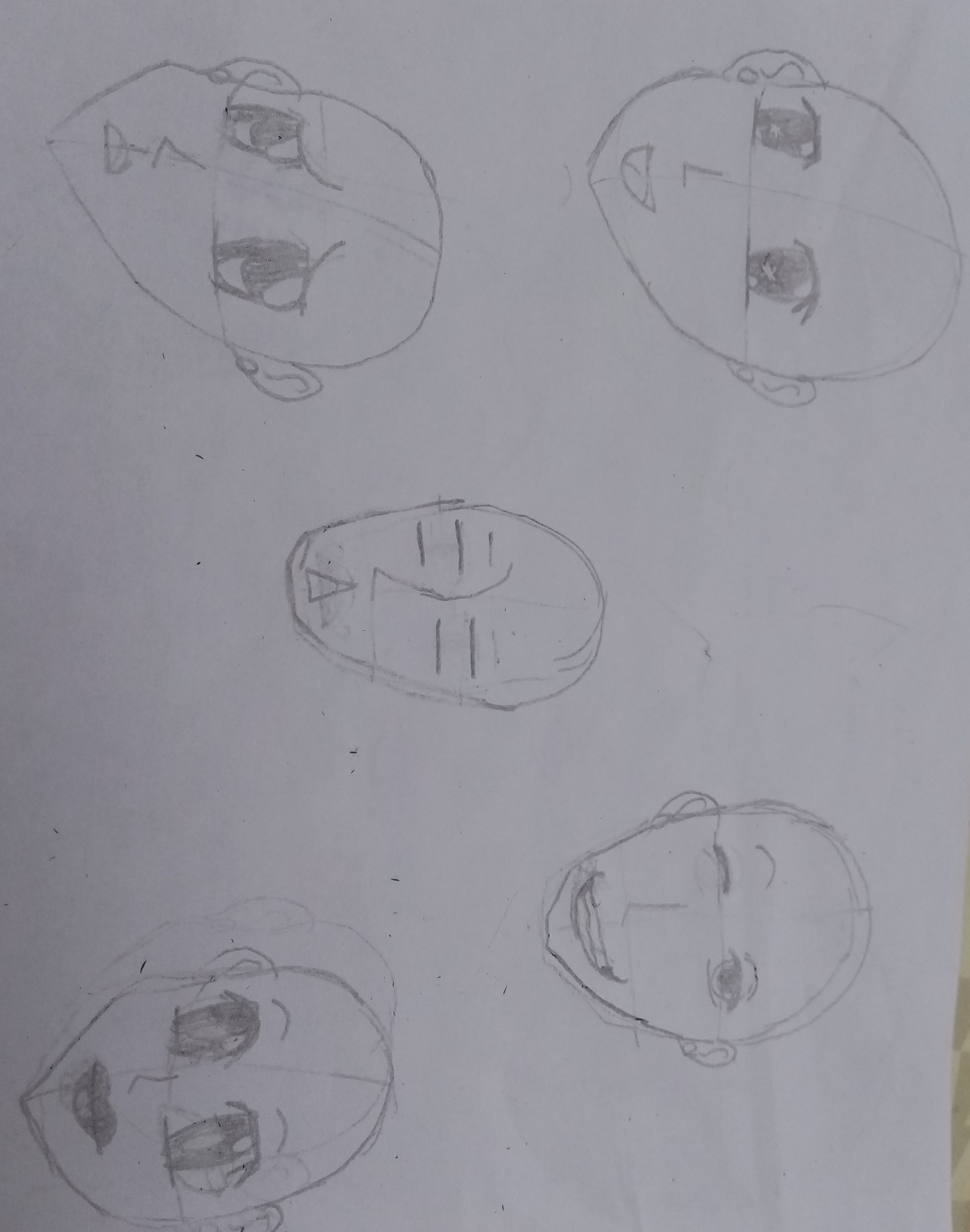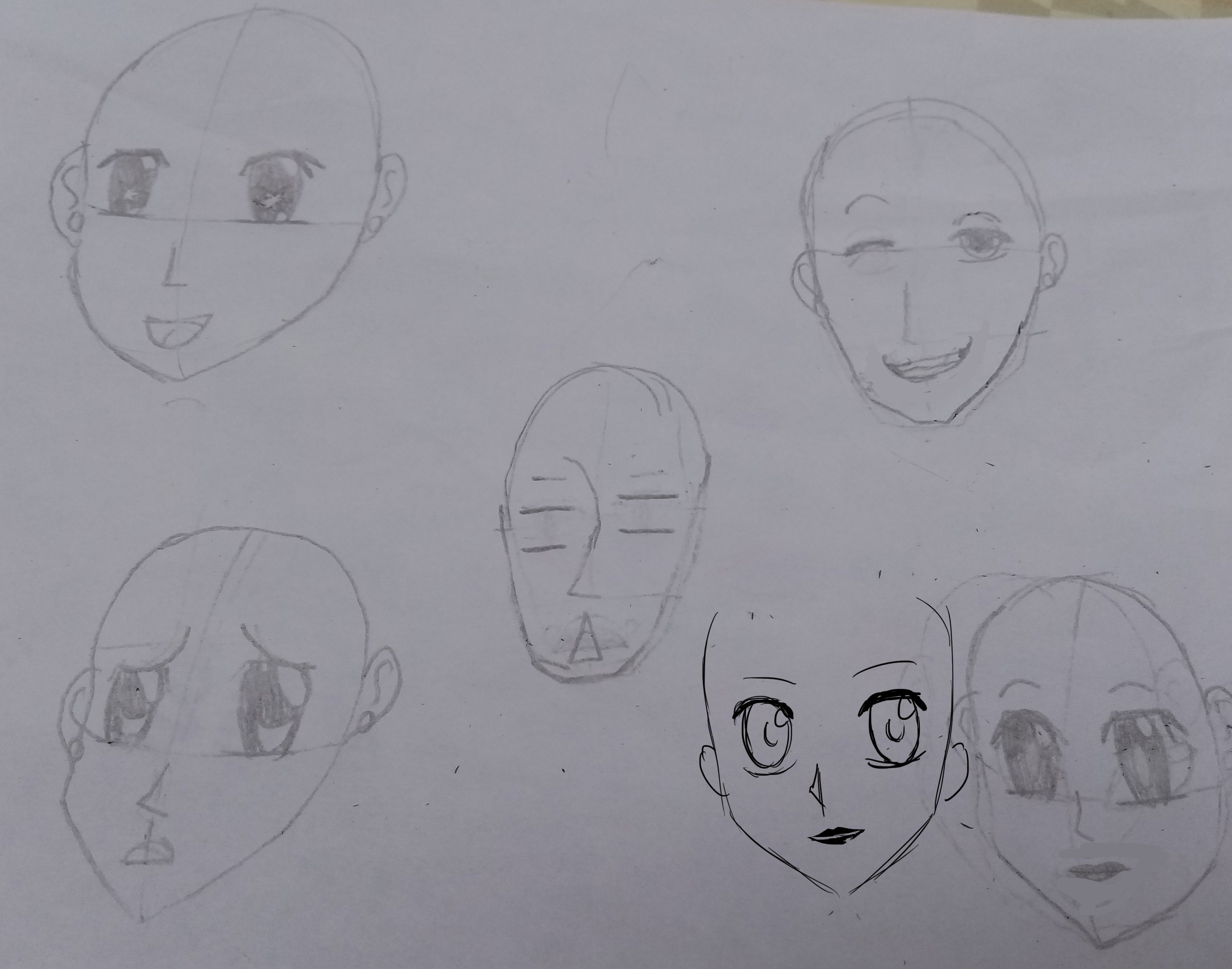 Not bad, the 3 on the left are cool, although the mouth is placed very low since the nose is placed low, so I assume it's a boy and it works well ^^ You've even gotten ahead in another class where we focus on facial expressions :D