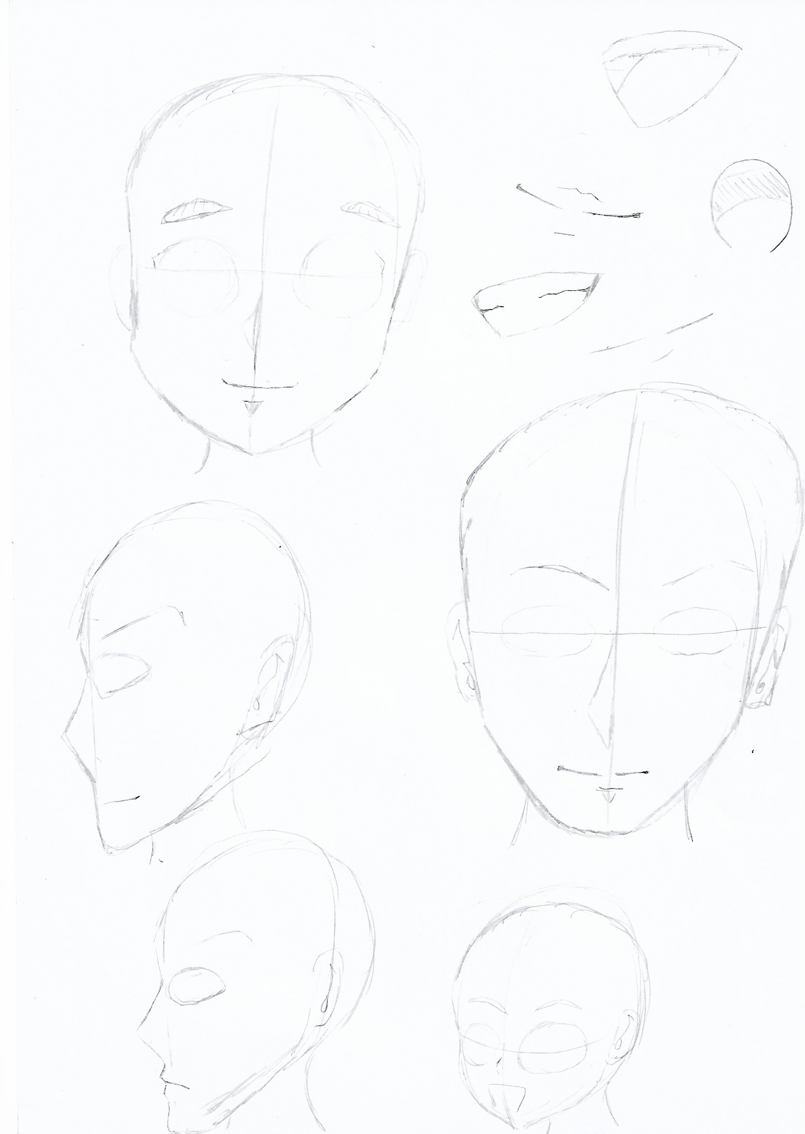 C'est pas mal, les 3 à gauche sont cool, bien que la bouche soit placée très bas vu que le nez est placé bas, donc je pars du principe que c'est un garçon et ça fonctionne bien ^^ Tu as même pris de l'avance sur un autre cours où on s'intéresse aux expressions du visage :D