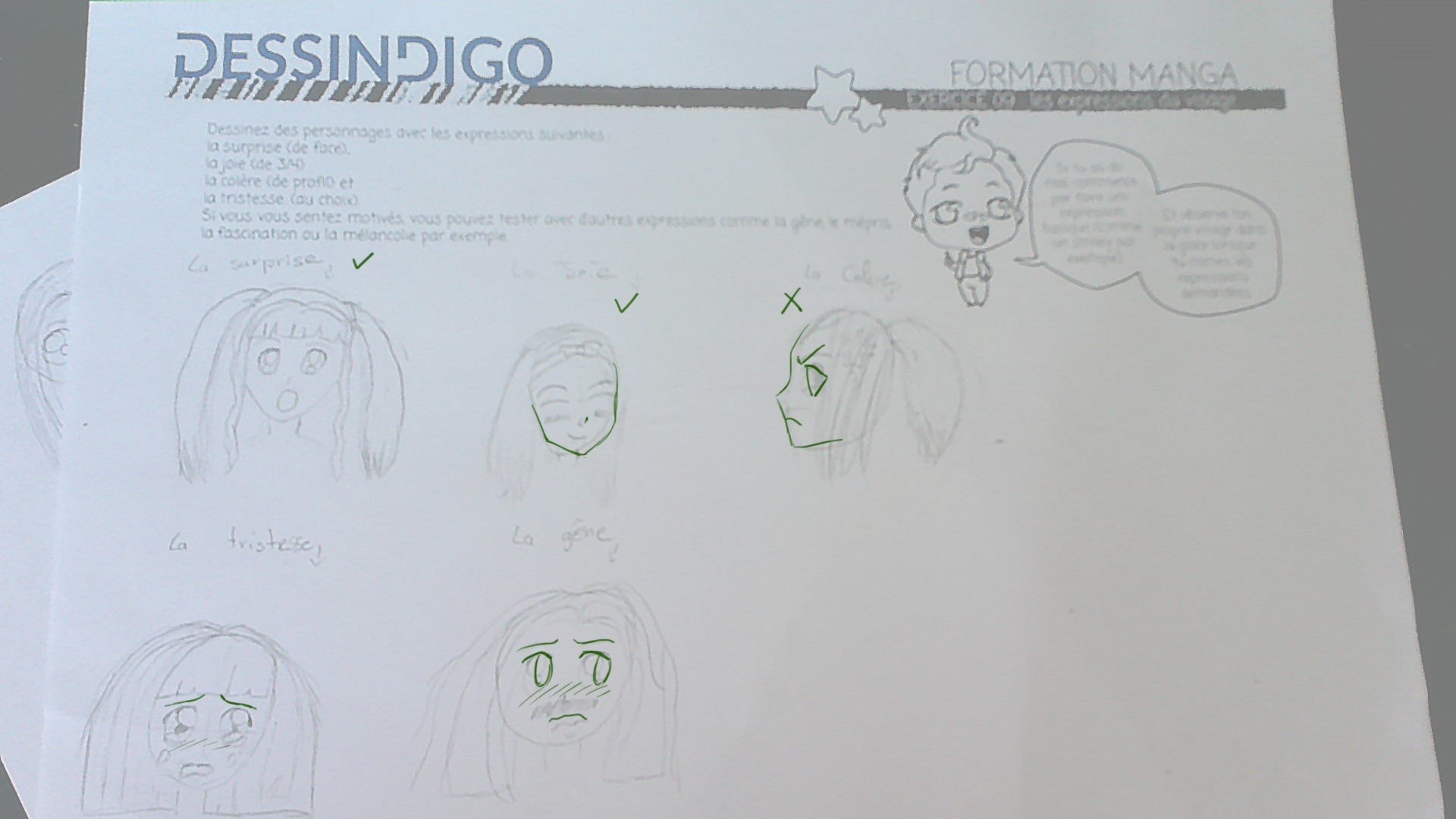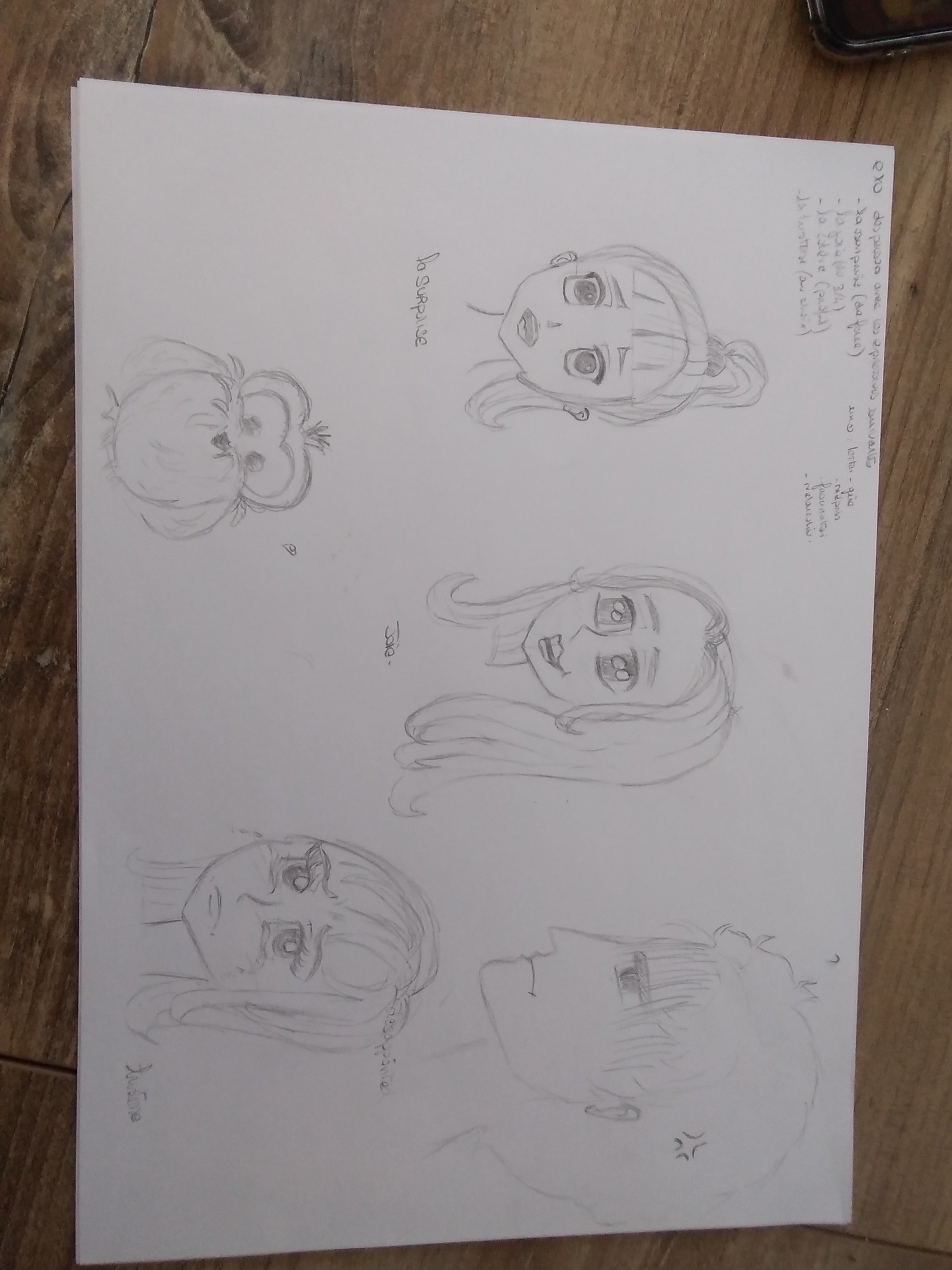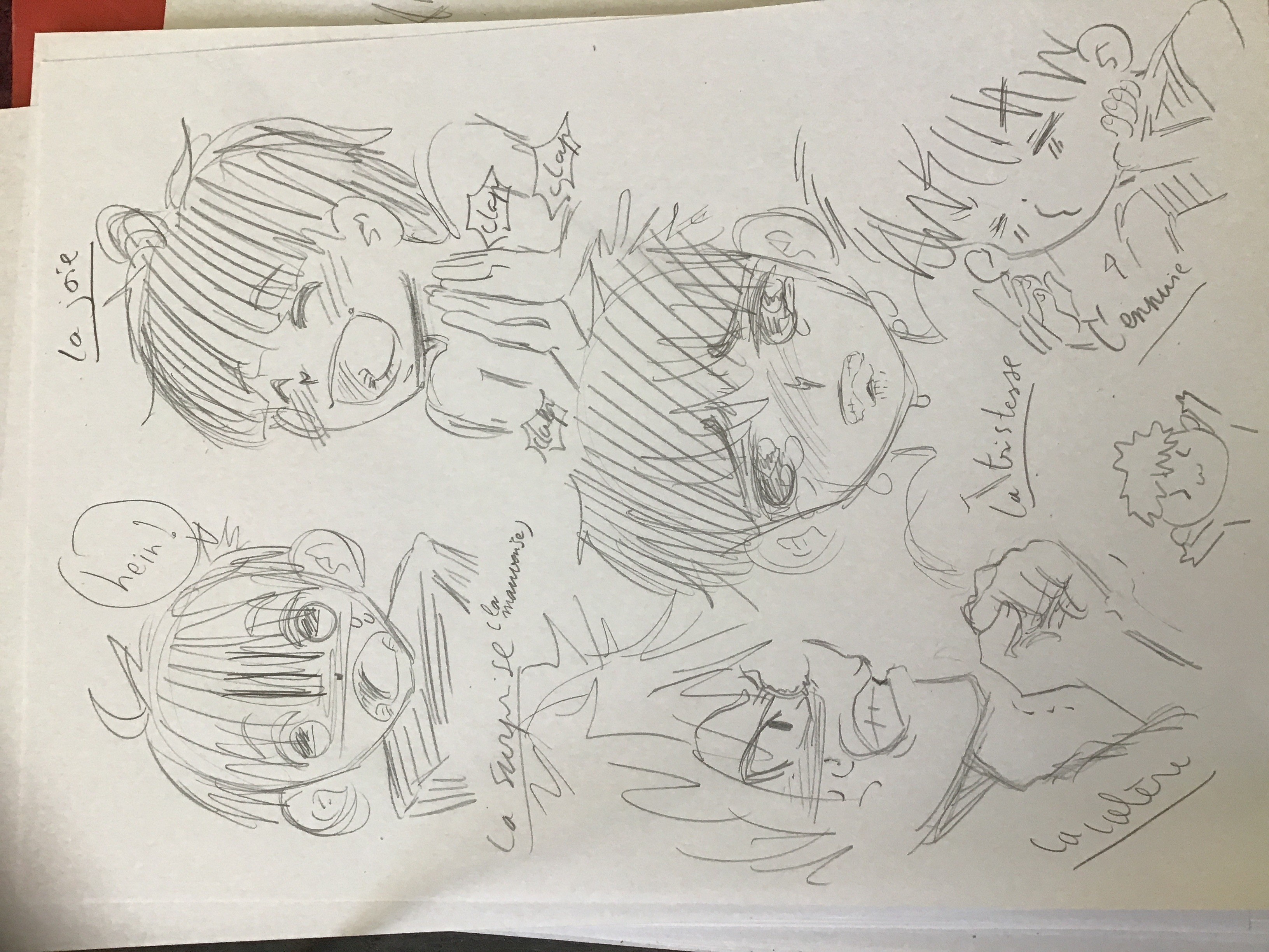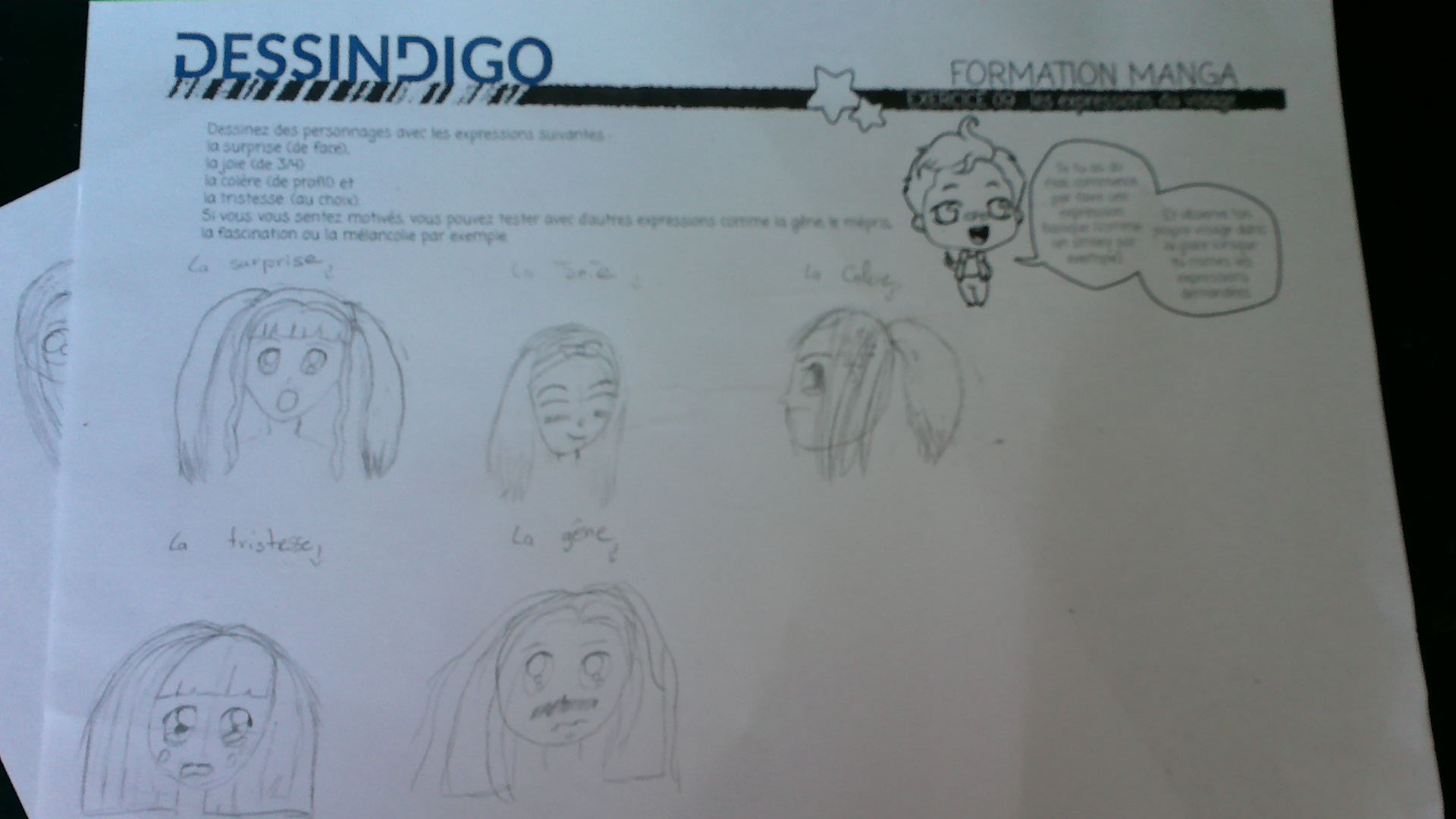 Attention n'oublie pas de bien construire tes visages, même si l'exercice porte sur les expressions, c'est toujours une bonne occasion de pratiquer touuuuut ce que tu as vu avant ^^