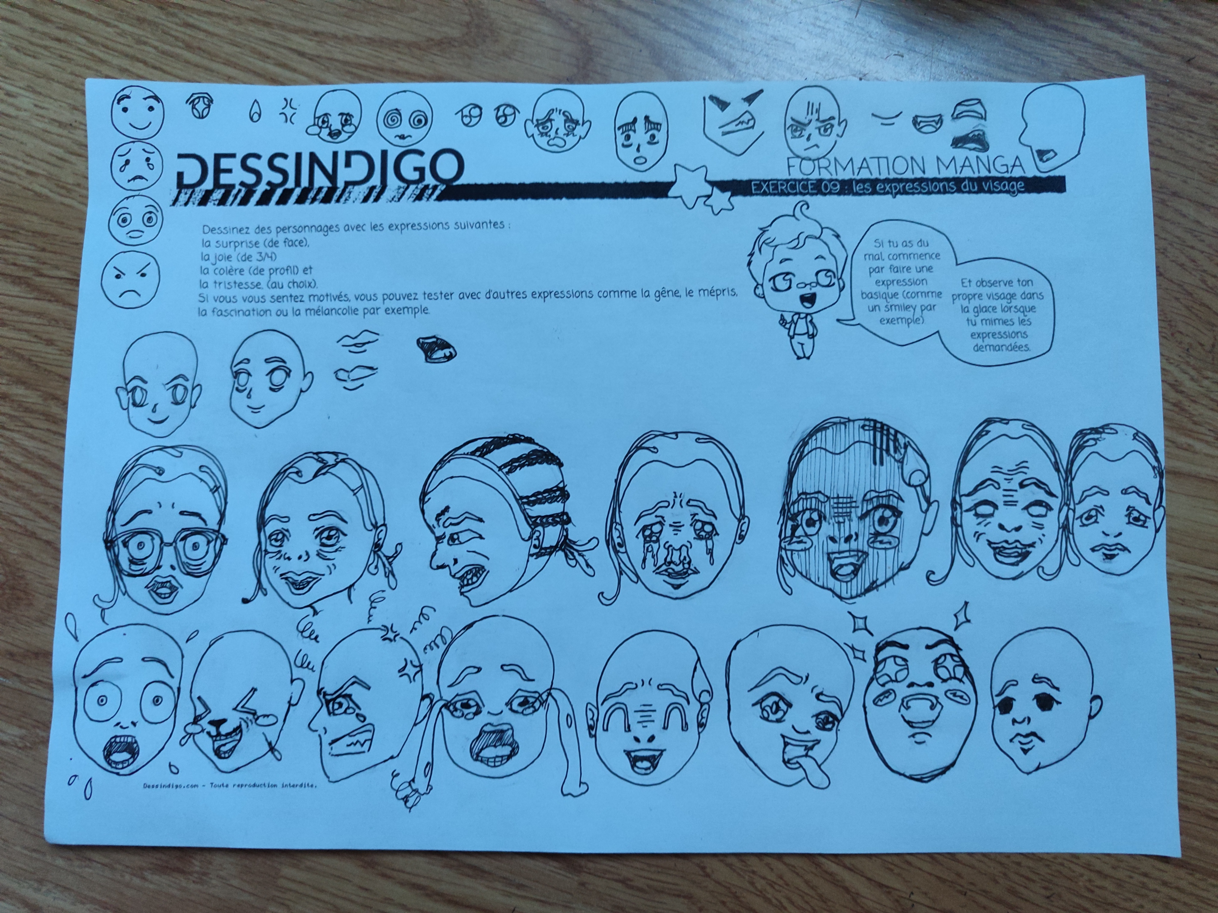 Bonjour. Je vous envoie mon exercice. J'ai fait les deux ligne dans le même ordre qui était donner au debut: surprise , joie, colère... , mais dans la première ligne j' ai oublier la fascination?.Je vous remercie d'avance pour la corection