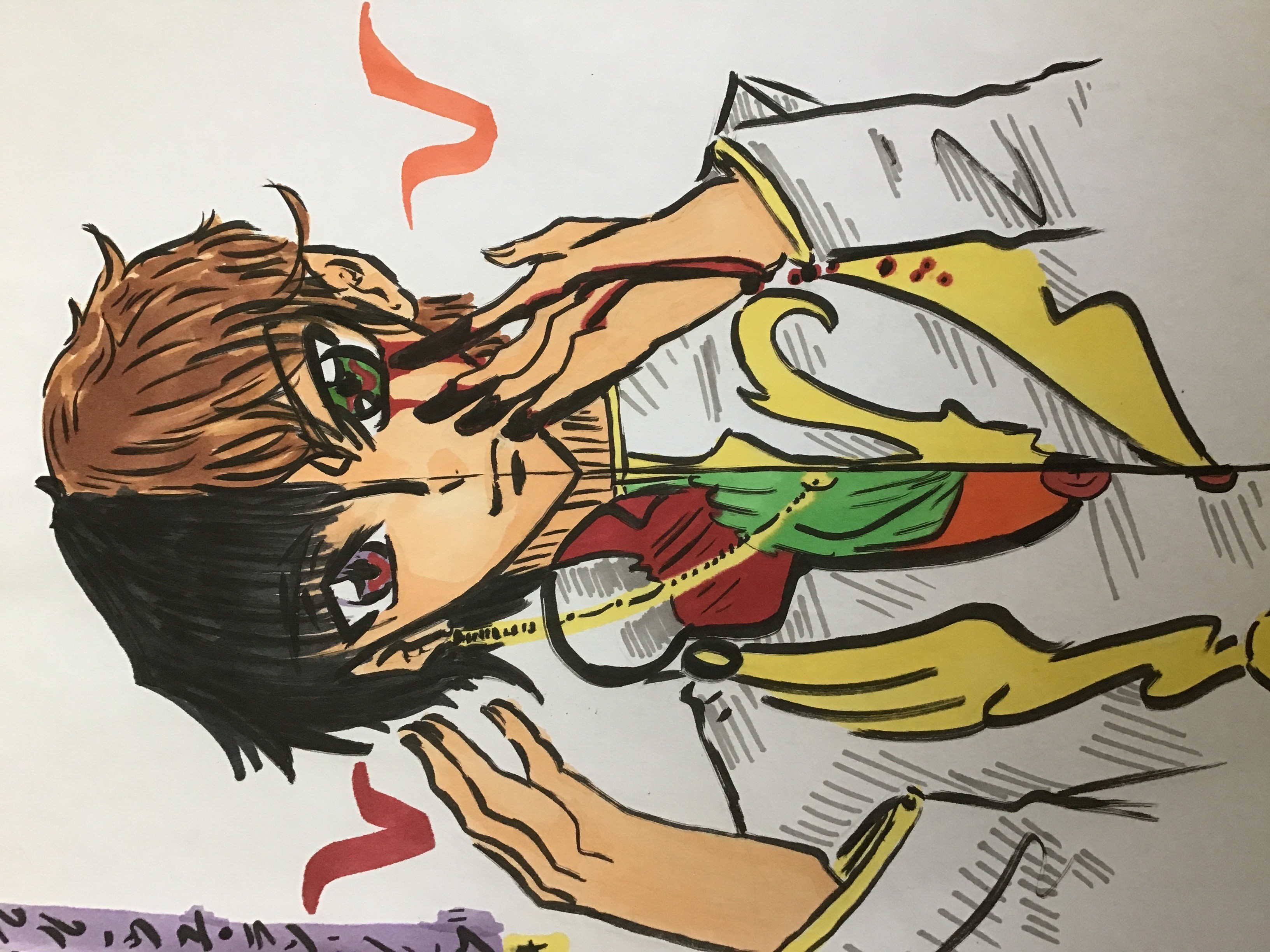Well, colors are not really my strong point to begin with, I must admit that water-based markers (the closest thing I had on hand to watercolors) are tricky to handle. I think I'm going to need a lot of time to work with them (*ê¦àº´ê³ê¦àºµ)