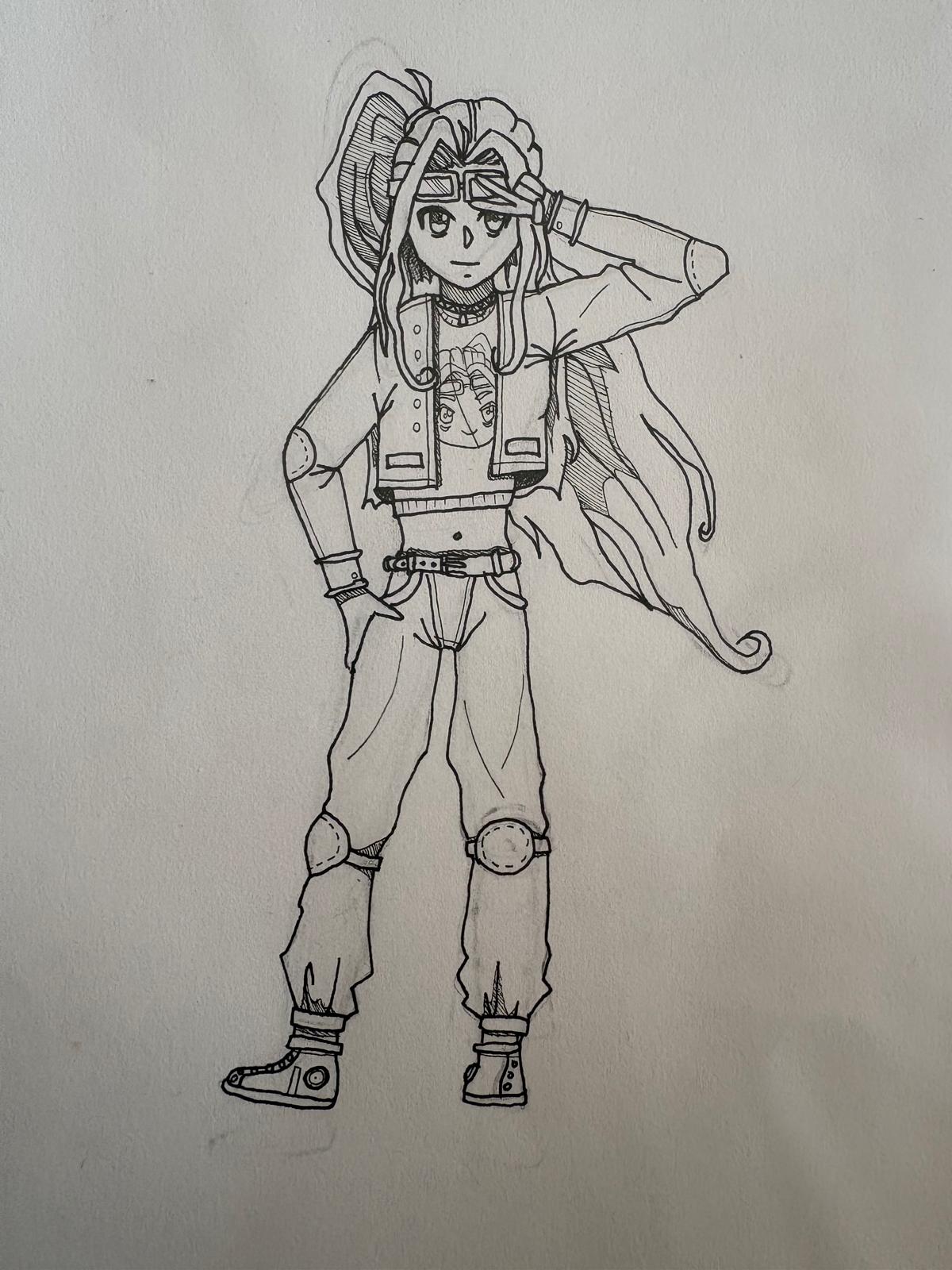 Your character is very cute, and the design of the clothes is not to be outdone, it is very striking! As corrections, I can tell you that the legs are a little short and thin. On the other hand, you could accentuate the axis of the shoulders to give it more naturalness, in the same way as with the head: a slight inclination would make it even better.