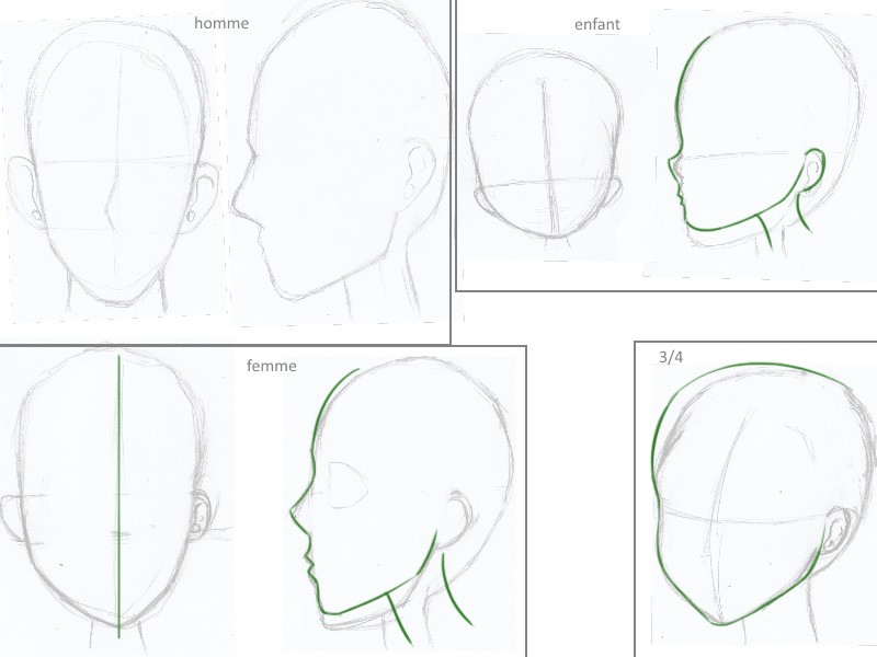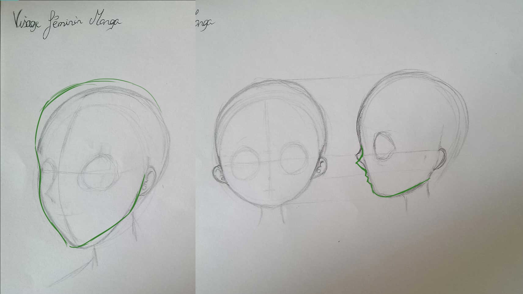 Pour le visage de face attention à la symétrie, sinon on est bon. Et pour le profil effectivement, tu as du mal, du coup, petite correction éclair ;p