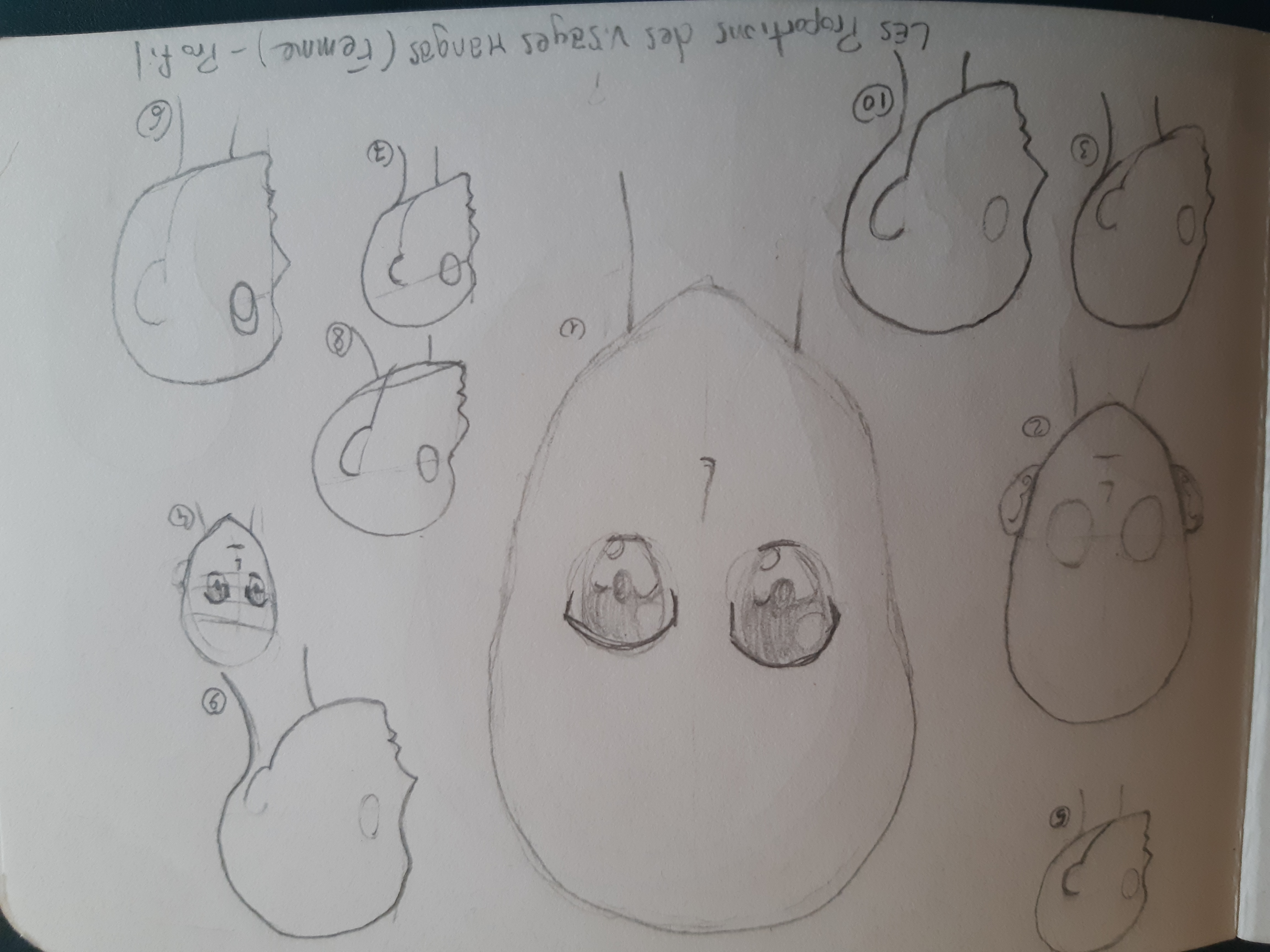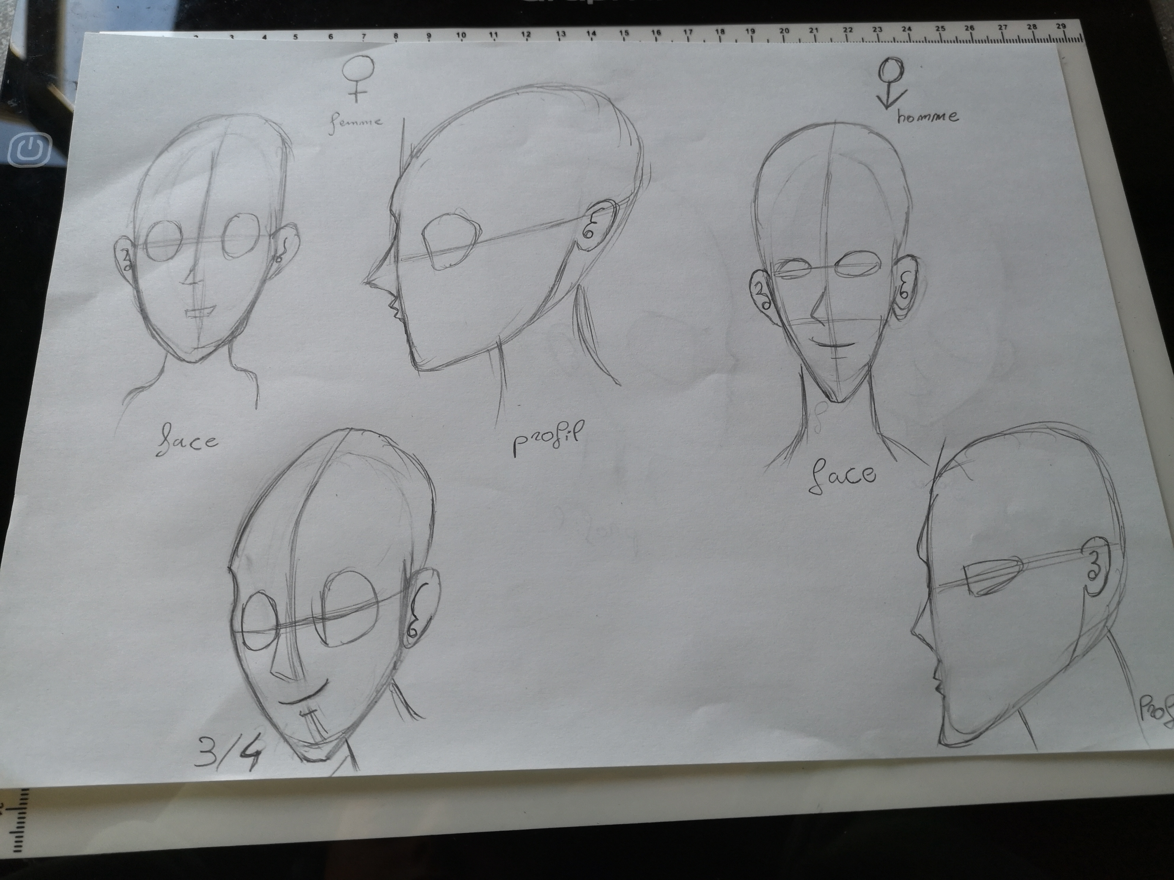 je vous présente mes premiers essaies du profil féminin. J'ai mis des chiffres à chaque essaies afin de savoir de quoi on parles ;). Perso j'ai l'impression que j'ai bien réussi le 9, 10 et 11. J'avoue avoir eu des difficultés avec la mise en place du front, du nez, de la bouche et du menton au début. Et puis il y a eu aussi le fait que je trassais des ligne droite pour positionner les éléments mais une foit que j'ai un peu mieux compris, ça allait mieux.