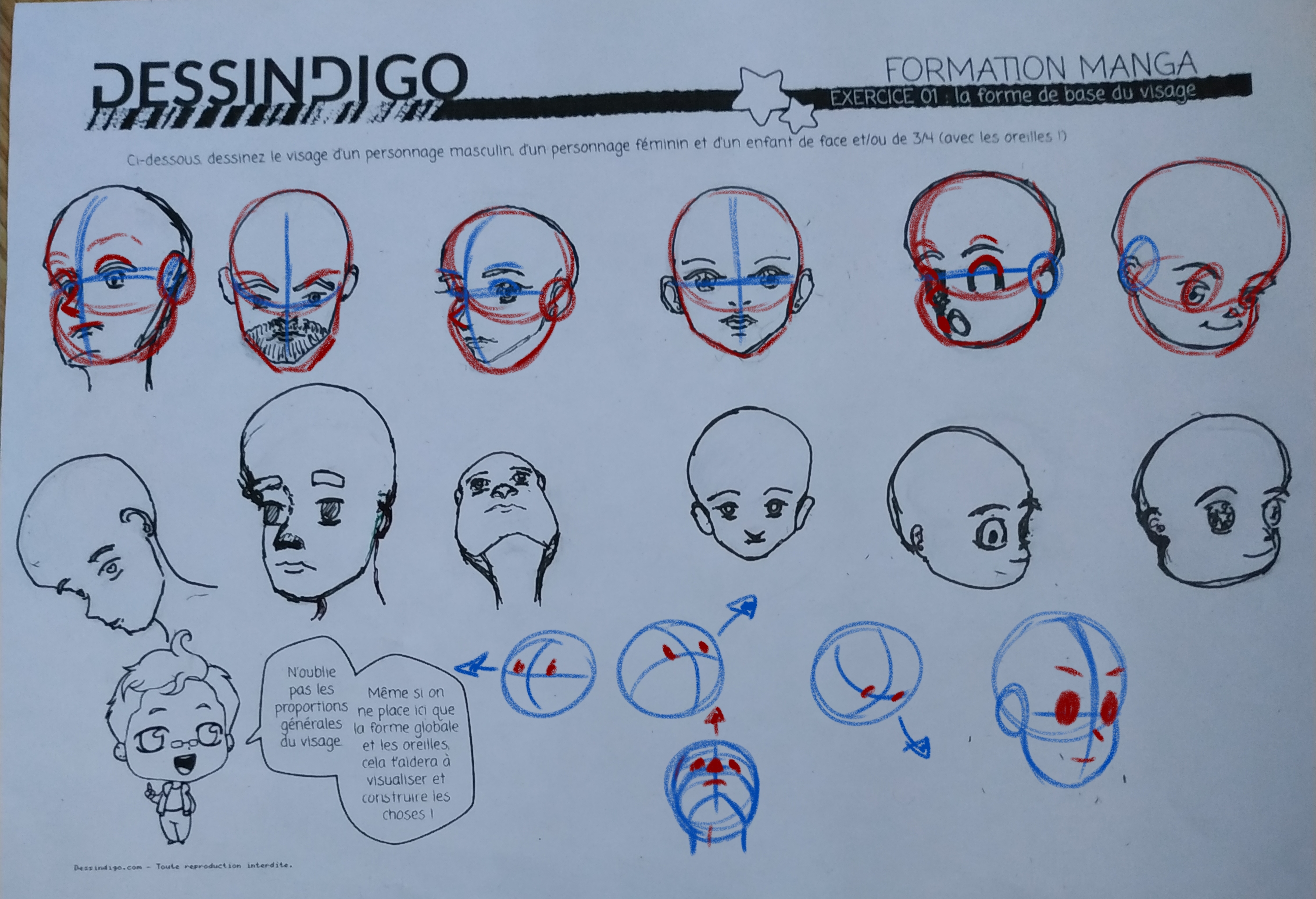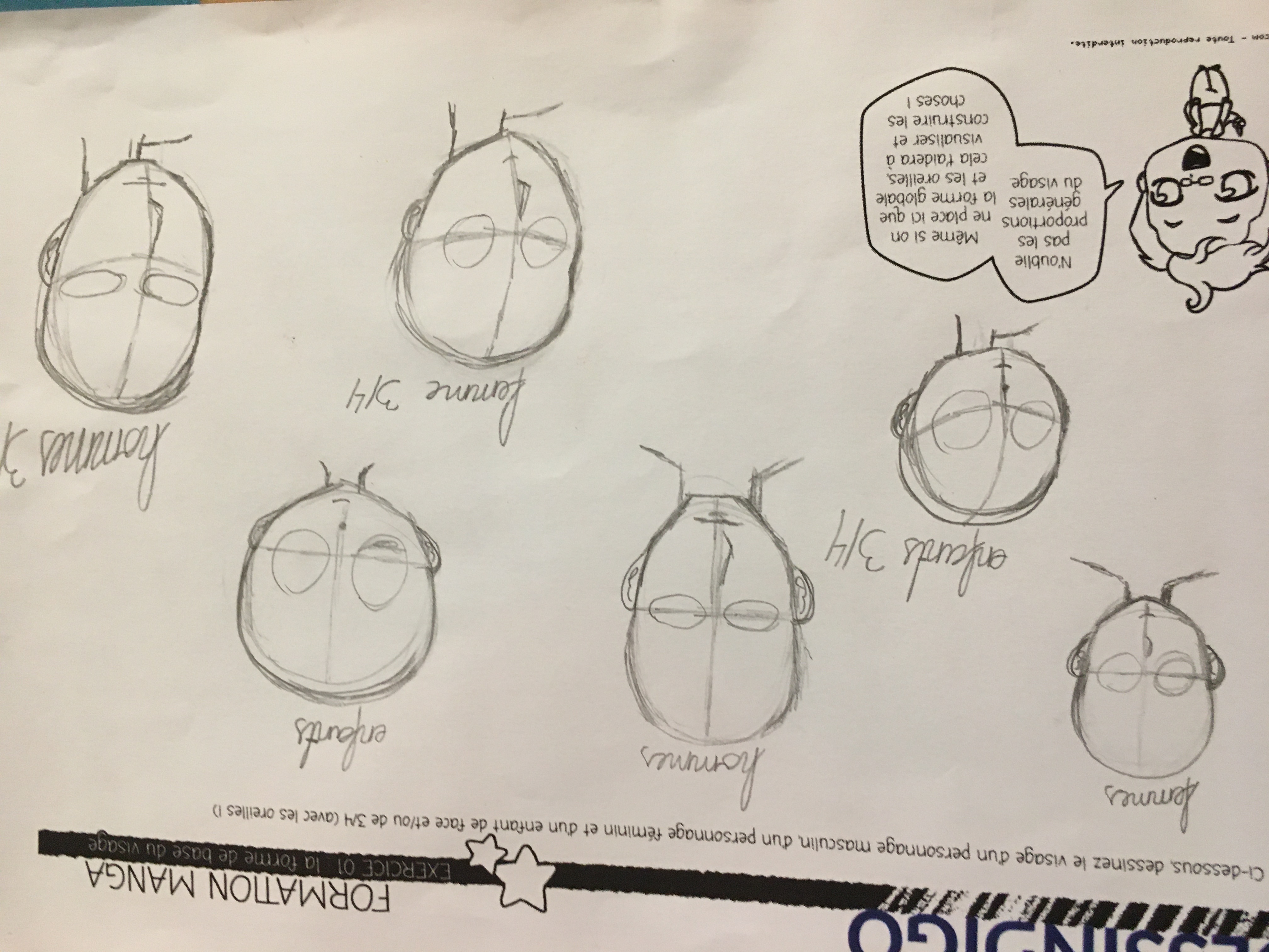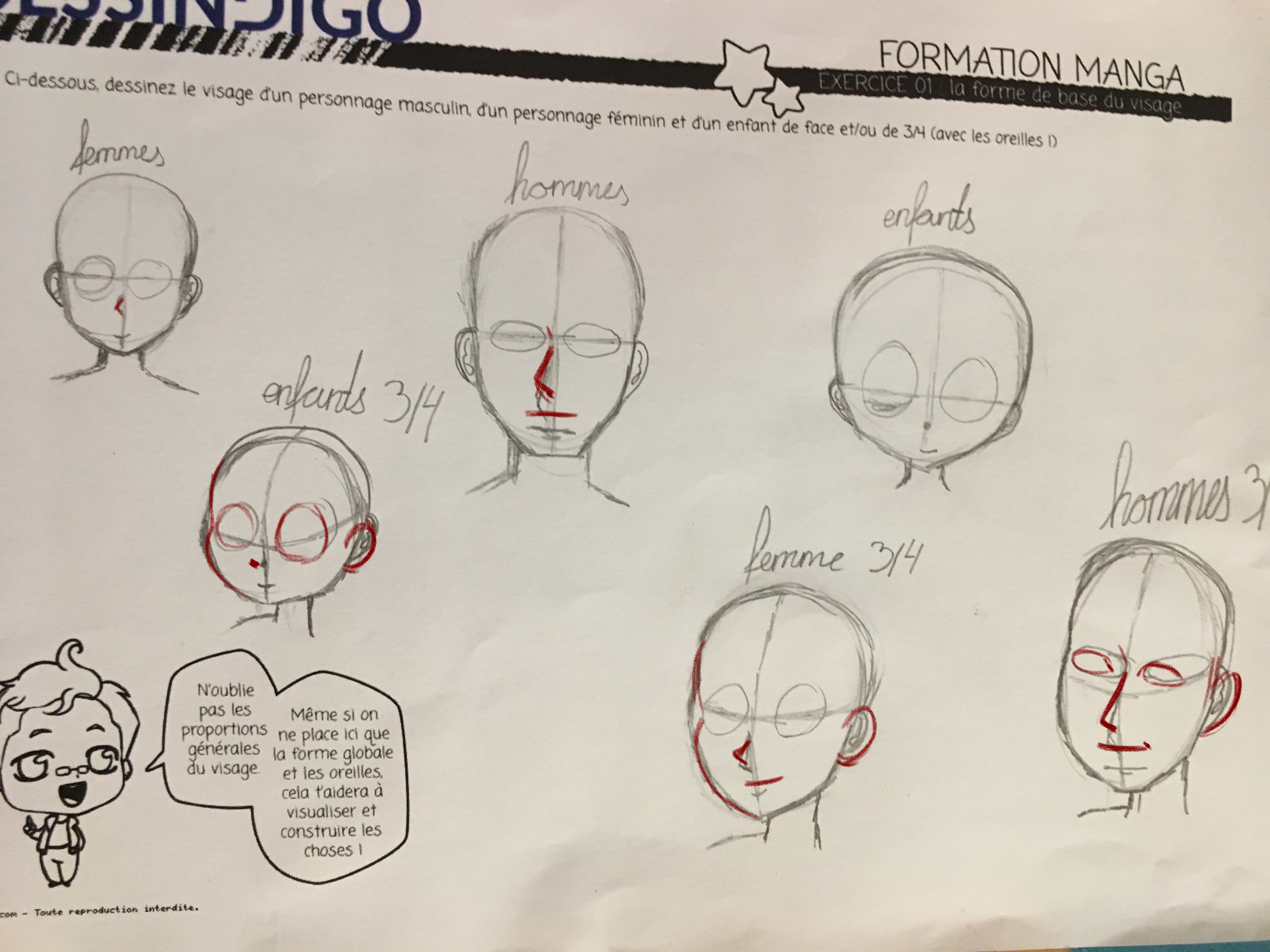 Bonjour j'ai fait les exercices sur les proportions du visage et voici le résultat. Merci d'avance pour la correction et les conseils 😁