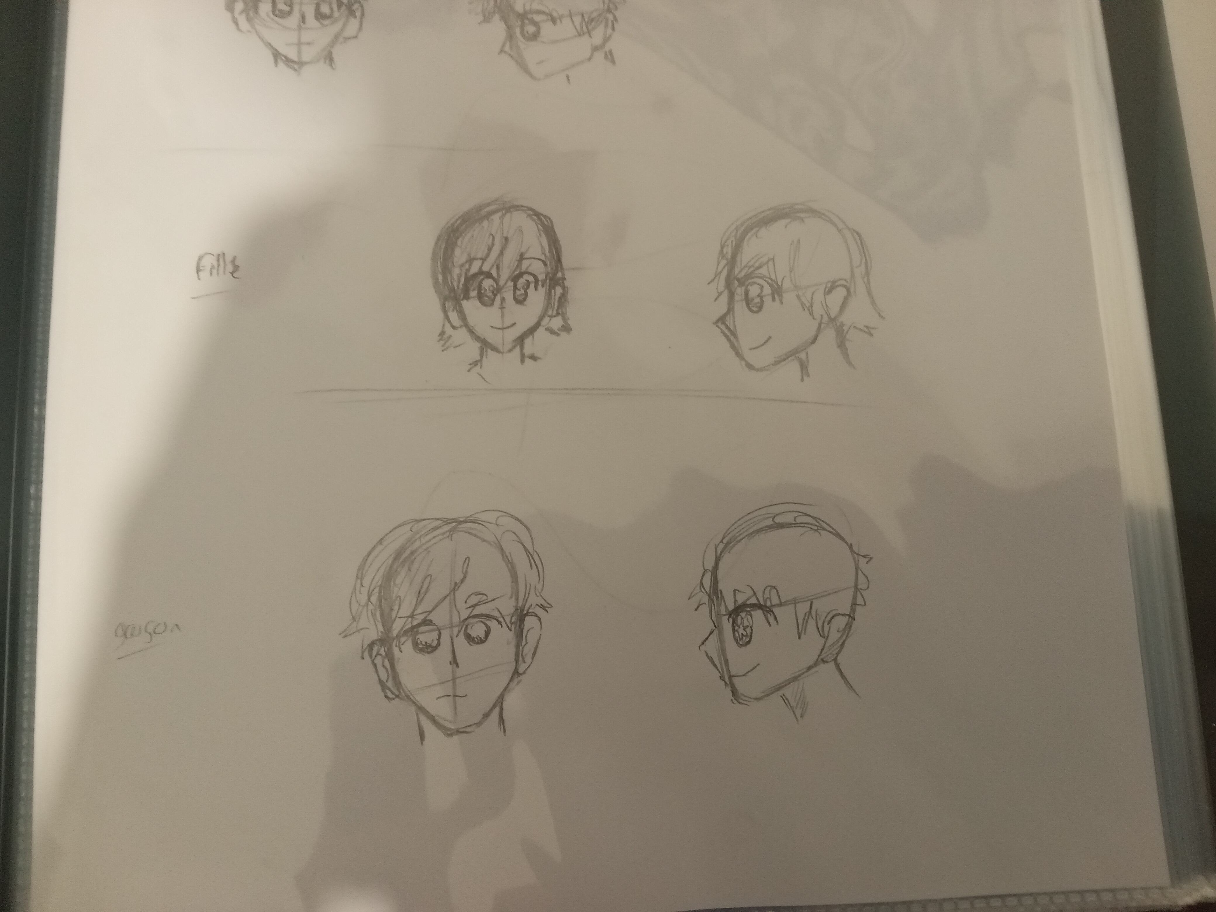 Globalement c'est plutôt pas mal :) il y a quelques détails à revoir pour améliorer tout ça. Déjà, pour tous les visages, tu n'as pas besoin de dessiner les bouches de manière aussi detaillé, en manga un simple trait suffit bien souvent :) Ensuite, de face tu as réussit à bien saisir les formes des visages et du crâne, mais de 3/4 et de profil tu perd un peu le volume du crâne, n'hesite pas à réutiliser des traits de construction pour être sûr de bien conserver tous les volumes :)
