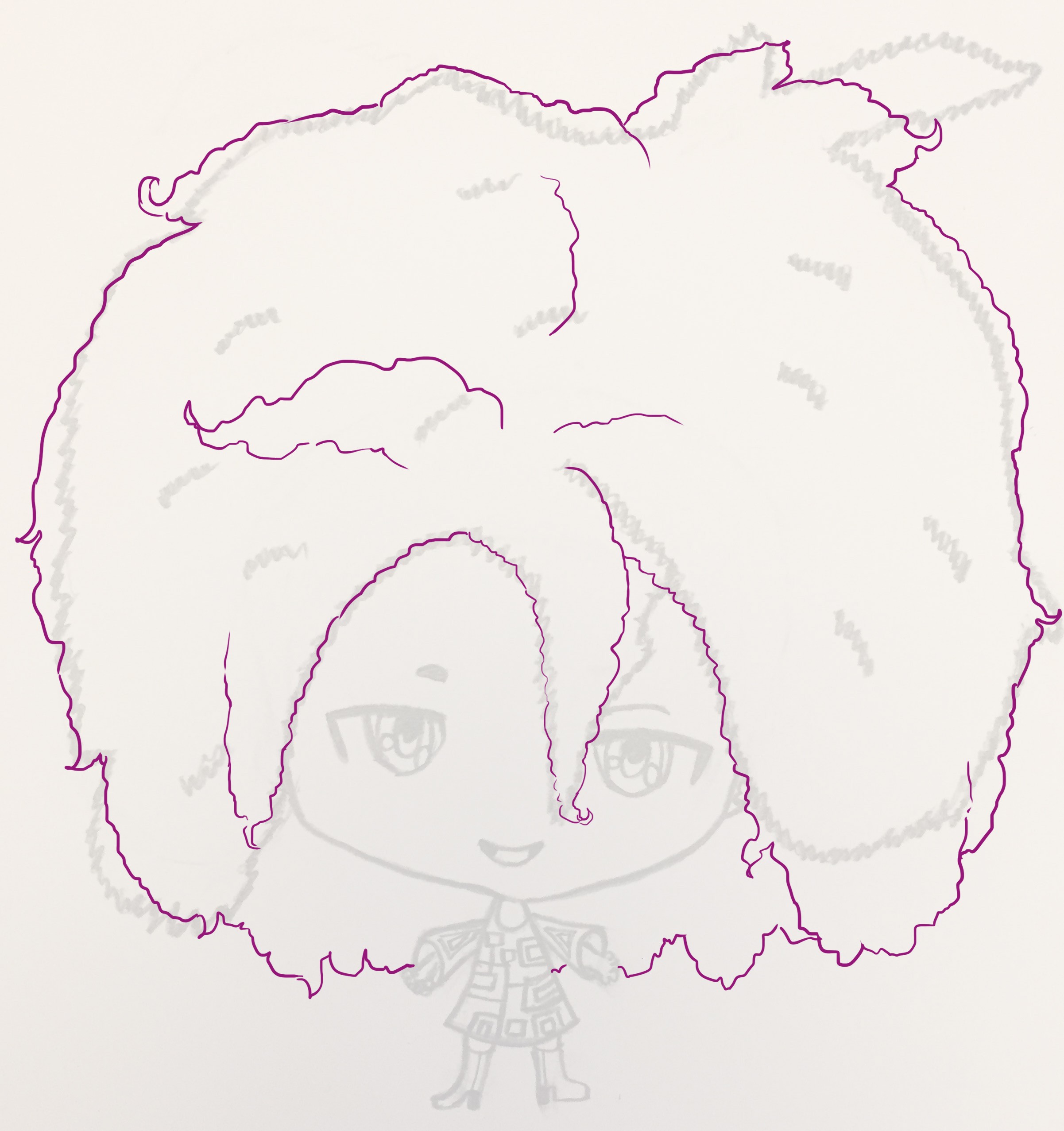Ah, I suspected as much, so in that case, the general shape is not accurate, and the small details you placed in the hair are far too regular: all the same length, spaced fairly evenly, etc. I’m attaching a small correction to help you ;p Don’t forget that kinky hair is curly hair, with curls that are more or less small, so use wavy lines rather than zigzags :)