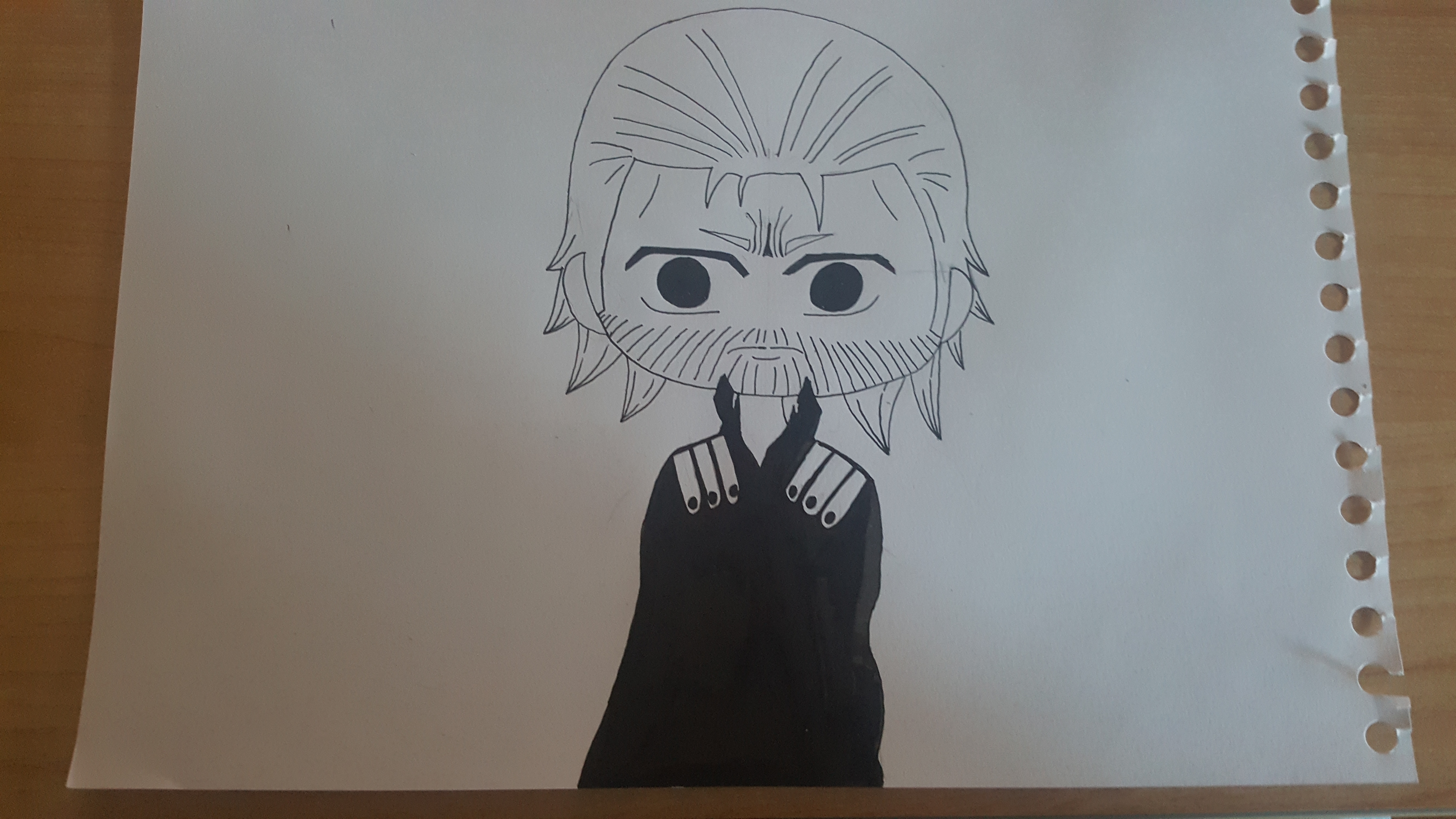 Excellent your chibi, you made the character cute while retaining his serious expression! Just be careful with the gap between the two eyes, which should be roughly the size of a third eye. In your drawing, the eyes are a bit too close together.