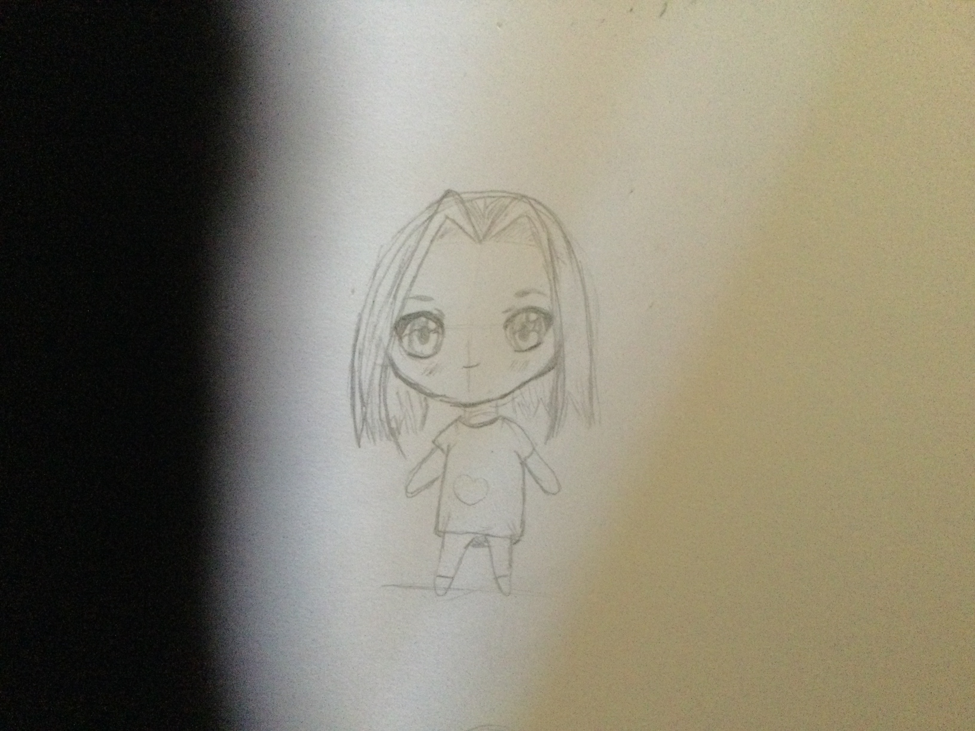 Très mignonne ta chibi! Tu as bien respecté les proportions, c'est très bien. Je dirai juste que les yeux me paraissent un poil trop écarté l'un de l'autre. N'oublie pas la petite astuce: tu dois pouvoir caser - à peu près - un troisième oeil entre les deux pour avoir le bon écart. Ici, je pense que tu peux les rapprocher, et peut-être aussi les agrandir (mais là c'est pas indispensable) :)