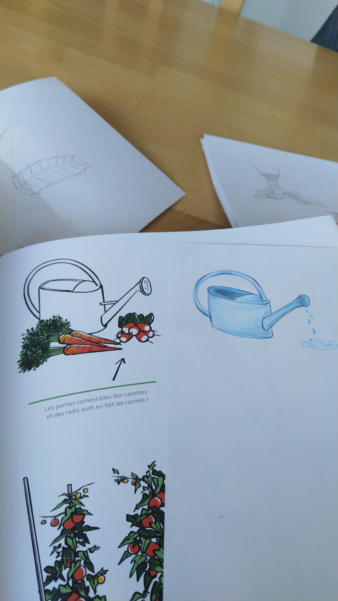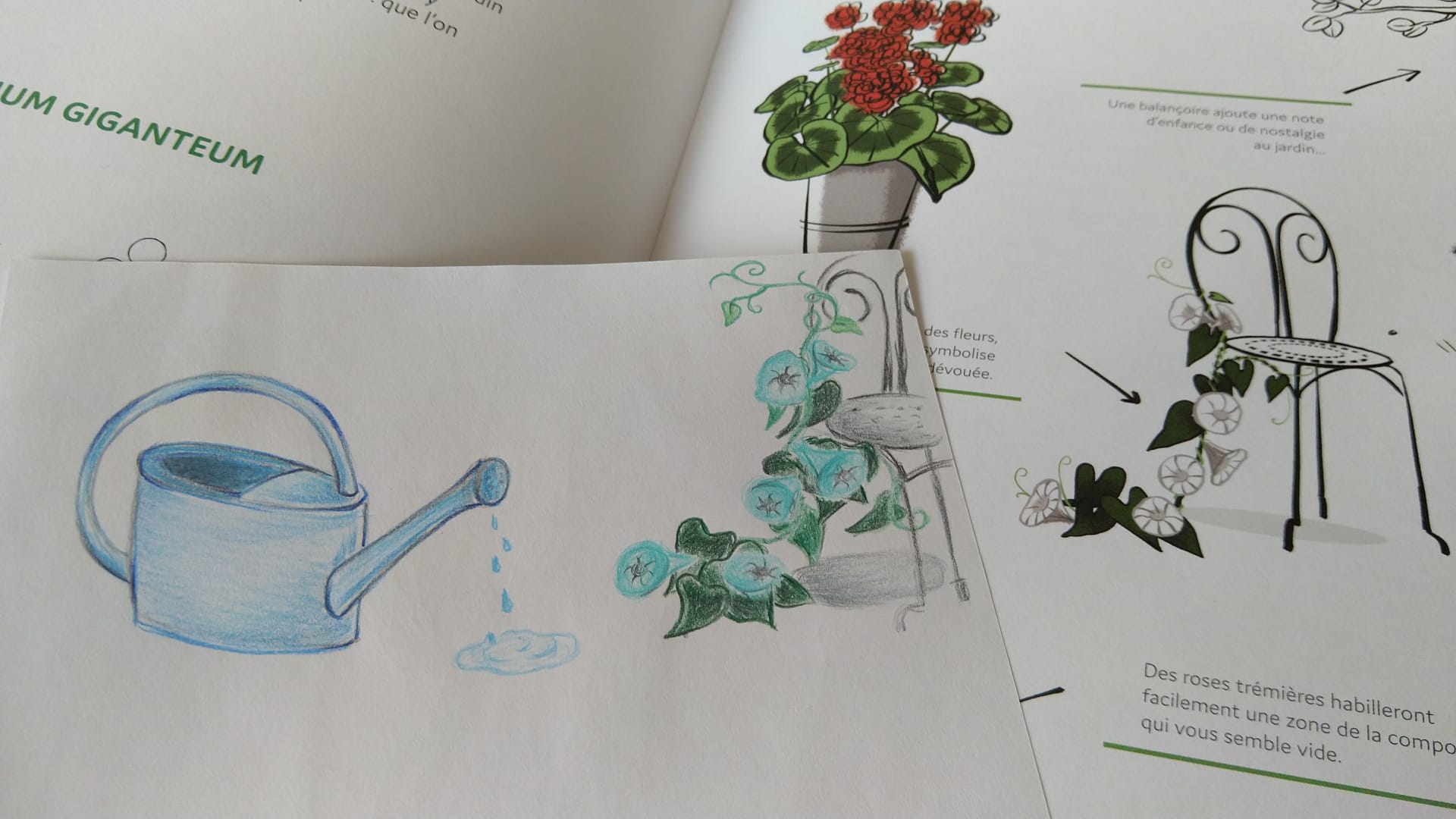 Hier, j'ai dessiné ce petit arrosoir, eh bien mon travail du parpaluie à payé, j'aurais dû prendre mon arrosoir au crayon gris, il ne ressemblait à rien, mais à rien 🙄
