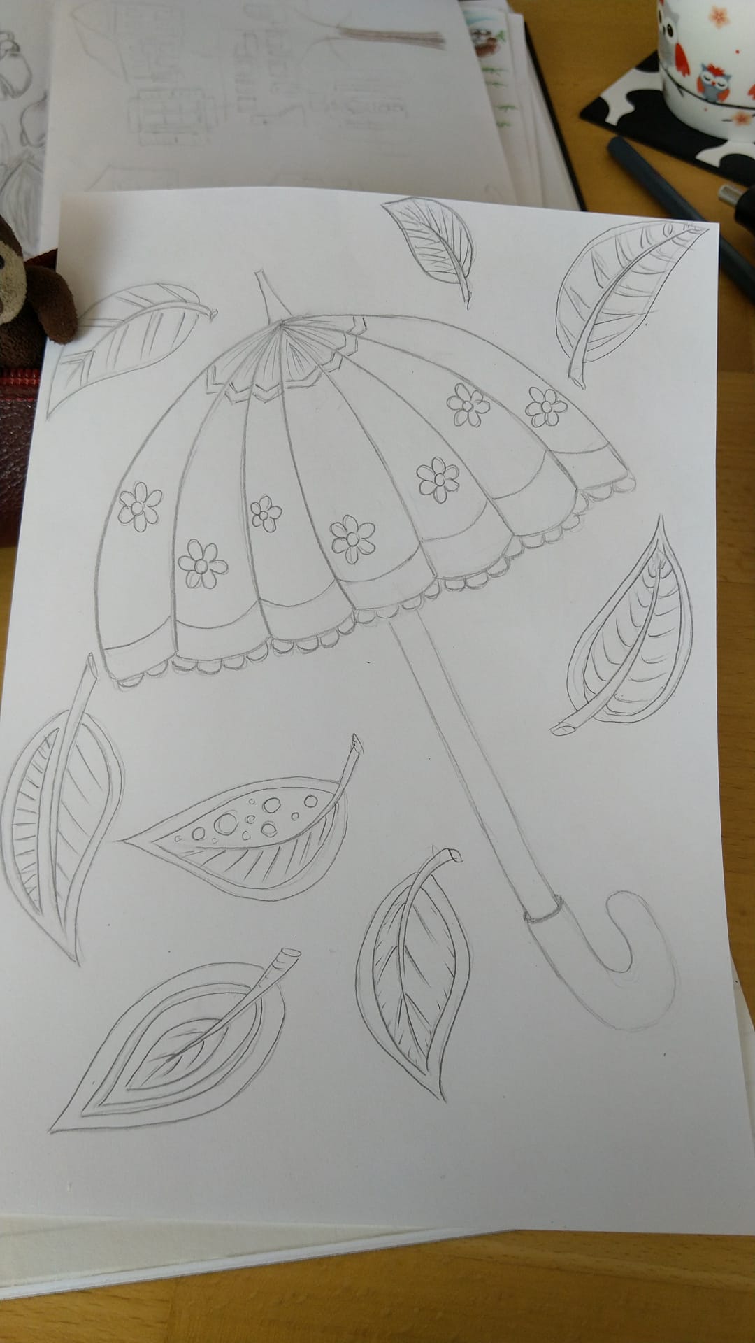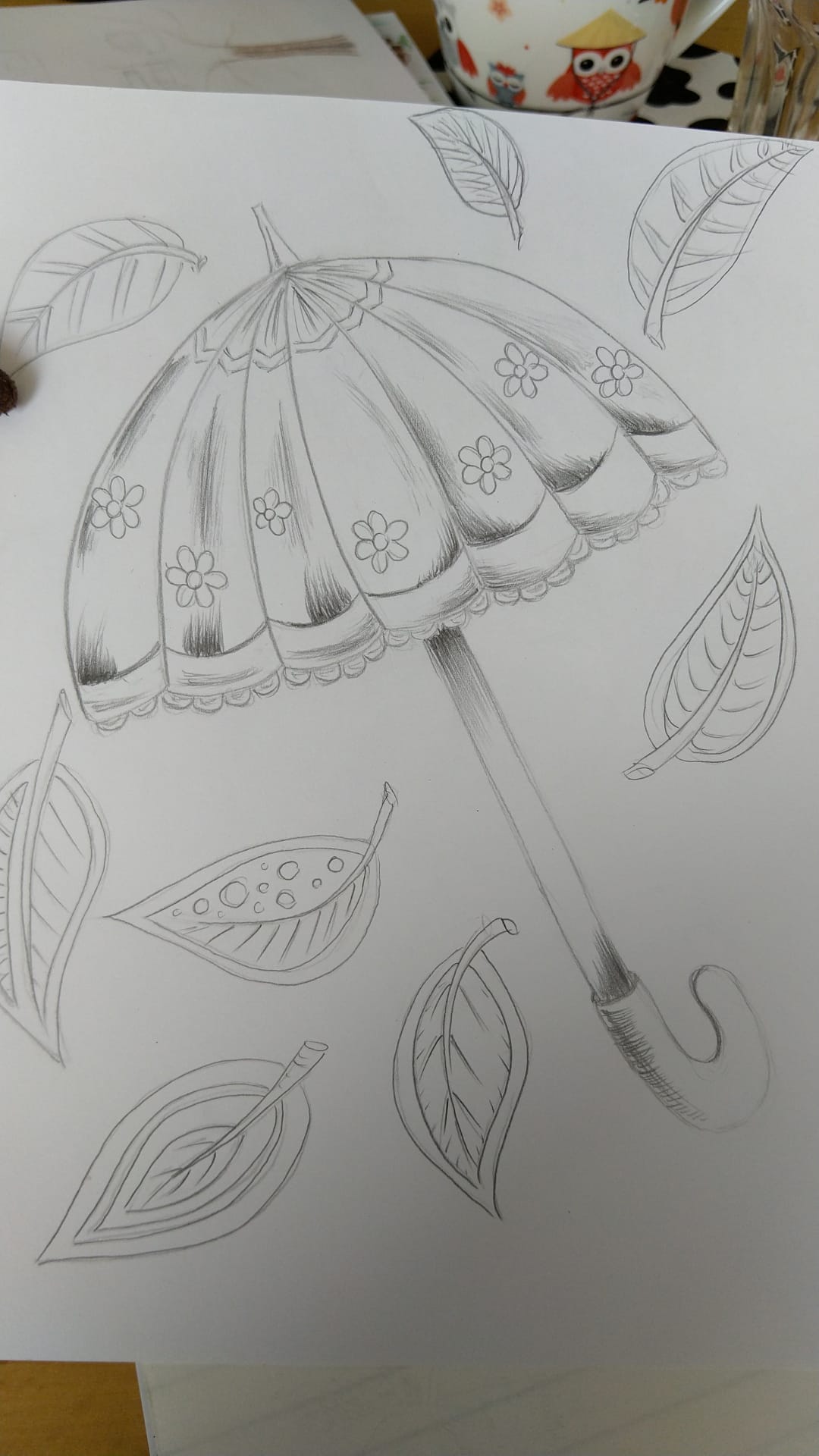 Yesterday, I drew this little watering can, well my umbrella work paid off, I should have taken my pencil watering can, it looked like nothing, absolutely nothing 🙄