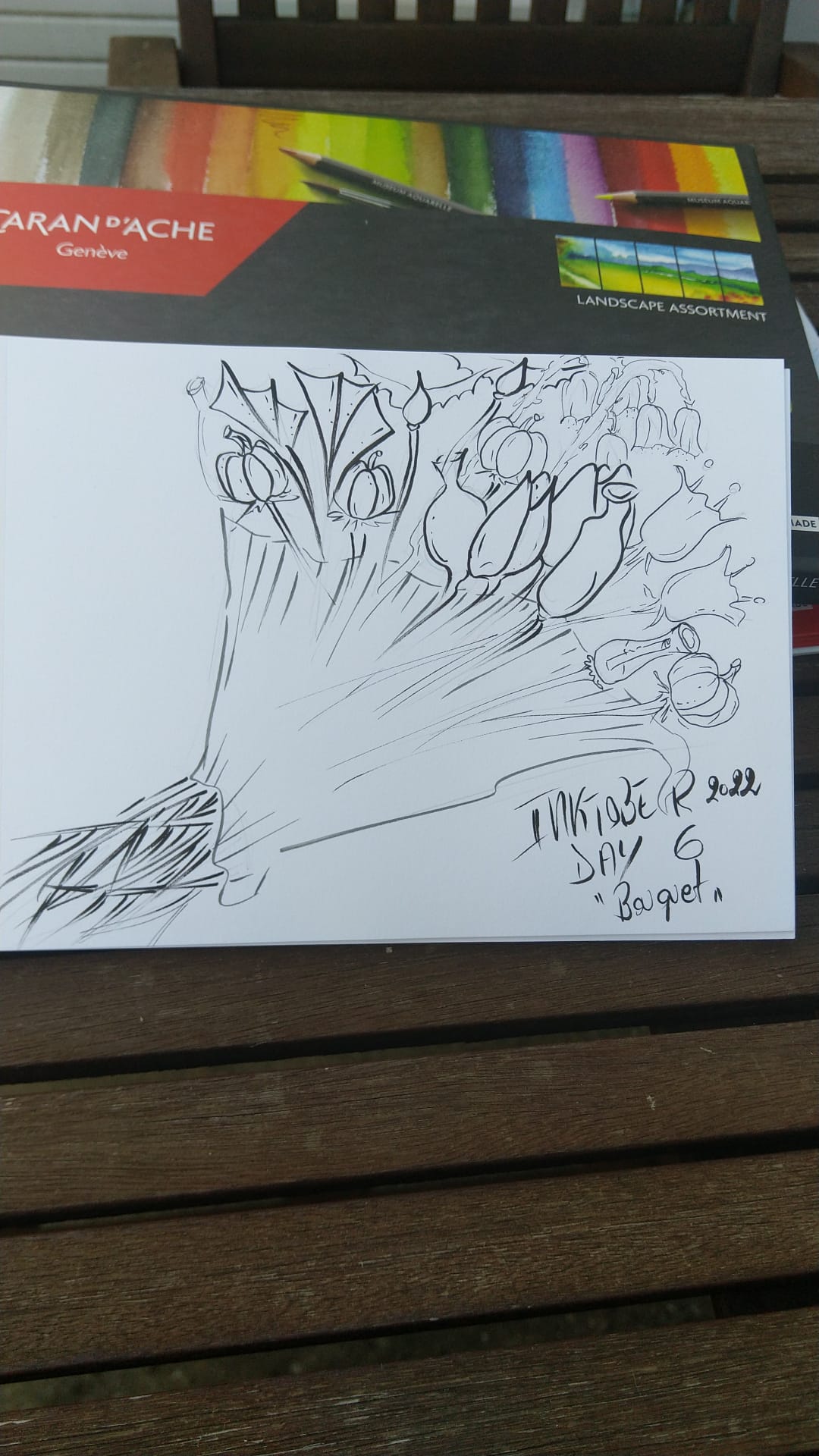 Relatively often, I think about Alice's white rabbit, always running late... THAT'S IT! Simple drawing, and for now at least, I try to do my drawings in ink, which was hardly the case last year, too focused on my uni pin, and I had emphasized creating elaborate drawings related to given themes 👌