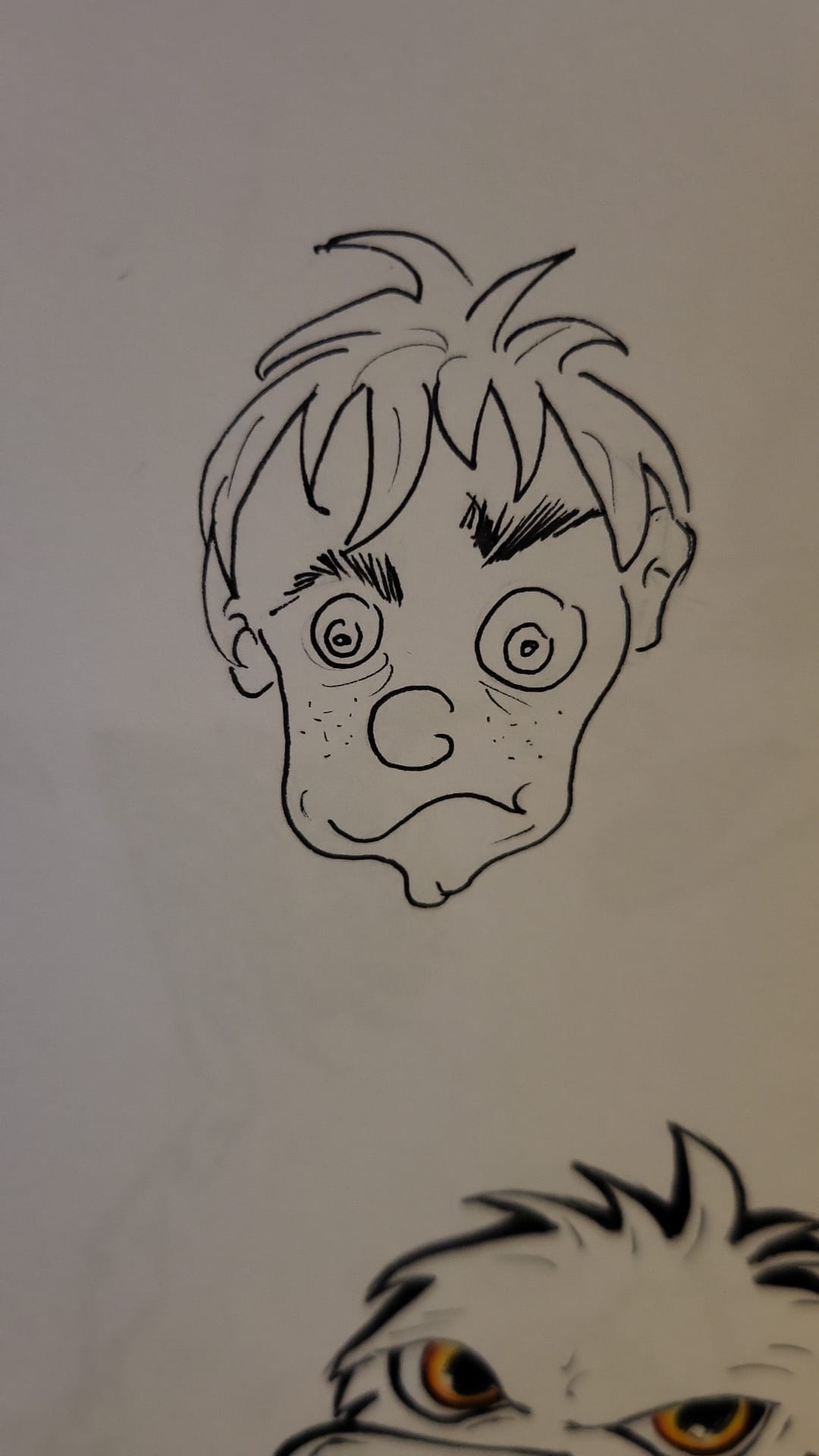 Pour la gargouille, je crois qu'il y avait une image de statue, avec un air bien grincheux, j'ai un peu inspecté la tête, puis j'ai éteins le téléphone et crayonné cette gargouille...