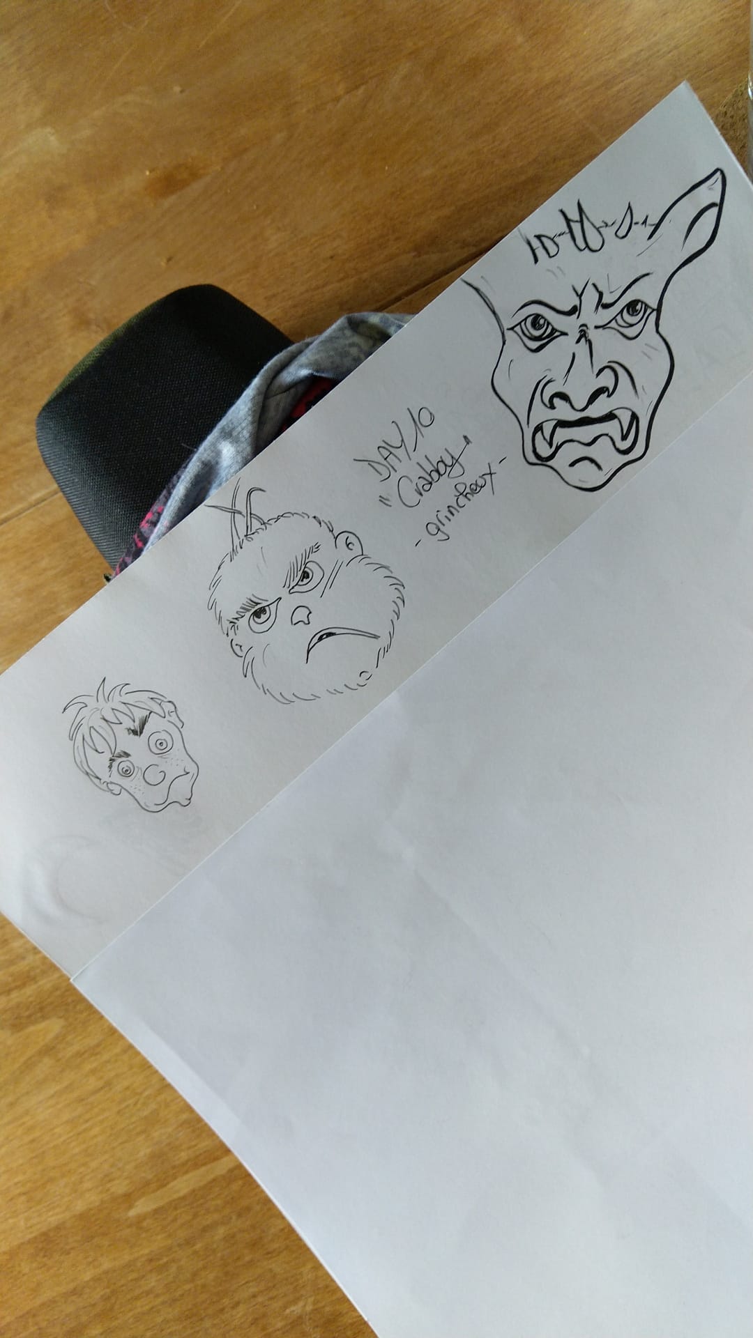 First grumpy one, I think of comic book characters, I try without a net... I look at some images on Google to see what comes up under the name Crabby; well, there are plenty of Grumpy from Snow White, but also the Grinch! I make my version, plumper ha ha