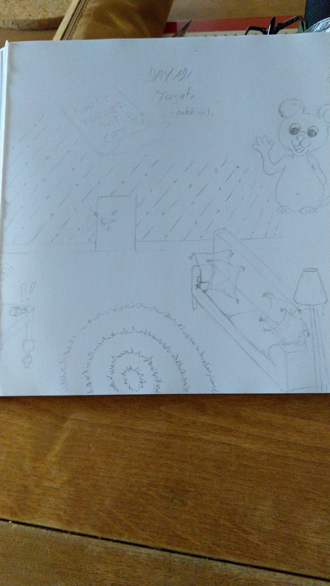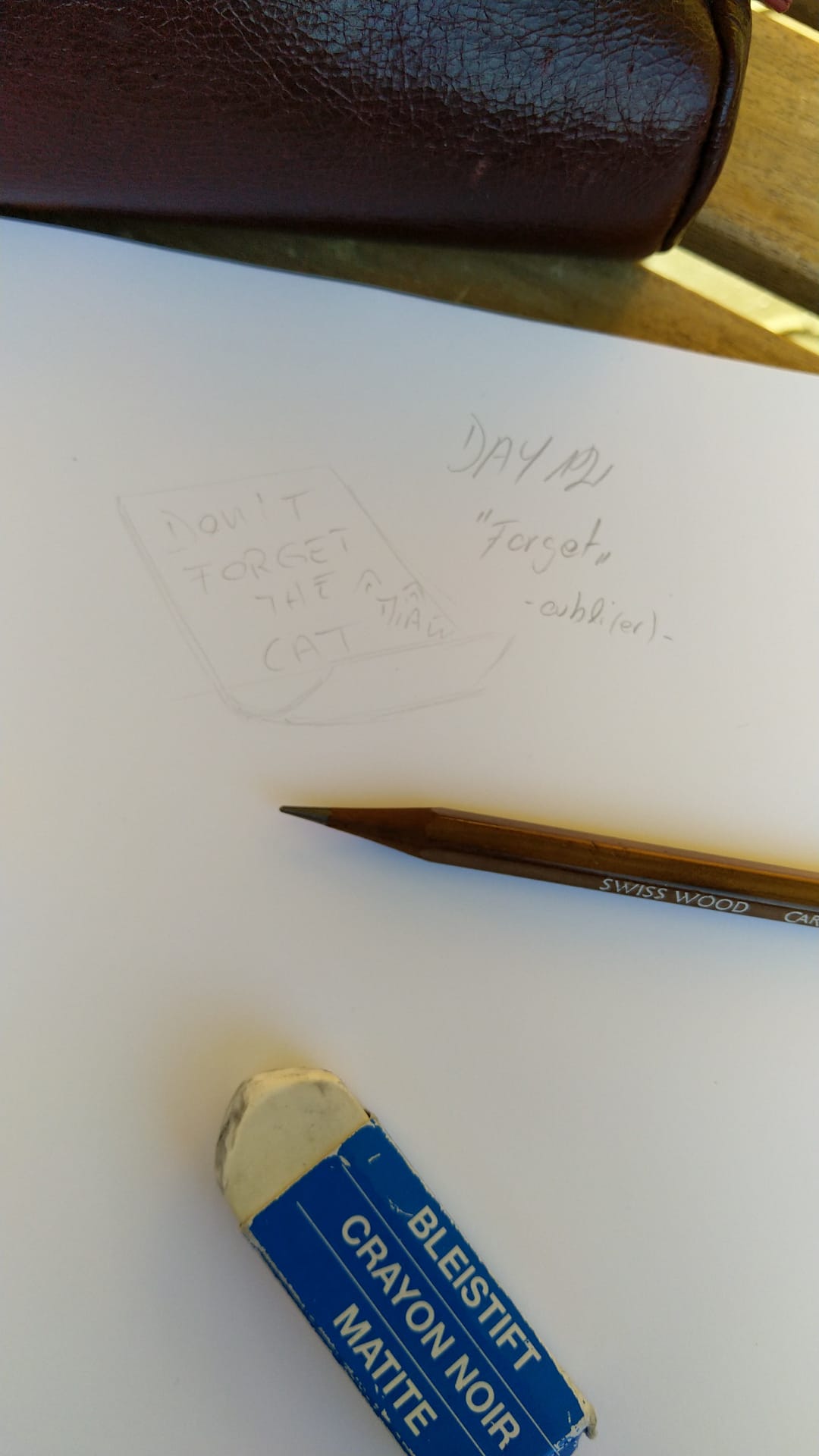 Not in the mood for drawing, I quickly doodle a note "Don't forget the cat" ha ha ha