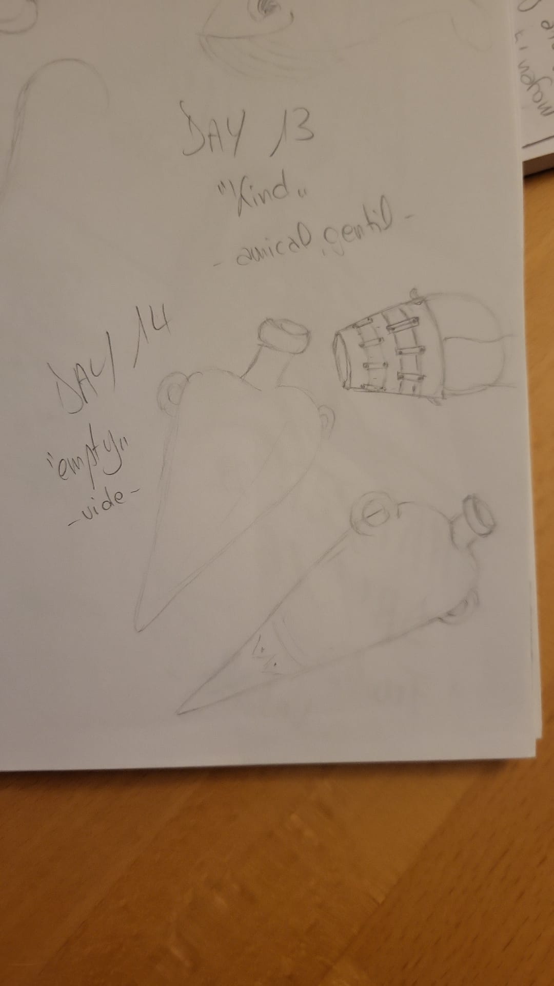 With the last 2 themes, despite the difficulty of the proposed subjects, inspiration has awakened, as evidenced by two directly colored drawings, and now, I'm searching farrrrrr for an idea other than making a hedgehog or a sponge!
