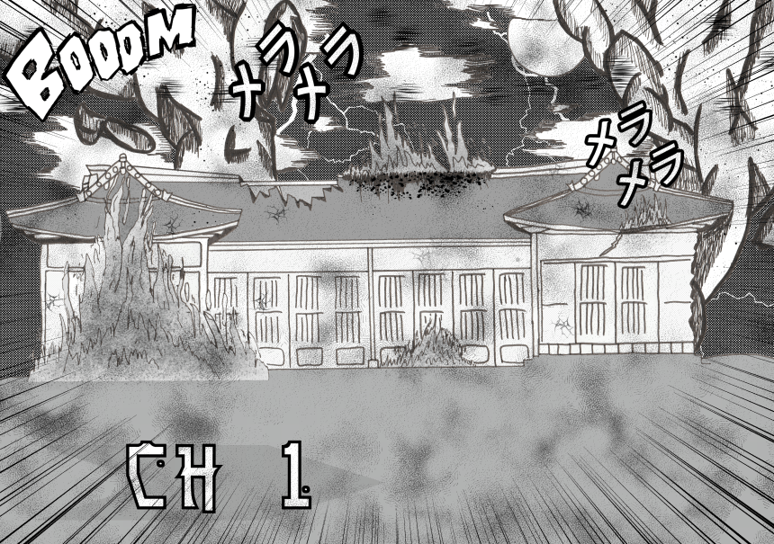 I'm not a background pro, but here I am trying to draw a ruined and burning Japanese-style house!!