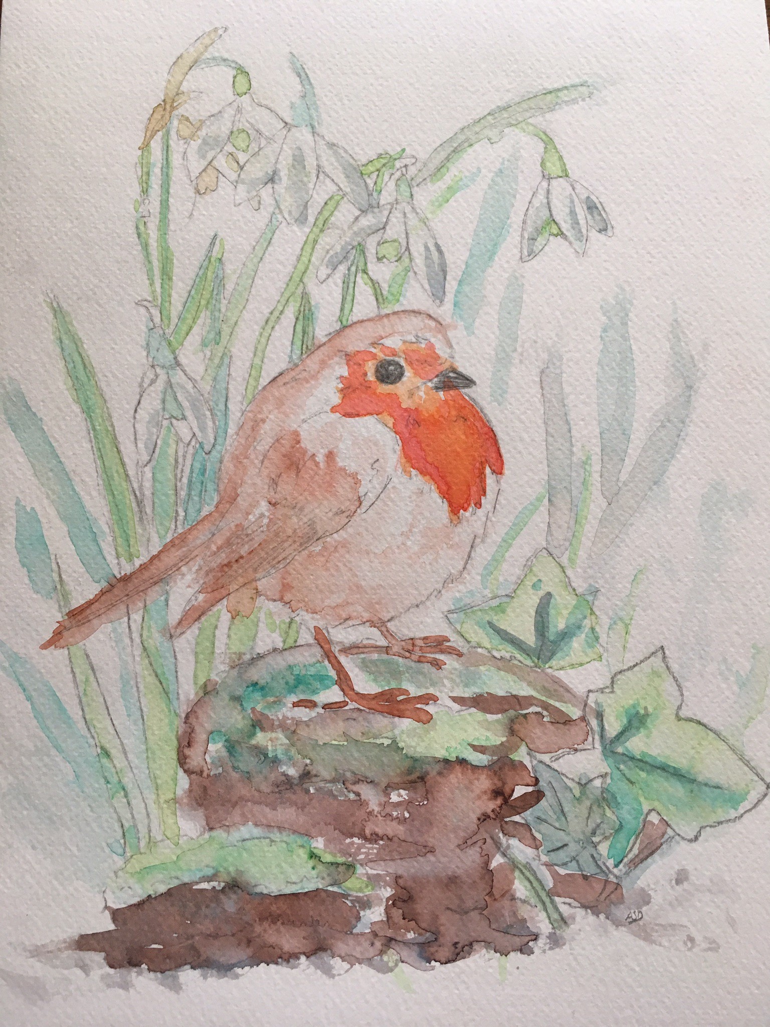 Pour le décor, on reconnait bien les fleurs, c'est un peu plus fouillis pour le caillou (?) sur lequel se tient le rouge-gorge.