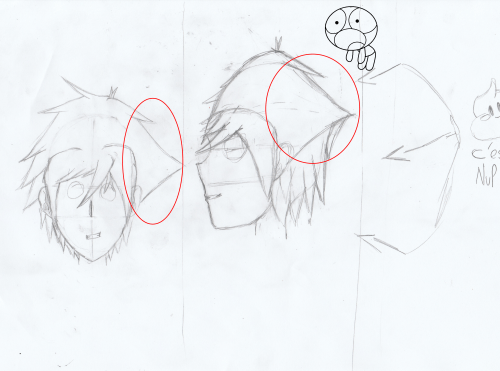 Hello, I created a character for a manga and I did their hairstyle but I don't know how to do the areas circled in red for the side view. :(