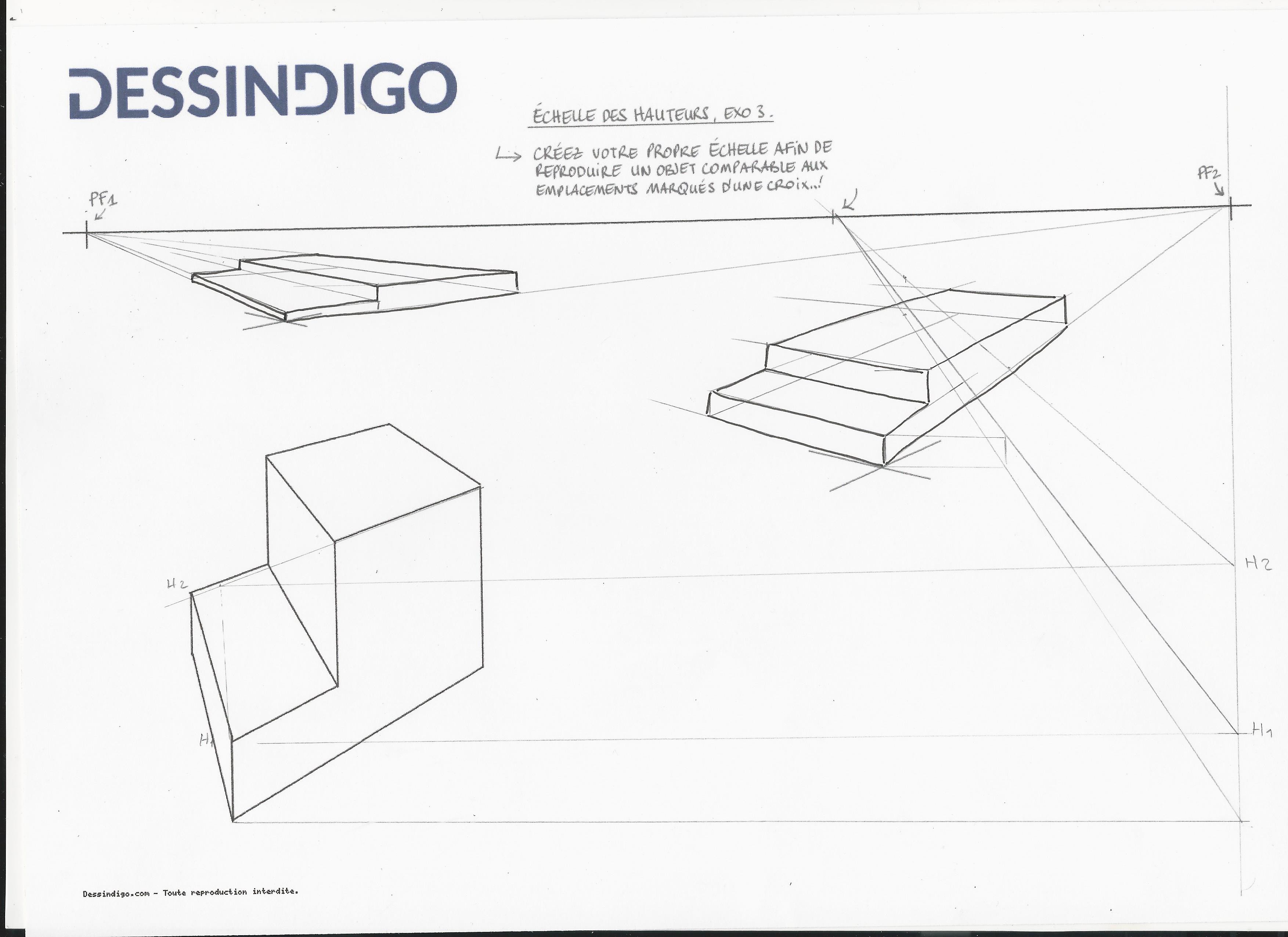 Je crois avoir compris le principe de l'échelle des hauteurs. En revanche, je ne sais jamais où arrêter ma prespective en profondeur.