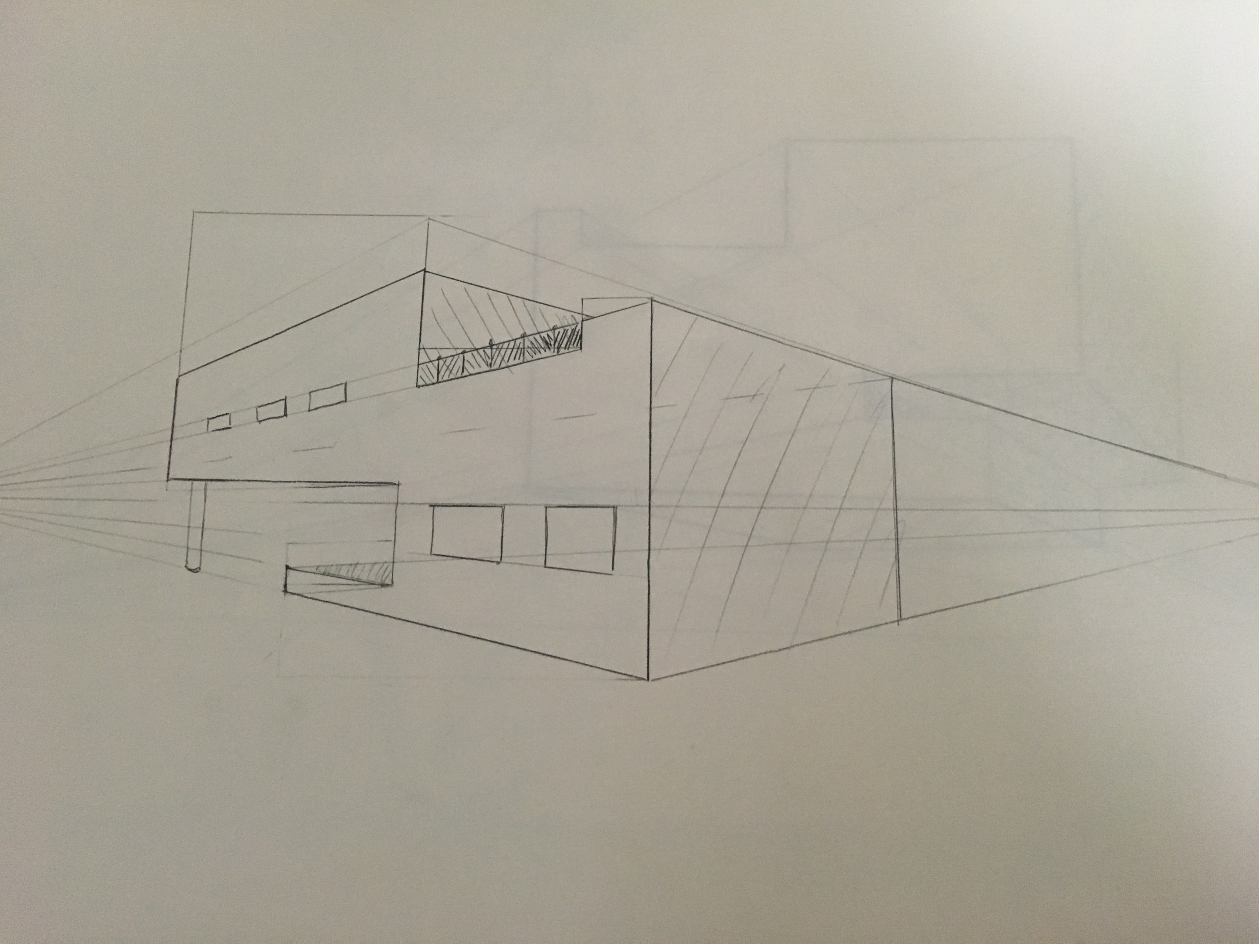 Be sure to pay attention to the rule I reminded you of (lines that are parallel in reality have only one vanishing point on my paper), and you will never have this problem again.