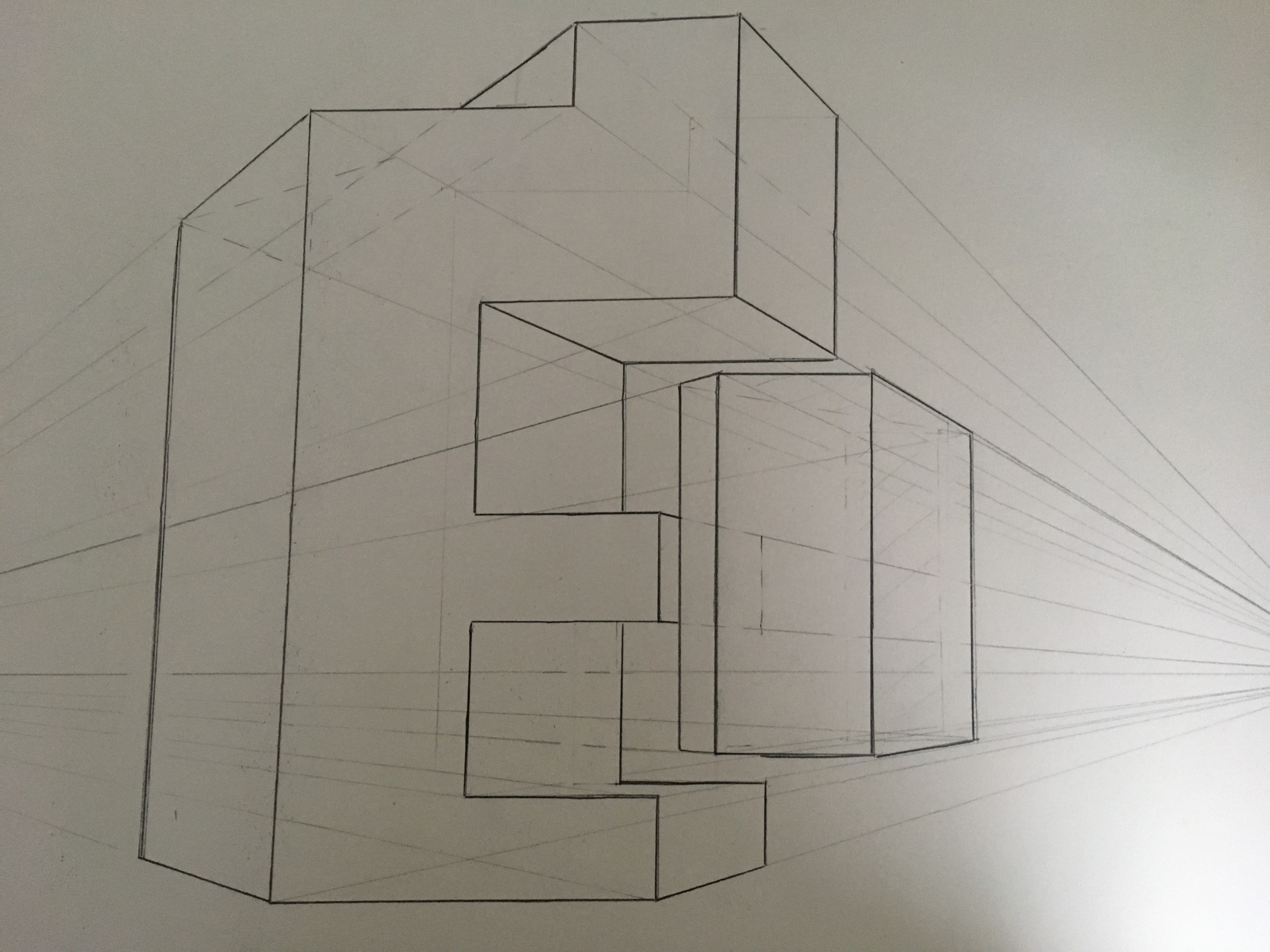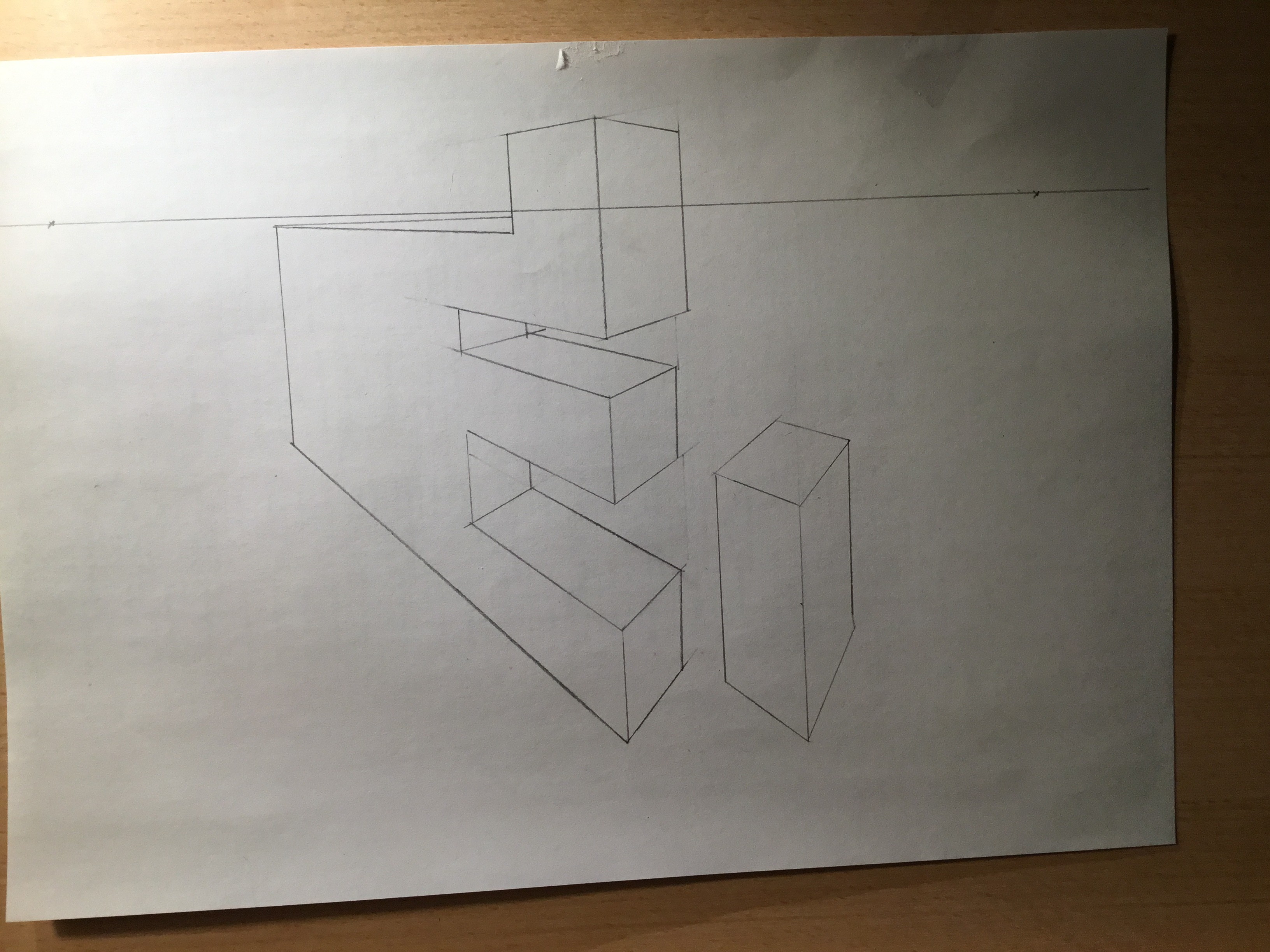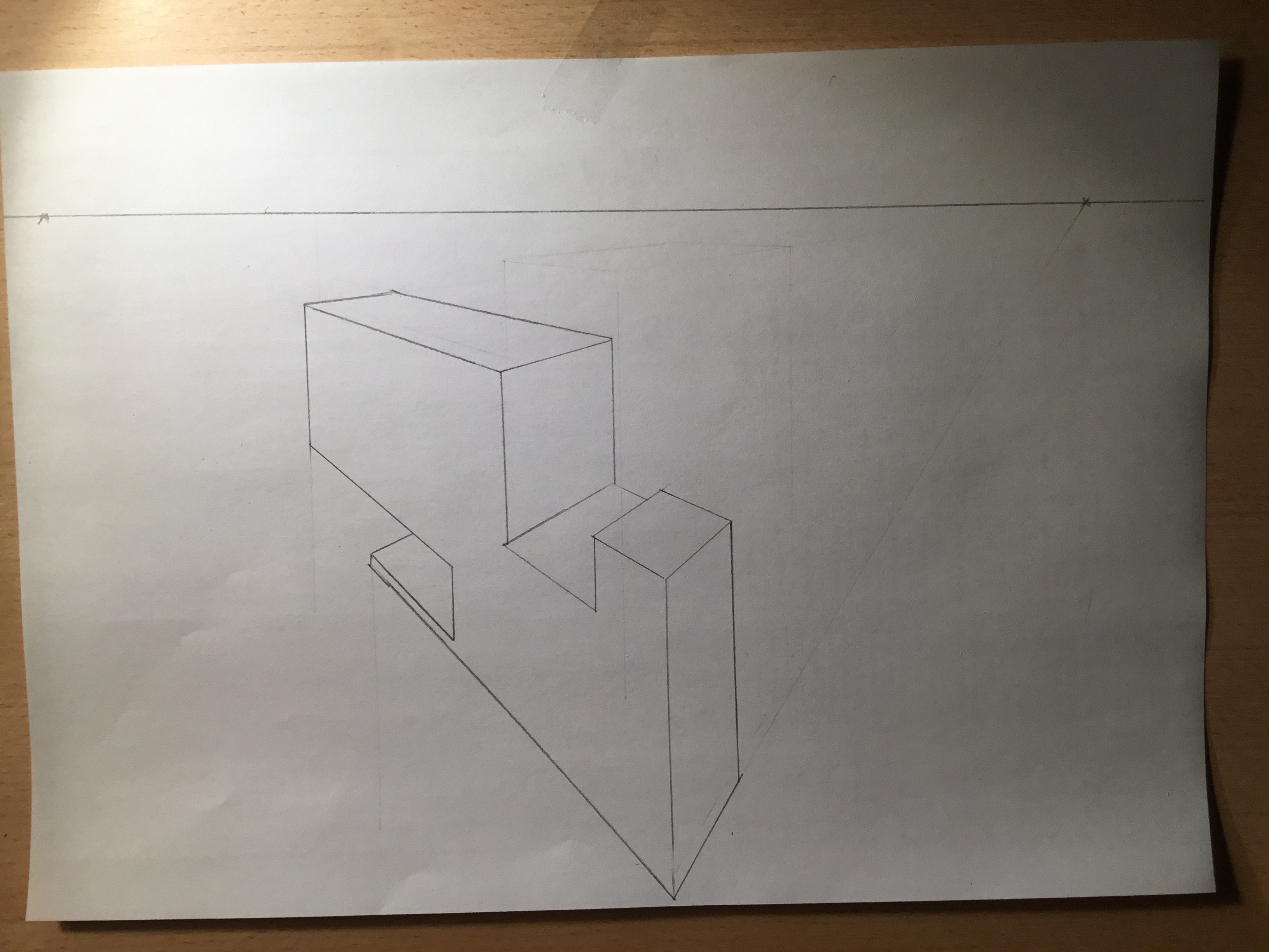 With your one-point perspective, and on this work, it's the same: you have followed that rule, and it's smooth sailing! I suppose by comparing your recent exercises, you can feel that the object is not the same on one of the three sheets. ;-)