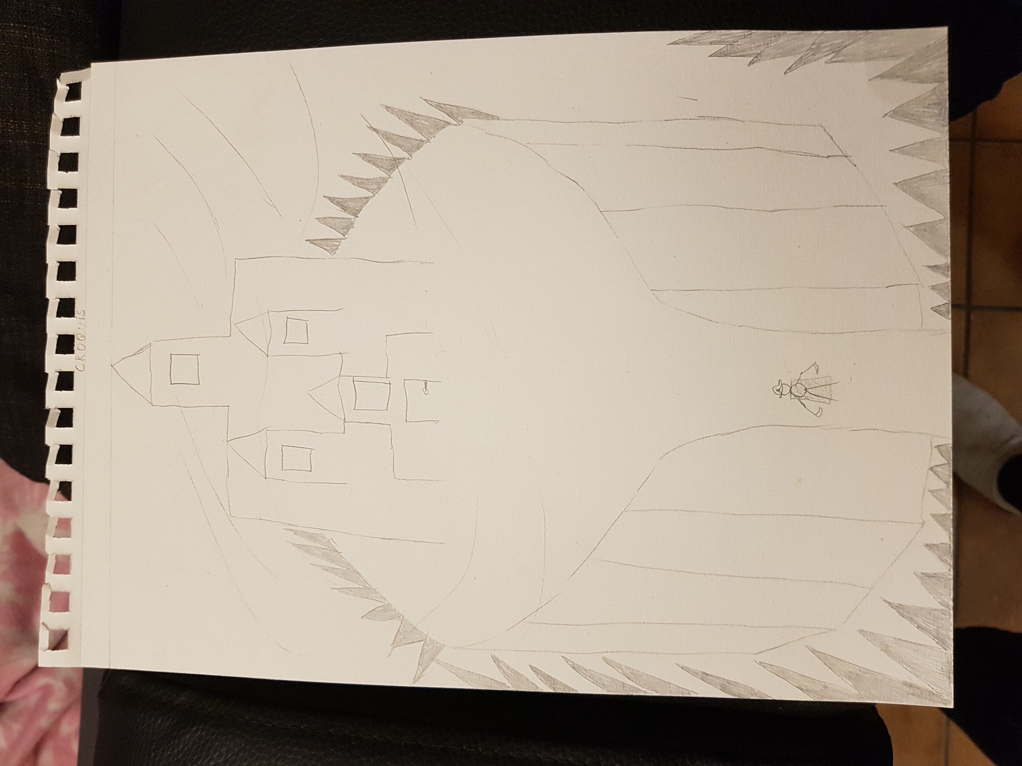 Hey Rakjah ! Merci pour ton commentaire ça m'a débloqué ! Même si je ne dessine pas hyper bien je suis chaud bouillant pour apprendre a créer mes propres illustrations ! Je suis resté sur ton idée de guerrier solitaire qui arrive devant un château en ruines en haut d'une montagne avec un ciel de tempête . Oui j'ai bien une image qui m'arrive en tête, seulement dans ma tête c'est 100000 fois plus beau que ce que je suis capable de retranscrire en dessin ^^" . Va falloir que je me documente , je suis parti dessus la c'est bon ! Je poste un croquis de ce que j'ai en tête ici . Attention c'est pas la Joconde c'est juste un croquis niveau enfant pour mieux m'aider a me lancer . Comme vous pouvez le voir je vois bien une vue de dessus selon un angle assez précis avec le guerrier devant le château ainsi qu'un pont derrière lui , et la vue de dessus rajoute de la profondeur grâce aux côtés de la montagne qu'on voit , ensuite au dessus de la ligne d'horizon (qui s'arrête au sommet du château) j'ai placé les nuages pour bien faire comprendre qu'on est en altitude . Voila voila merci a vous tous pour m'avoir aidé , je poste le résultat final quand ça sera bon ^^!