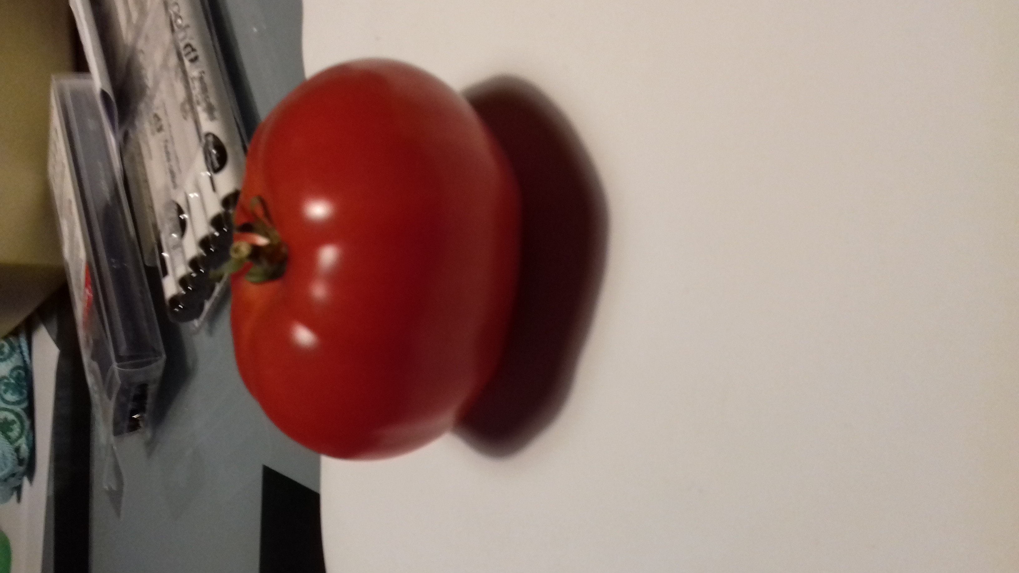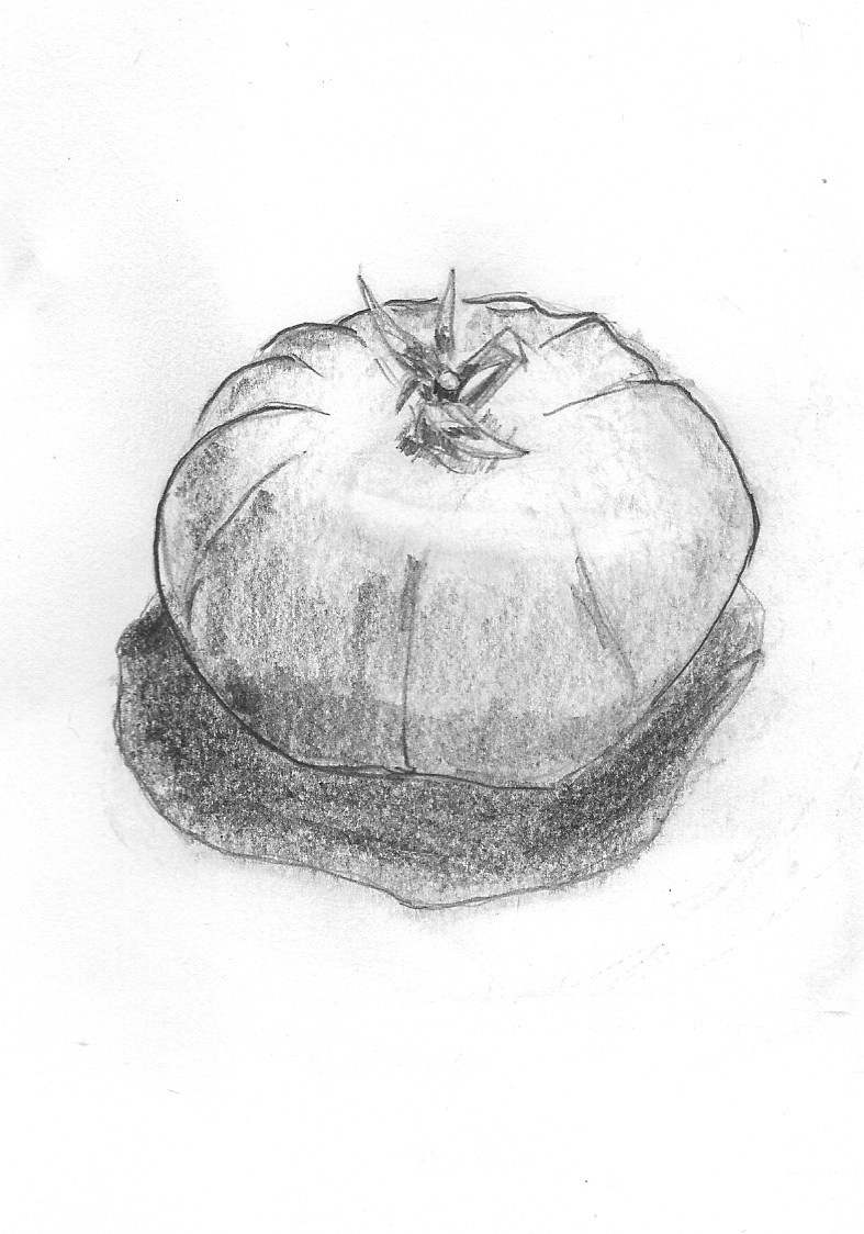Le modèle, mais je n'ai pas dessiné d'après la photo, uniquement d'après la tomate posée en face de moi. Et je ne comprends pas pourquoi la photo se publie horizontalement. Tant pis...