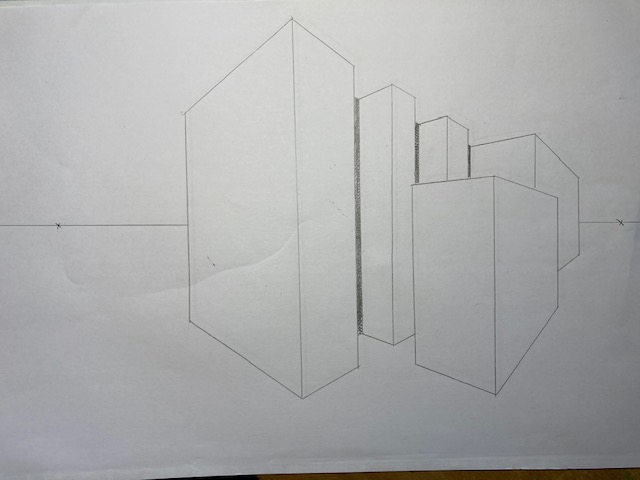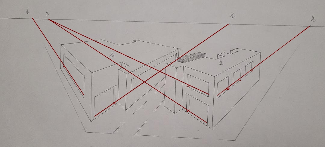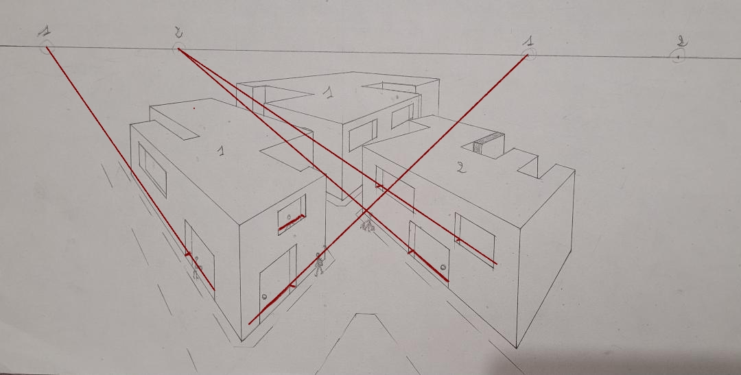 y allí también, para edificios ubicados uno al lado del otro o uno opuesto a los demás, usa los mismos puntos de vuelo. Coloque sus perspectivas por bloque de casas y edificios, mejorará mucho. Y para responder lo que dijiste, ¡no creo que la perspectiva sea la cosa de muchas personas básicas! 😅 Pero al trabajar y trabajar, ¡aprendemos a apreciar esta disciplina!
