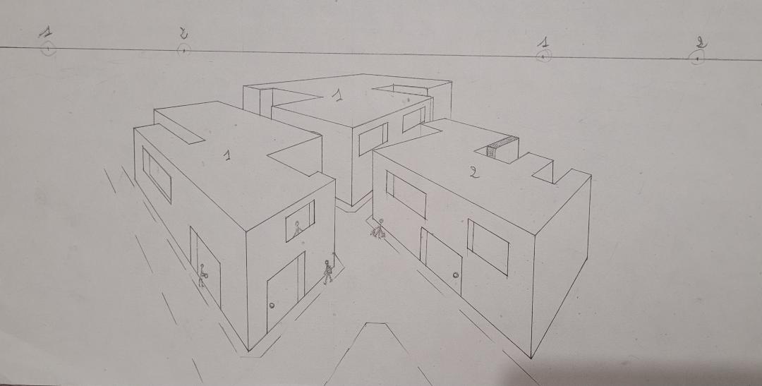 Hola, no hice las tres figuras juntas. Así que ese es el primer edificio incluso formado con dos ángulos de visión