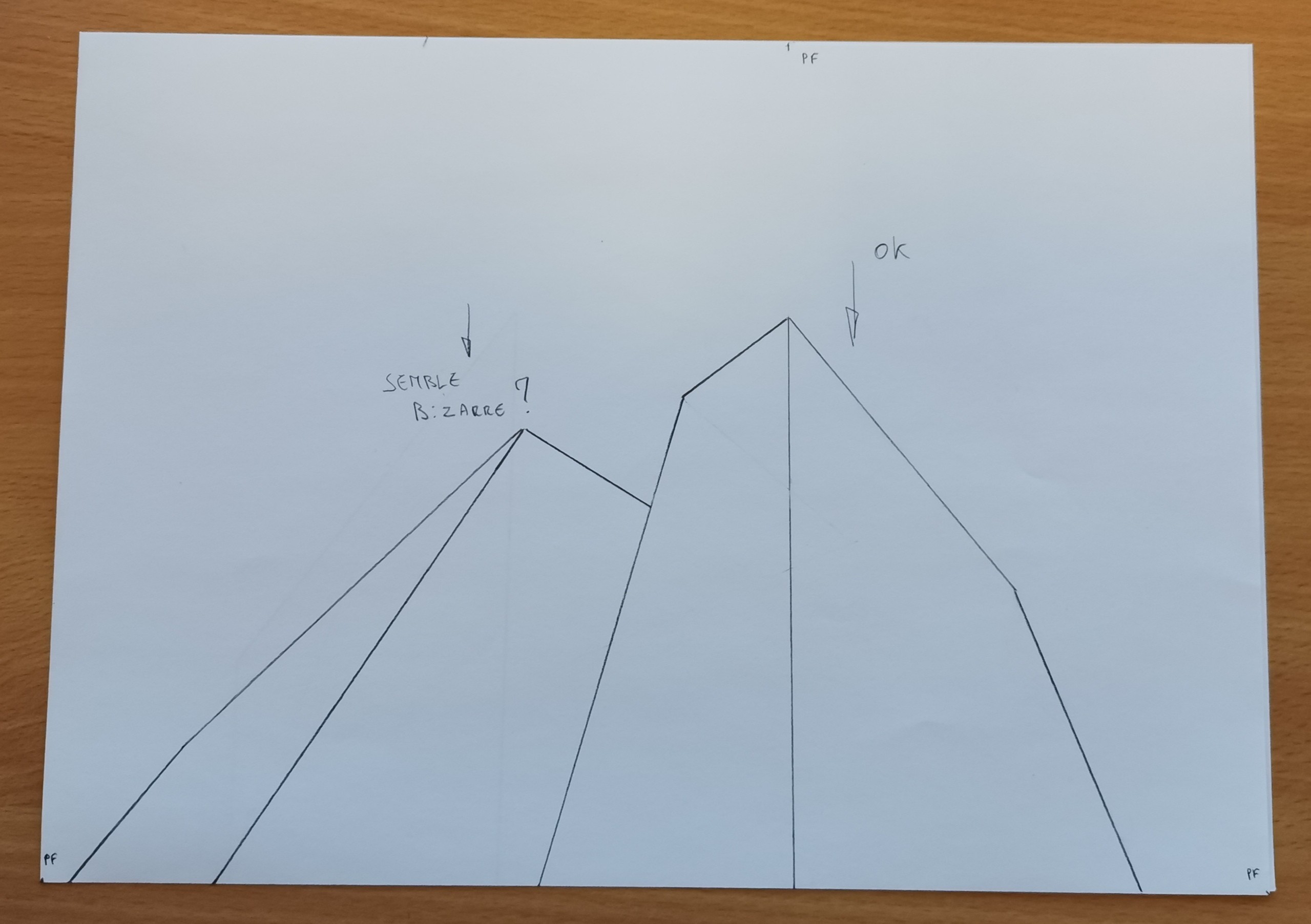 Sur ta première image, tu as ramené "l'excroissance" au dessus de la forme en "E" un peu loin je pense, en terme de proportions par rapport à la forme donnée dans l'exercice.