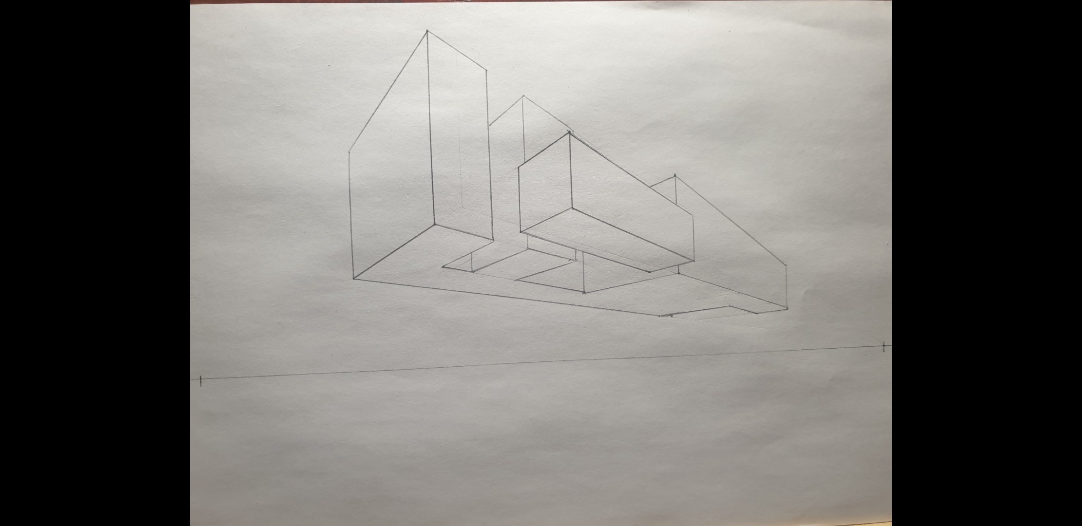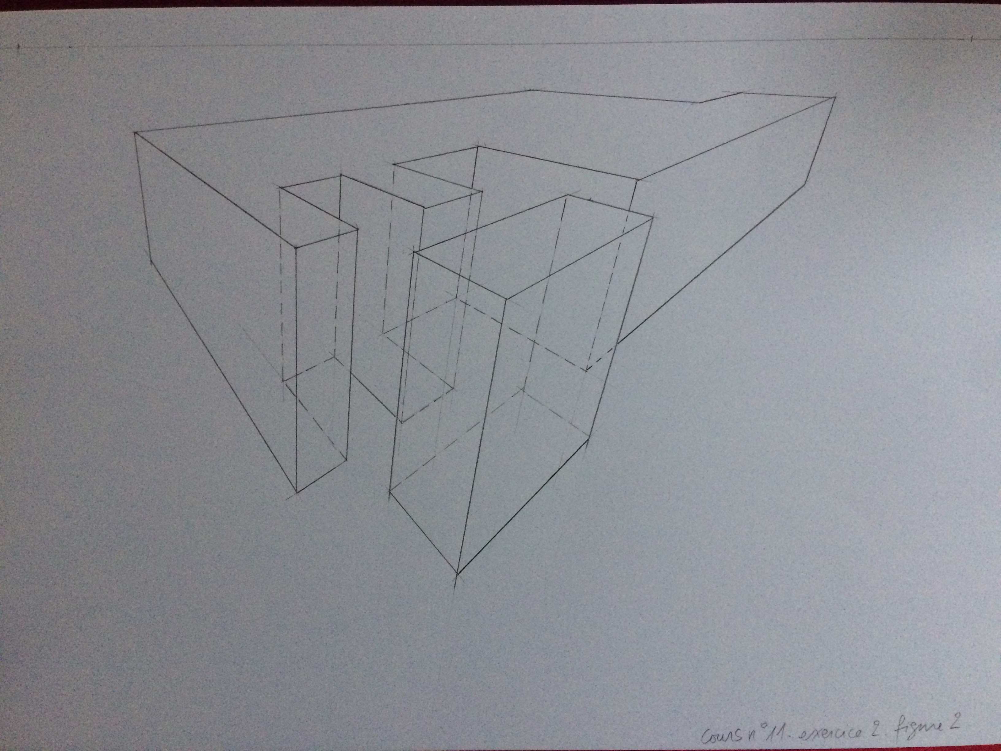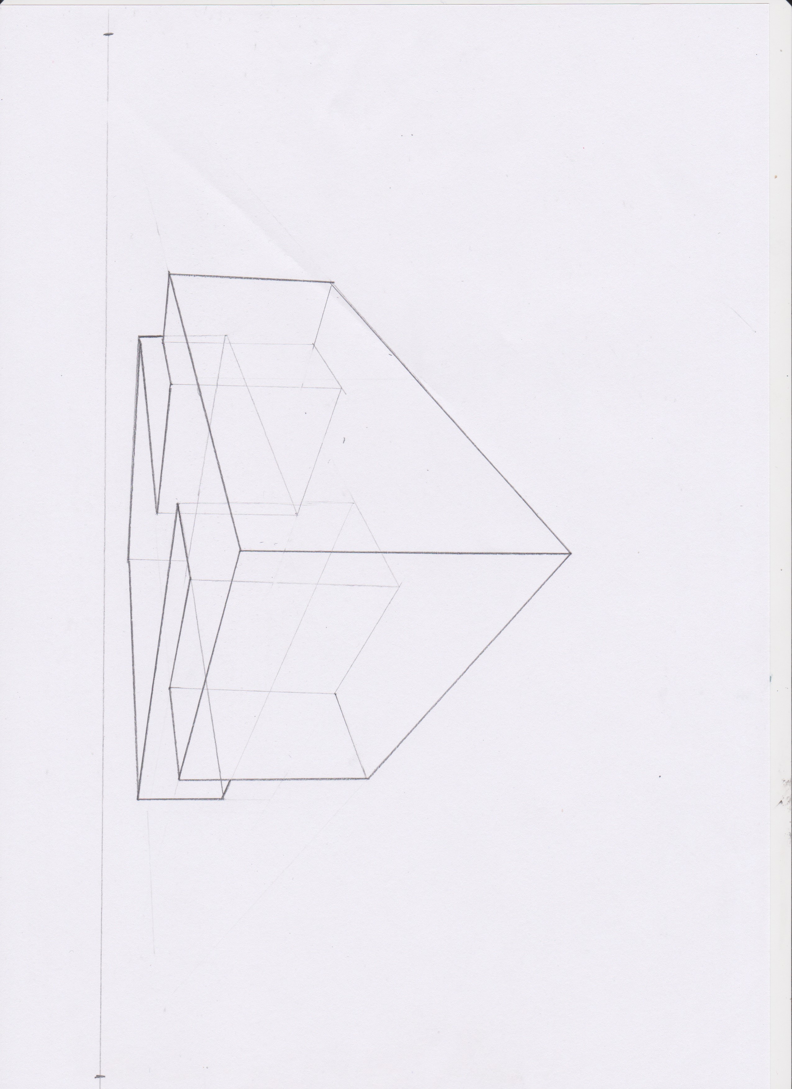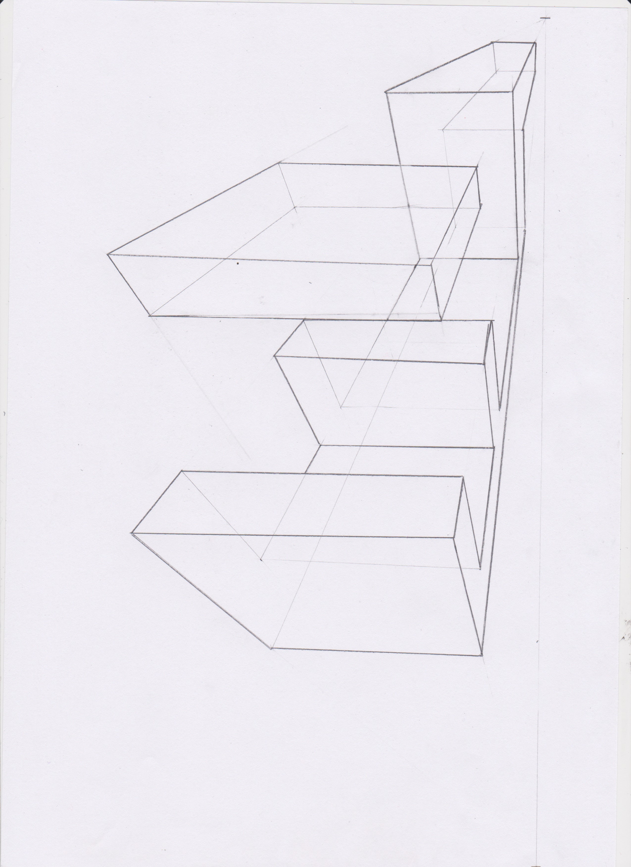 Pour la forme de droite, le point de fuite de droite sort de la feuille pour eviter trop de déformations.