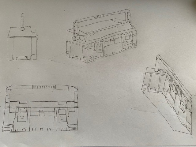C'est pas mal! Je vois cependant un souci de perspective... logiquement les deux obliques qui sont les deux extrémités de la boîte à outils doivent être parallèles, et ici ce n'est pas le cas 😞 Mais mise à part cela tu as bien compris comment la boîte était construite et les détails sont bien réalisés!
