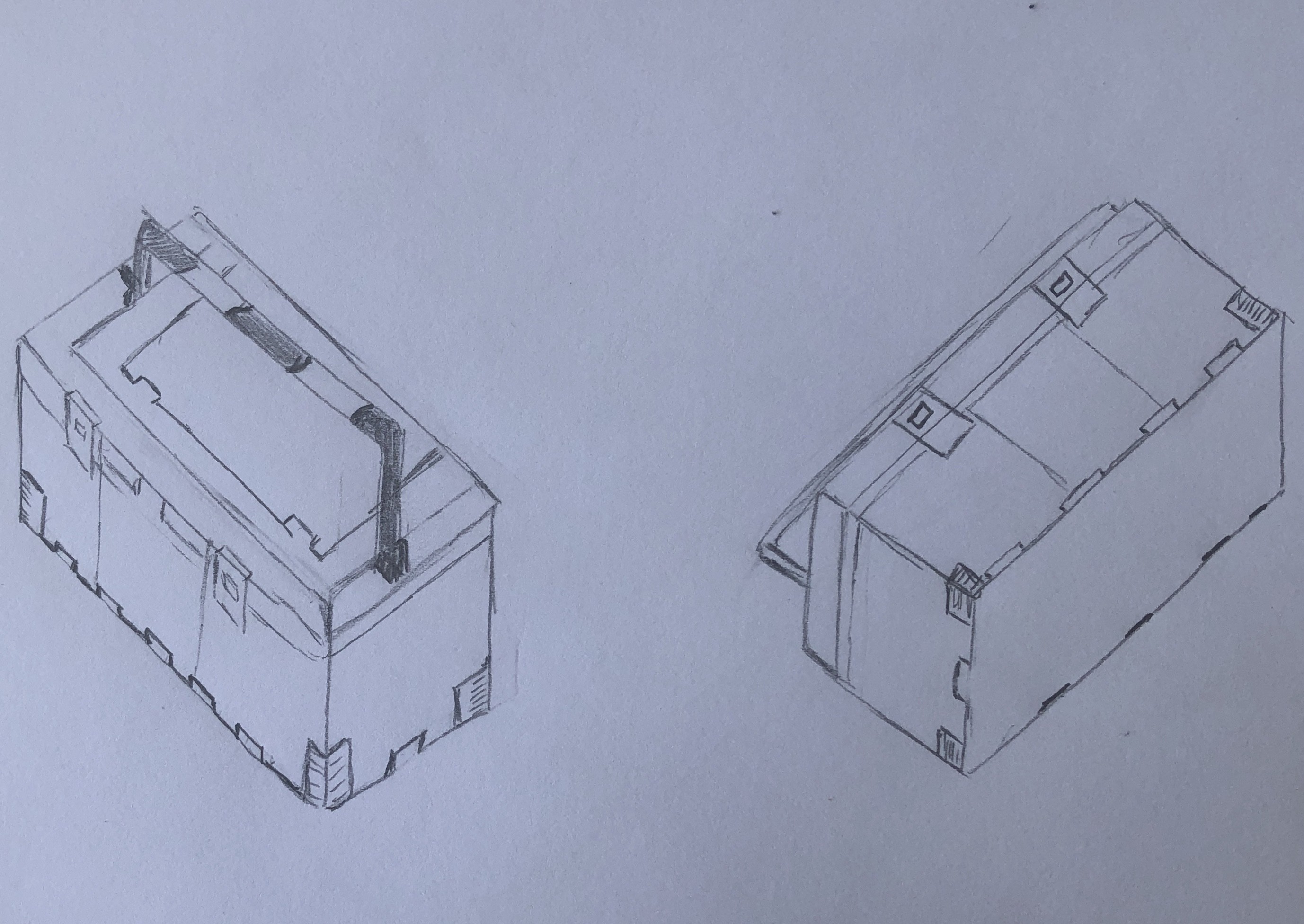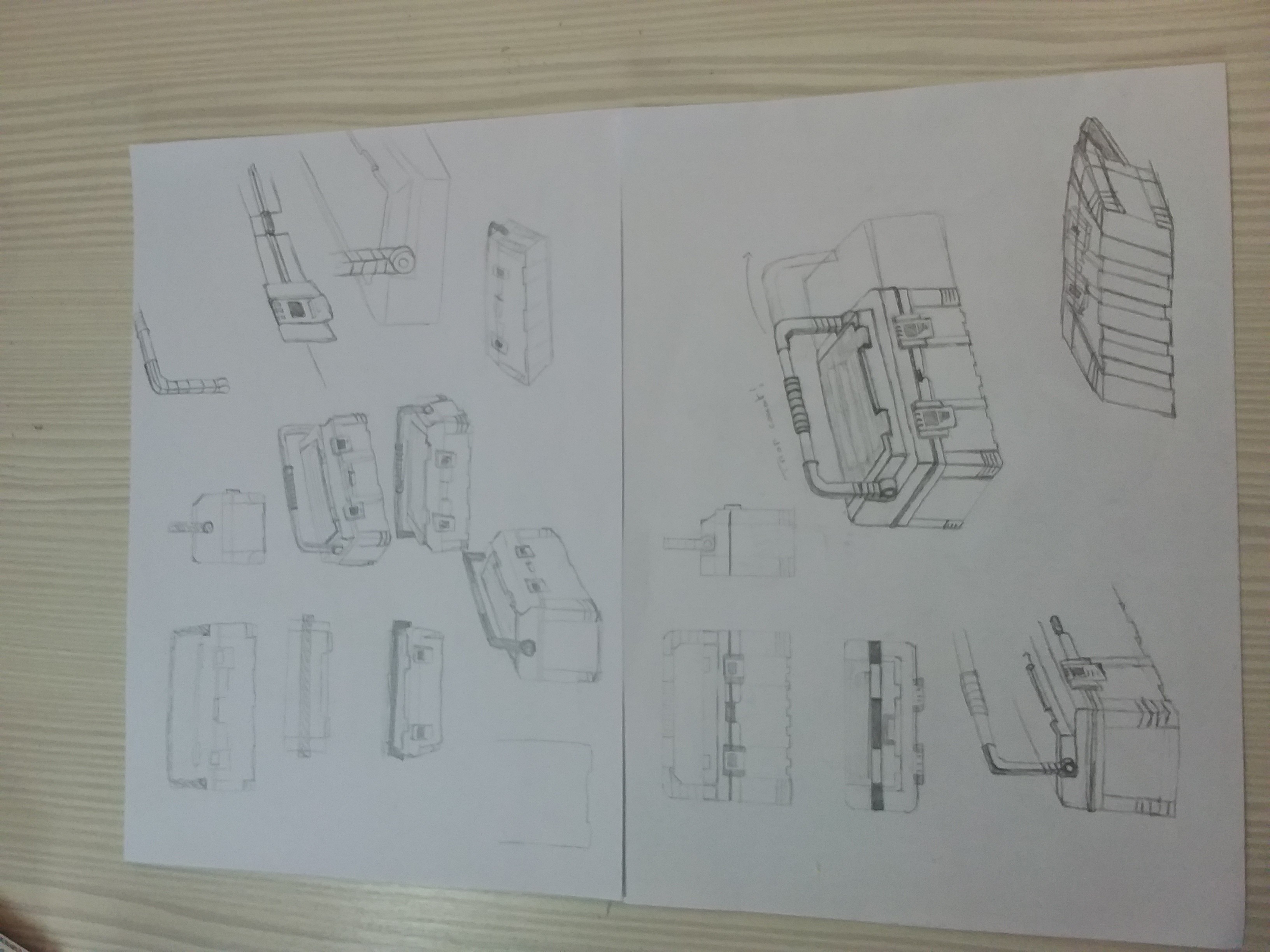 Waaaouh ! J en peux plus! Cette caisse à outs à fini par m énerver.. . 2 planches de croquis et impossible d avoir un résultat satisfaisant 😞😞. J abandonne pour l instant , je vais passer à la caméra et je retravaillerai cette satané caisse plus tard.