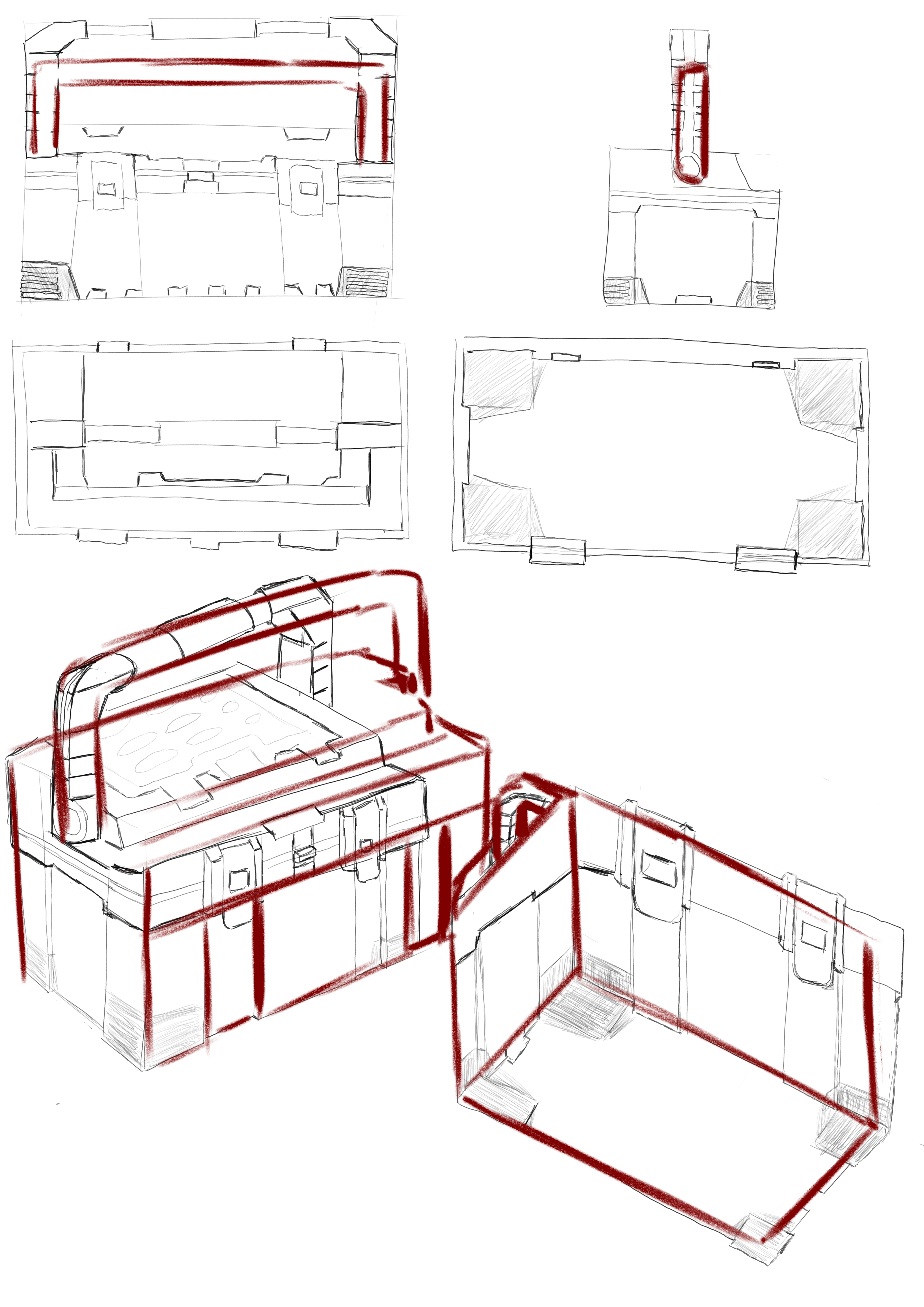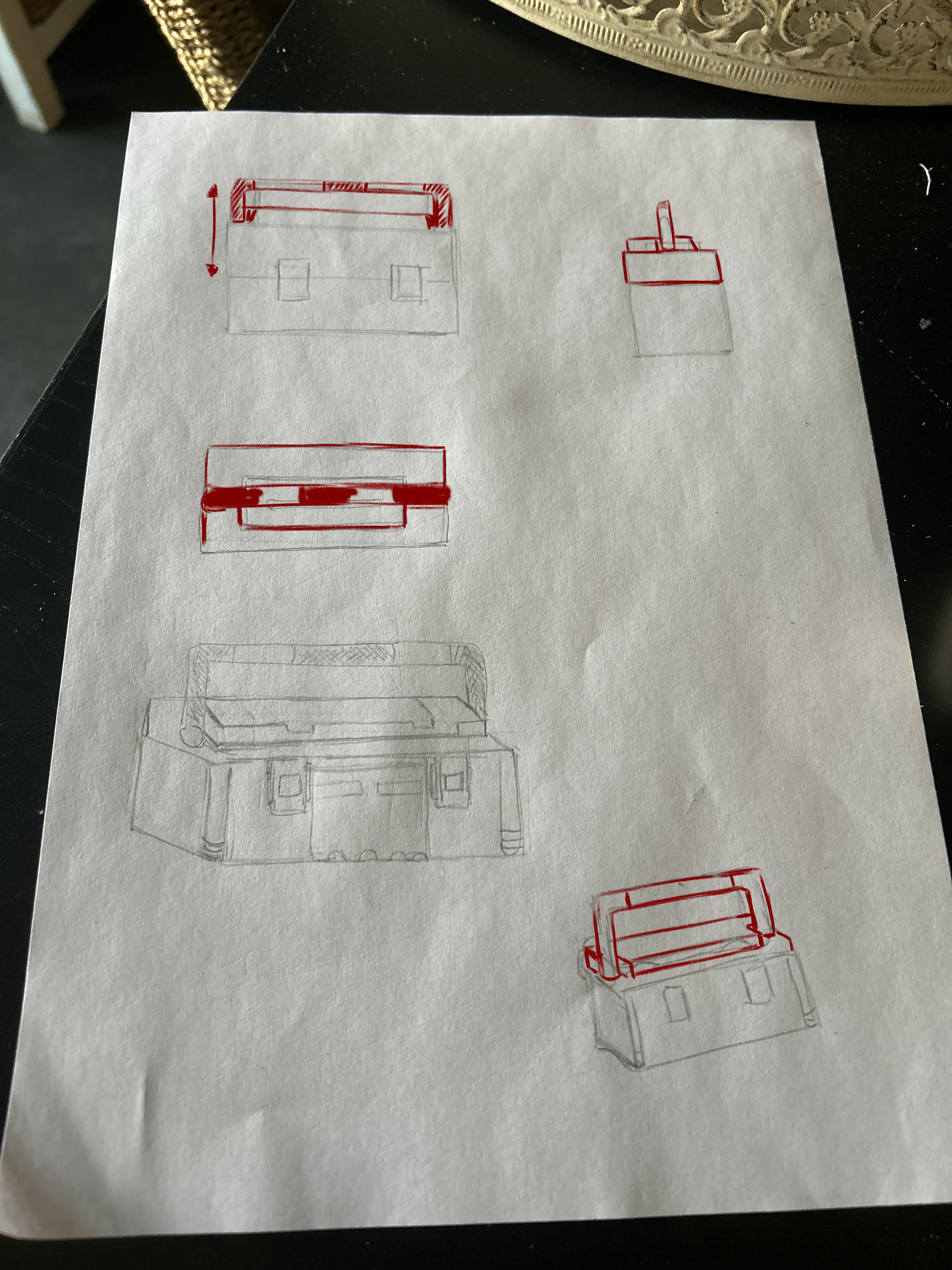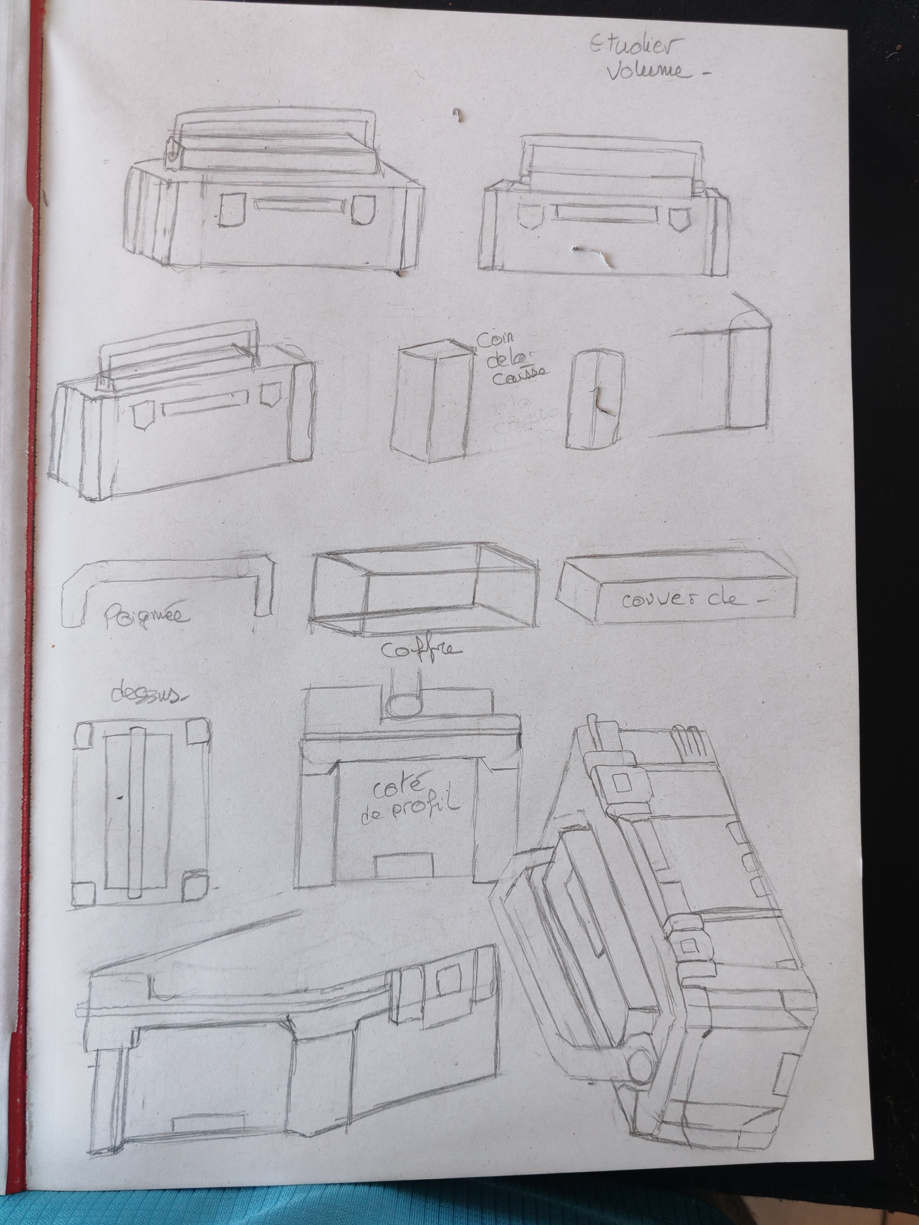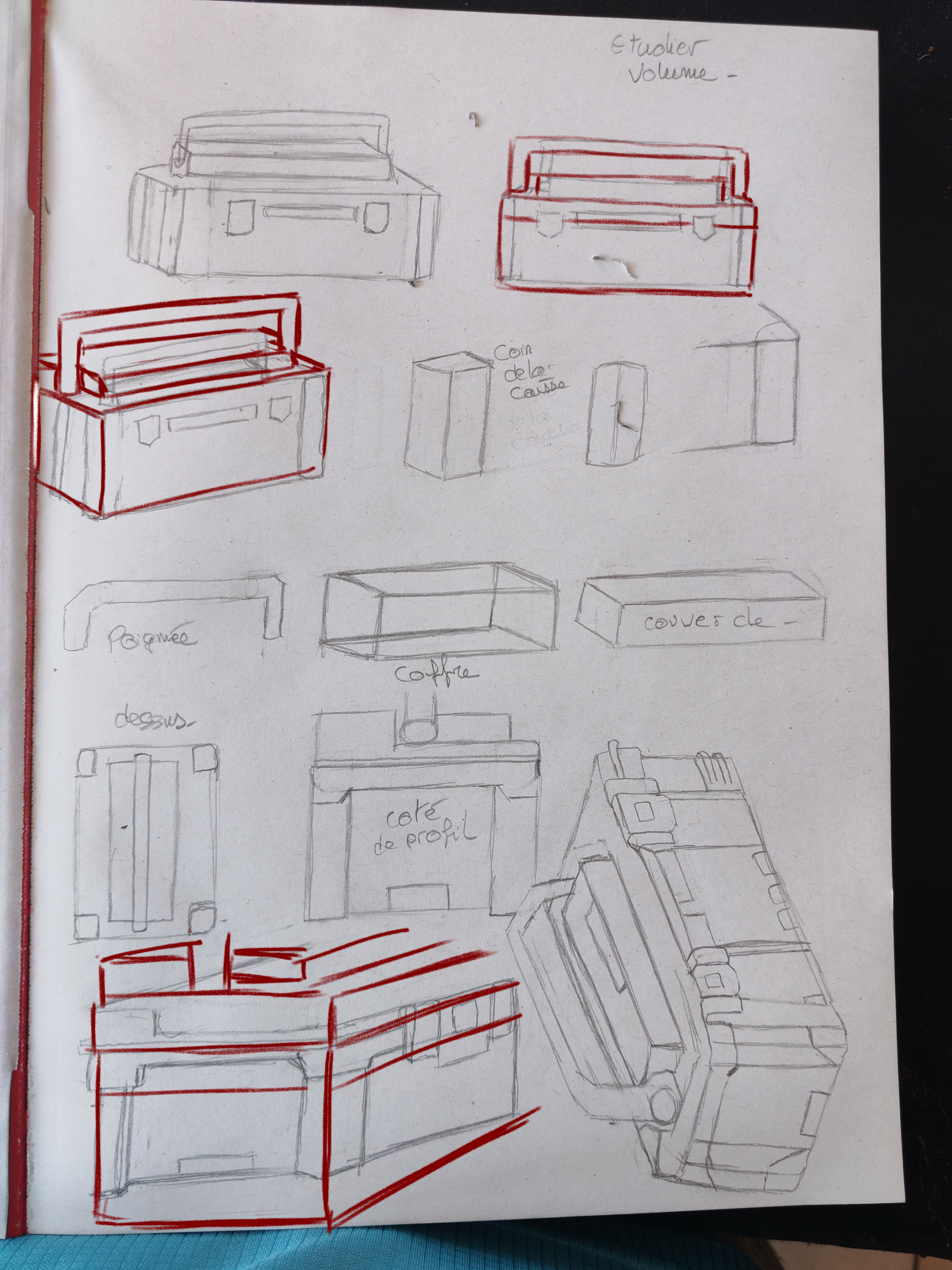 Bonjour Kellyvaes, vraiment pas mal tout ça! Attention à la poignée, sur la vue de face elle devrait être dans la prolongation des côtés ded la boîte, sur la vue de côté elle semble un peu trop petite, et sur la vue de dessus elle n'apparaît pas. Pour le reste, c'est du bon boulot!