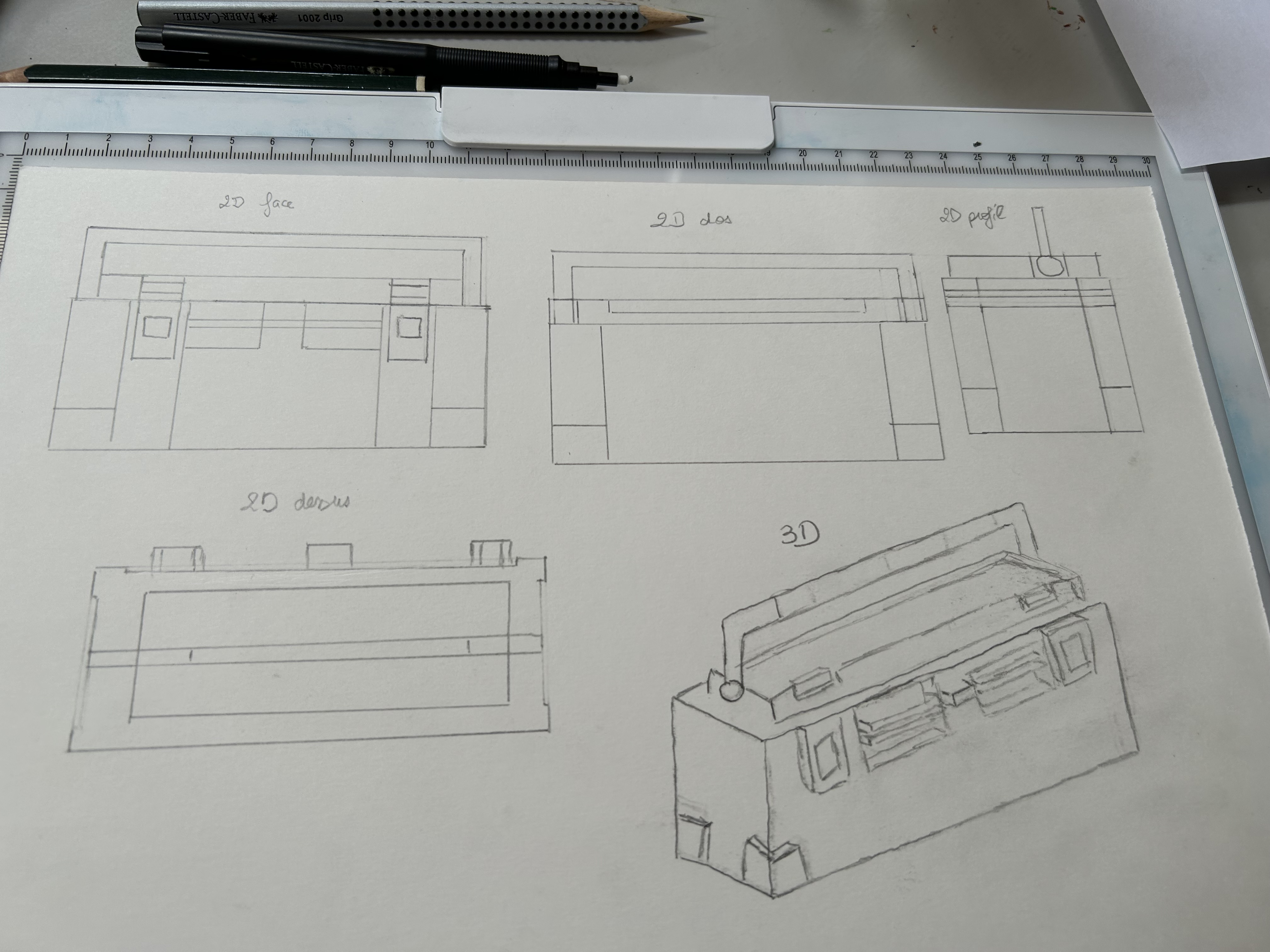 Ton dessin est vraiment bien exécuté, tu as ajouté beaucoup de détails de manière très précise, bravo !! Pour être un peu pointilleuse, il y a une toute petite erreur au niveau de la face gauche sur ta vue de 3/4 : elle part un peu en biais. De même, ta face vue du dessus s'incline légèrement. Tu peux être fière de toi en tout cas :)