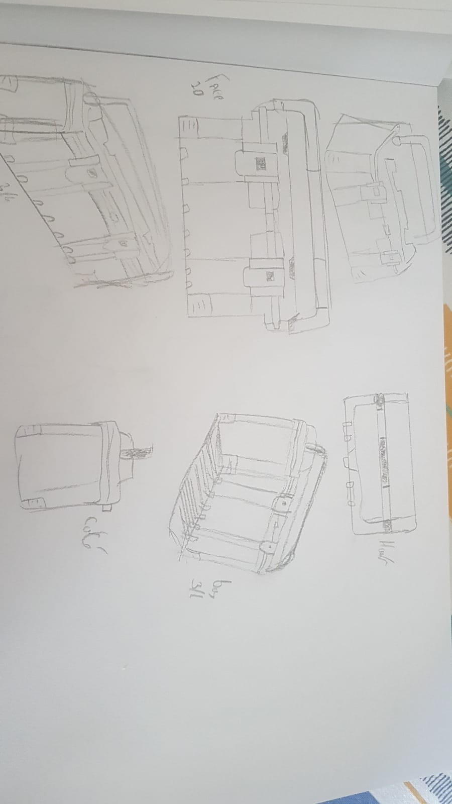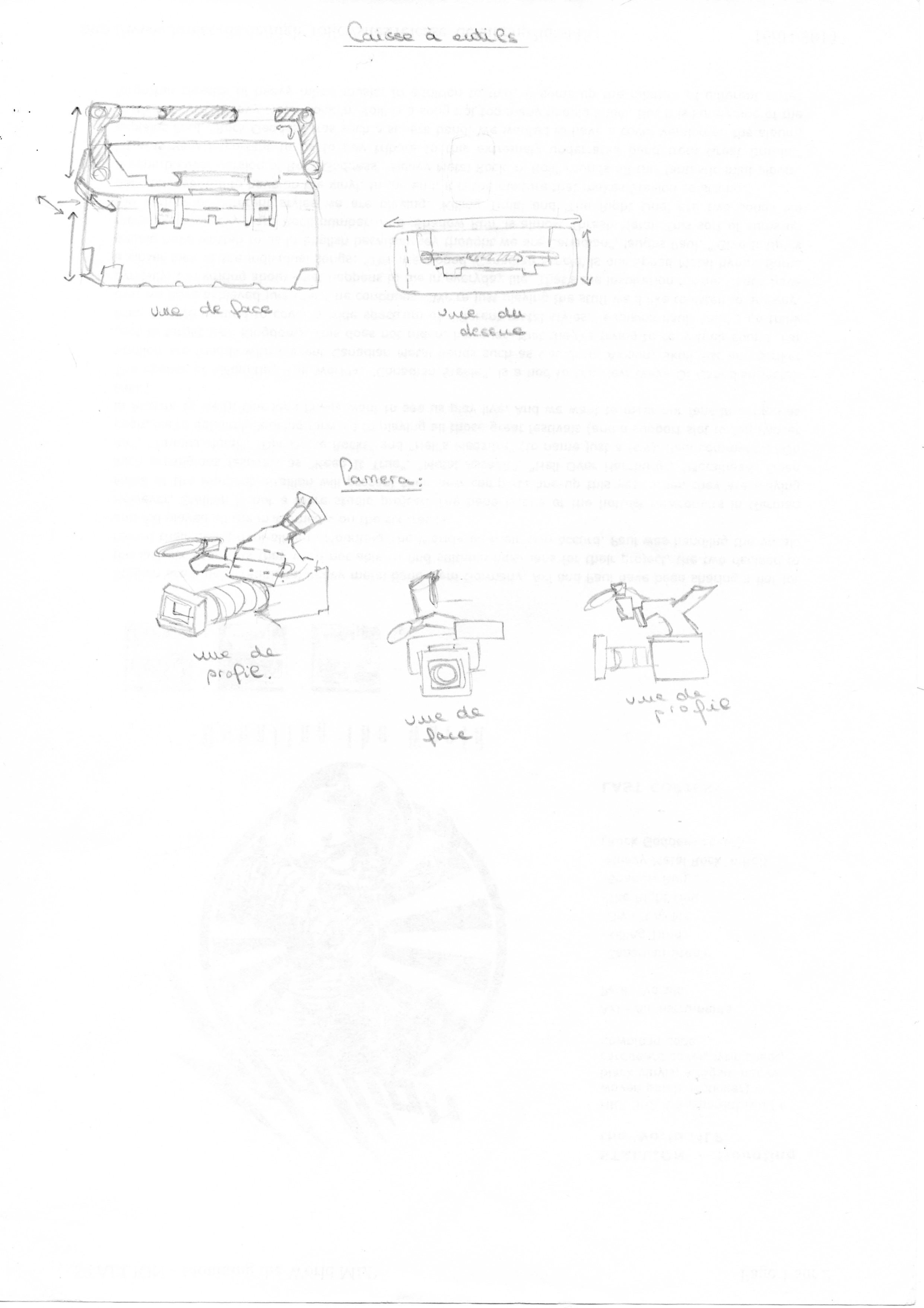 Ça manque encore d'observation et de compréhension des volumes tout ça. Par exemple, sur ta caisse à outils, je vois que tu n'as pas compris le dessus. Et tu as des incohérences entre tes deux vues. Sur celle en 3D, tu me montres que la poignée se fixe sur le dessus, à l'aplomb des bords de la boite. Celle de dessus, la poignée est vraiment vers l'intérieur, et il y a une marge avec les bords de la boite. On retrouve le même genre de souci sur la caméra, on sent que tu ne comprends pas trop comment les éléments sont agencés les uns par rapport aux autres. Qu'est-ce qui est fixé à quoi et où. Donc à retravailler, observe bien, n'hésite pas à commencer par des formes géométriques simples. Prends le temps de bien comprendre ton modèle, essaie d'être logique, si un élément est placé à tel endroit, alors si je tourne, je le retrouve où ? etc.
