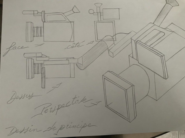 Voici les vues 3D de ma camera. Je trouve que c'est difficile de conserver les bonnes proportions tout en gardant la perspective correcte... Le tube est encore trop long même s'ila été raccourcie deux fois déjà 😆