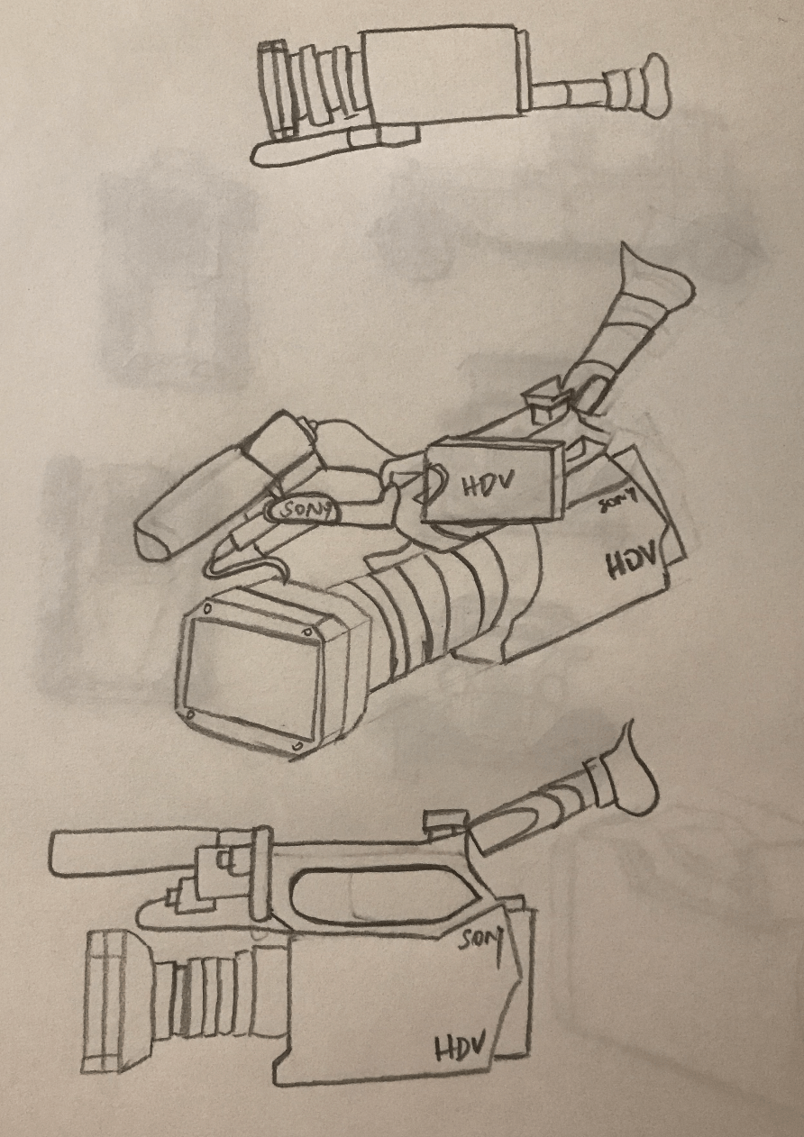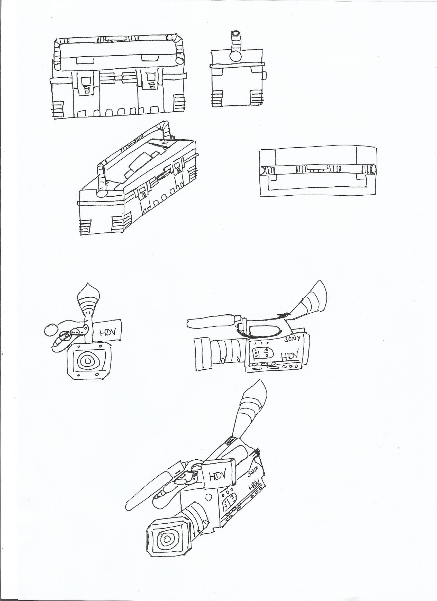 Voici la caméra 3D vue sous différents angles, et au crayon à papier (pour changer du feutre que j'utilise habituellement).