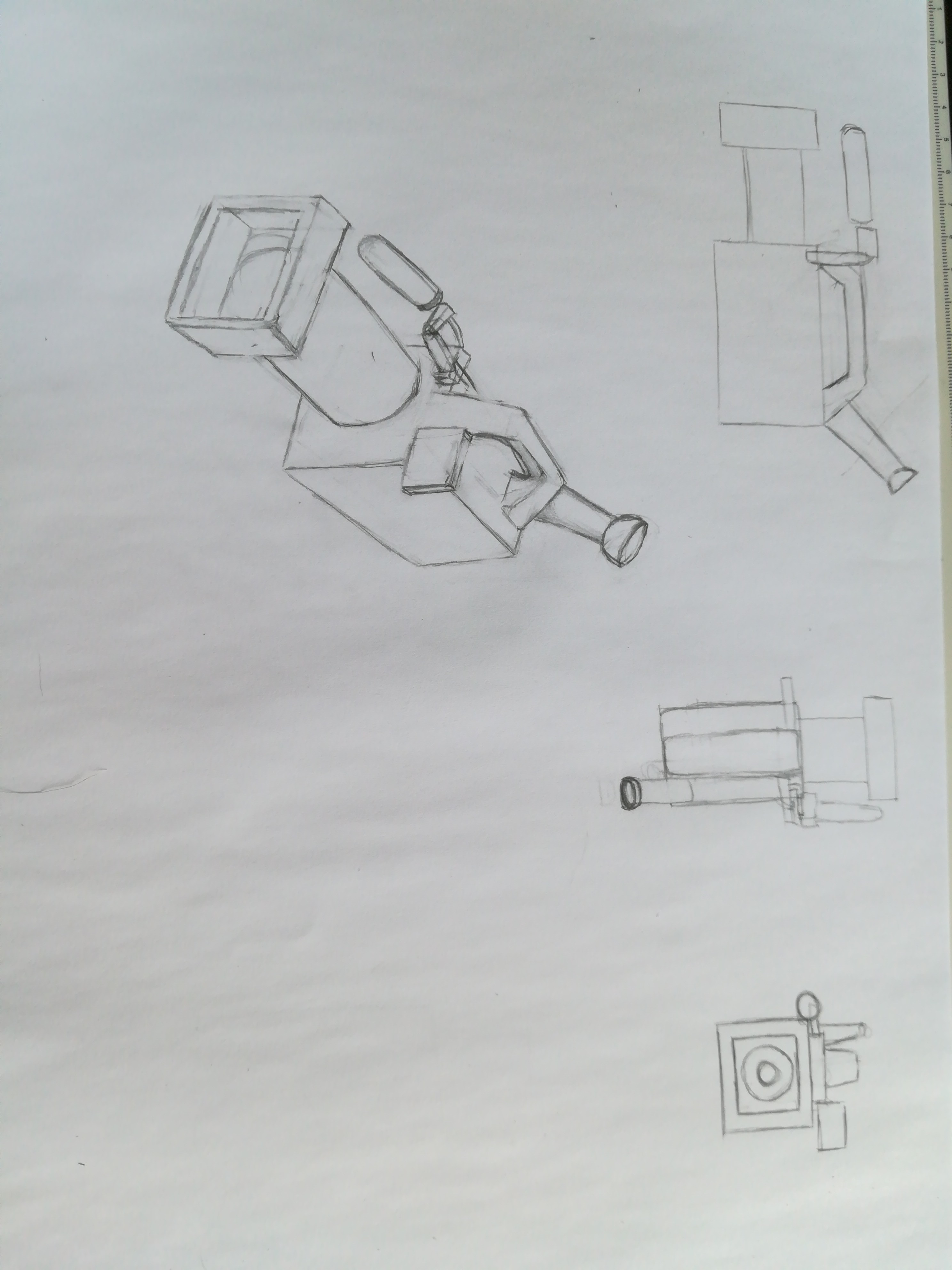 je viens de terminer les premiers croquis pour la caméra (qui donne du fil à retordre !).