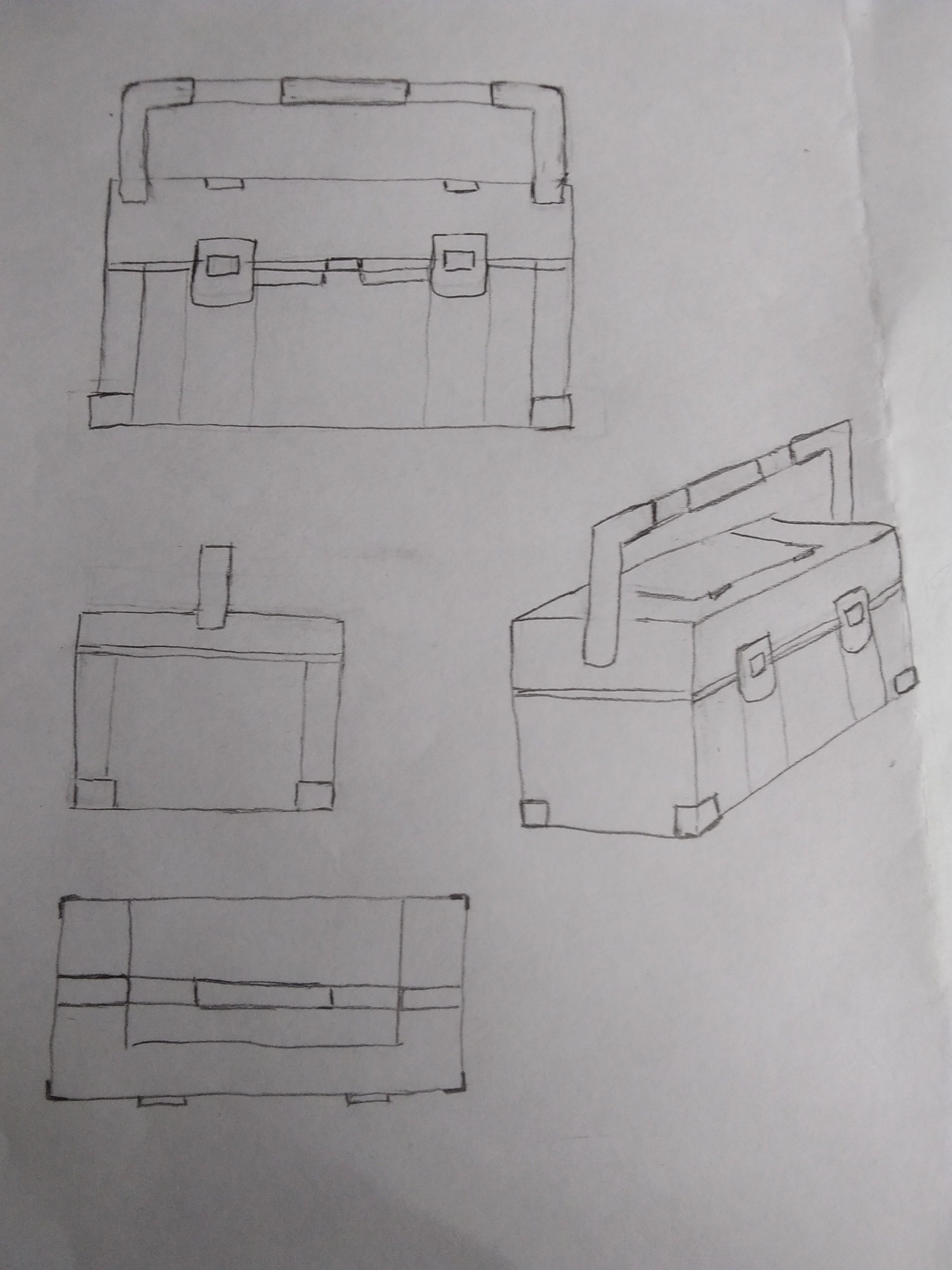 C'est plutôt bien tout ça. Tu y es allé fort sur l'épaisseur des détails de la caisse à outils, mais tu as bien compris la structure. Attention quand même quand tu indiques du volume quelque part, je devrais le retrouver partout (ici tu as mis pleins d'éléments en volume sur les vues 3D, mais aucun sur les vues 2D).