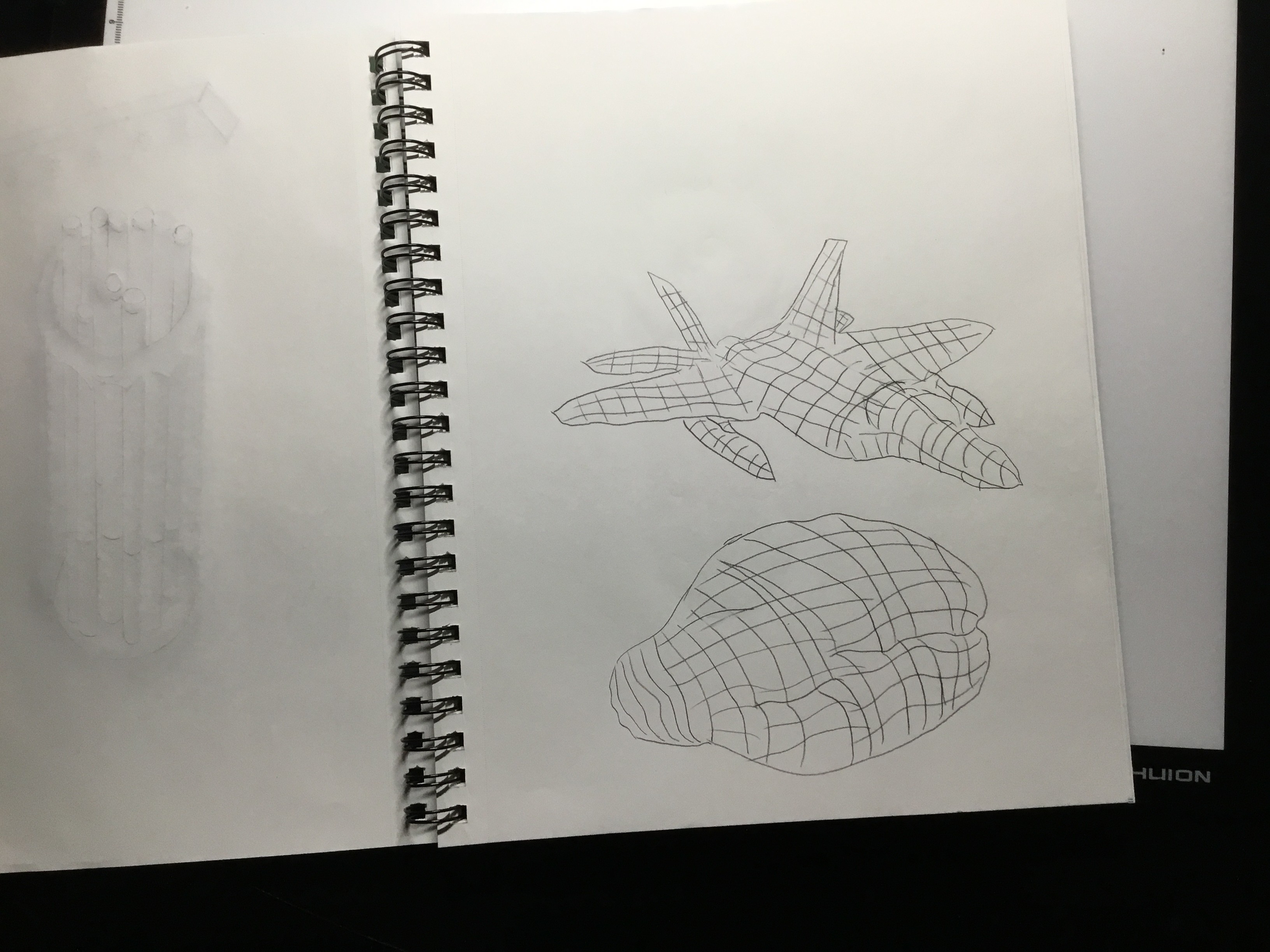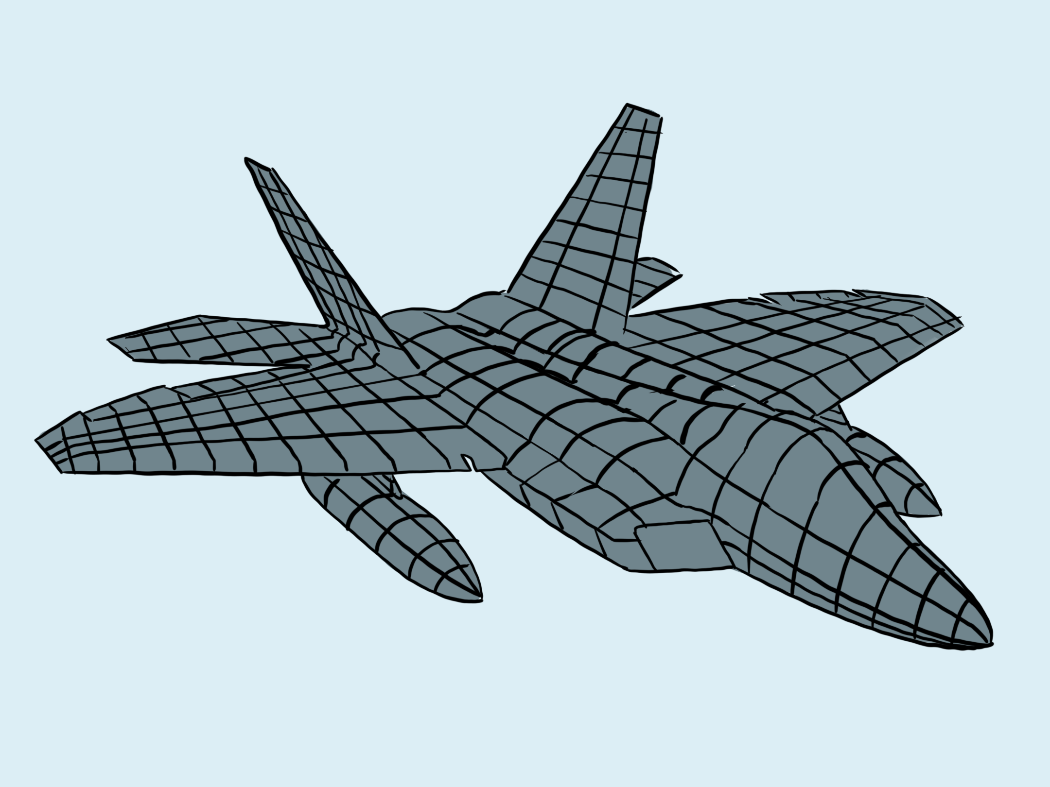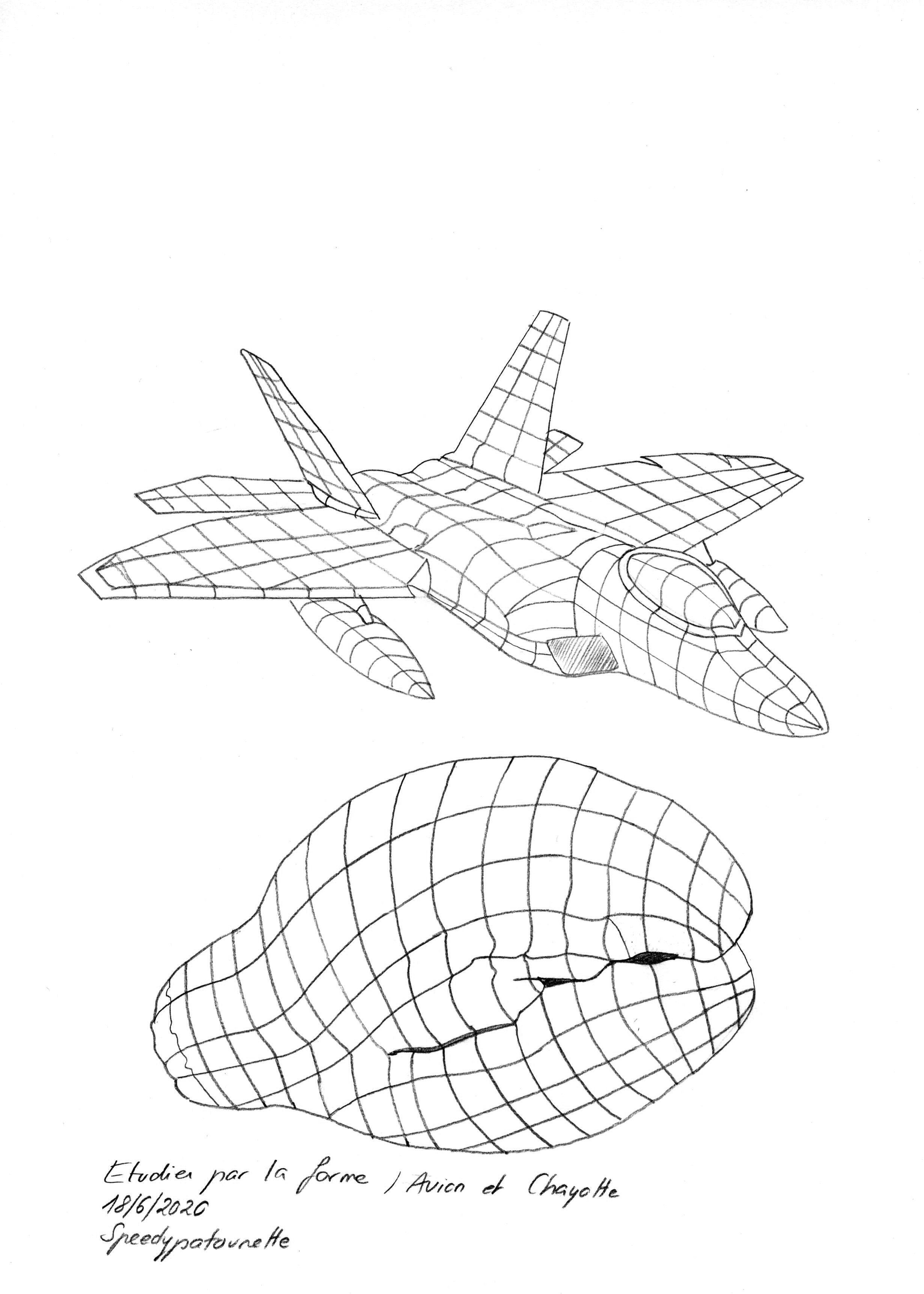 En effet Pacha, on voit que tu n'as pas compris l'exercice. Il permet de comprendre le volume de l'objet. Comme si tu prenais n'importe quel objet et que tu traçais un quadrillage dessus. Ça te permet de comprendre les formes et les volumes. Pour un cube c'est assez simple, mais pour des formes plus complexes comme ici, il faut bien comprendre le volume pour faire quelque chose de cohérent. Par exemple, vu le quadrillage que tu as fait sur les ailes de l'avion, les droites sont un peu ondulées, mais pas des deux côtés de manière symétrique. Ce qui est étrange car les ailes d'un avion sont plates, et bien droites.