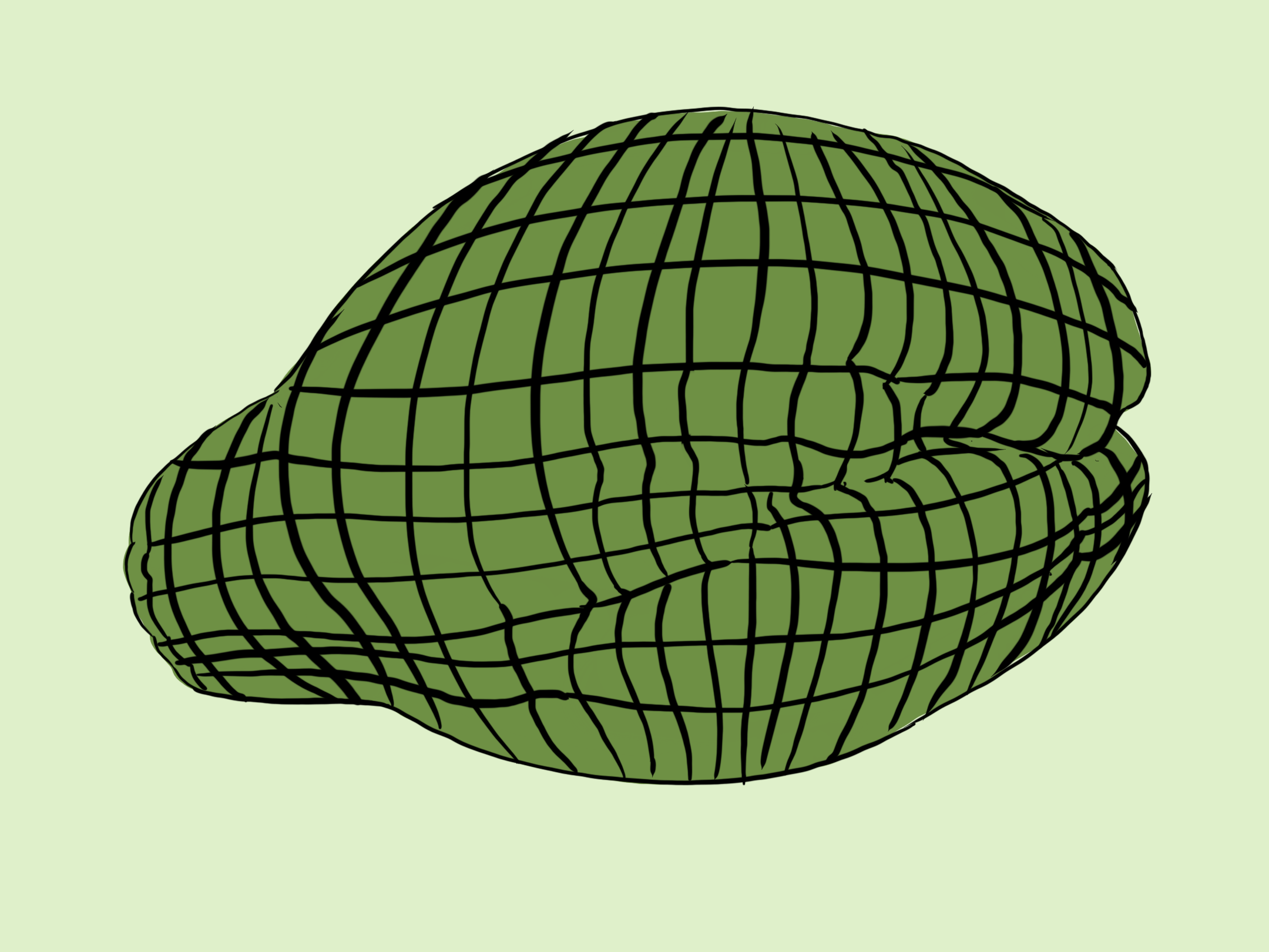 Si tu as un citron sous la main, tu peux aussi prendre un feutre et faire un quadrillage dessus pour observer comment ça se passe. Ici tu as 3 lignes qui se croisent, si on enlève celle qui a une forme d'onde, on est pas loin du bon je pense :)