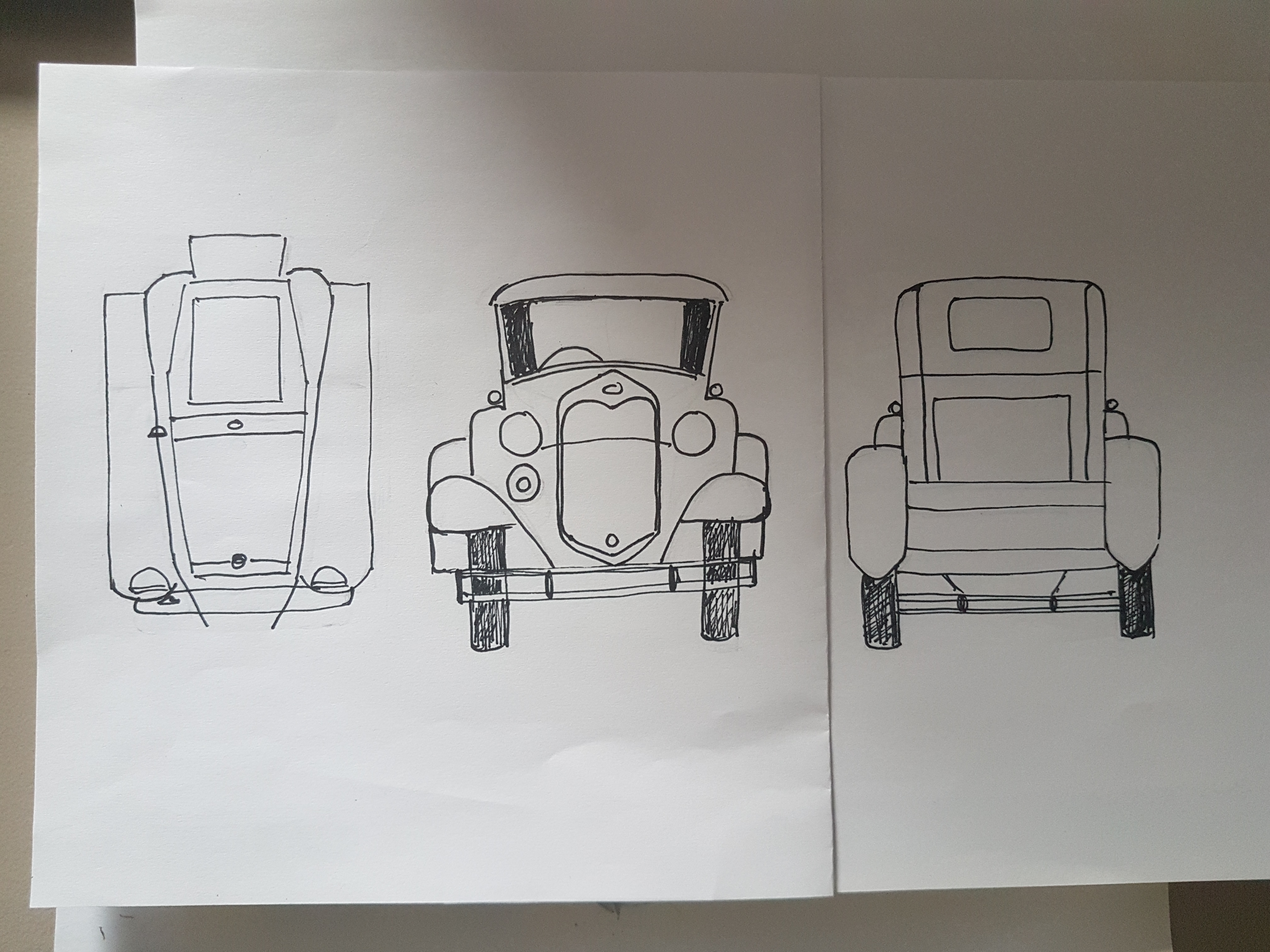 Ah, pas facile la voiture, mais tu t'en ai bien sorti quand même. Attention de ne pas trop écraser tes formes quand même. Beau travail!