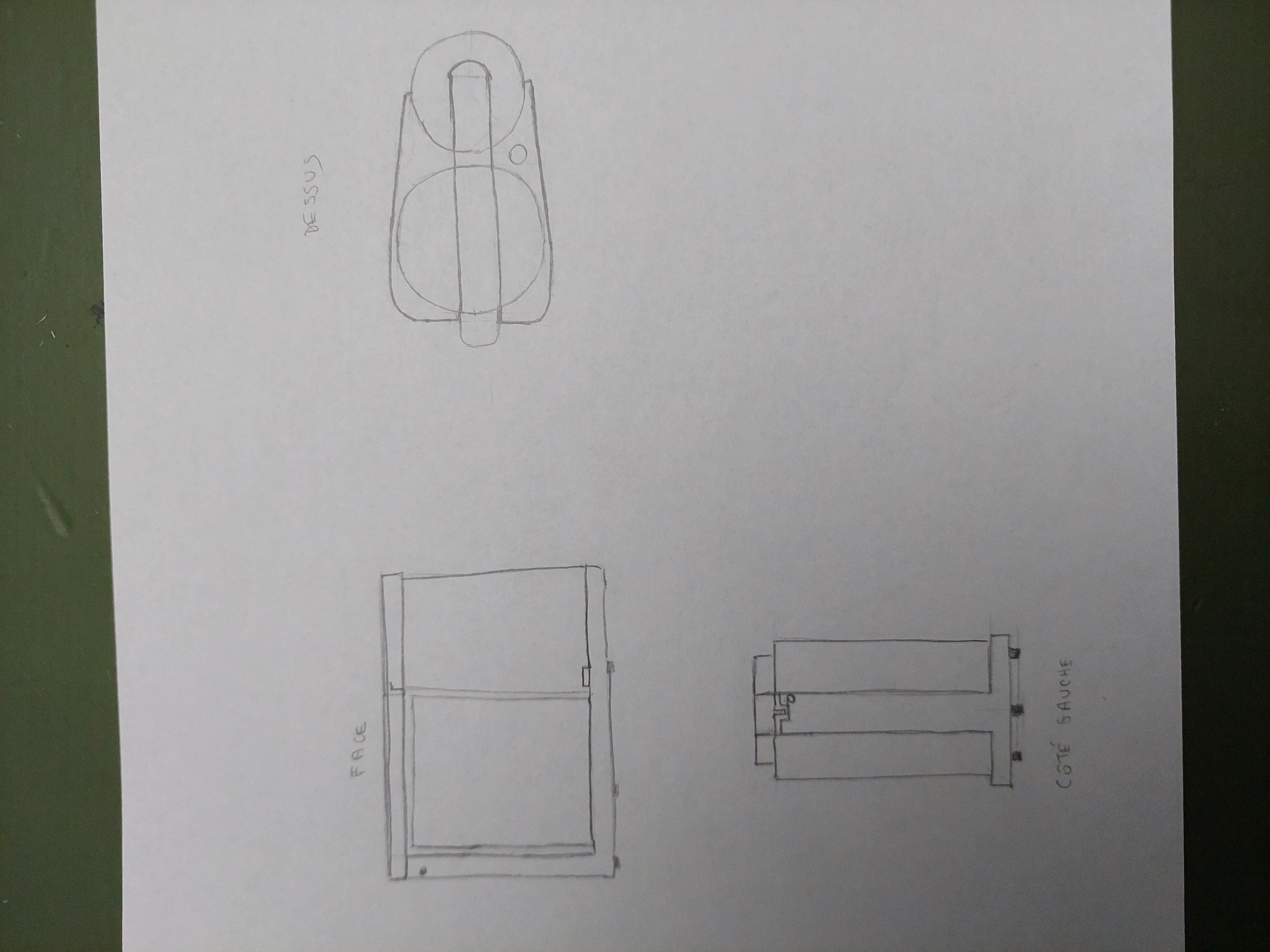 Et bien pour un premier dessin c'est vraiment pas mal !! Globalmemét tu as bien analyser, fait attention à la symétrie pour la vue de dessus, et pour la vue de face l'objet est légèrement plus allongé, mais dans l'ensemble je n'ai pas grand chose à dire :)