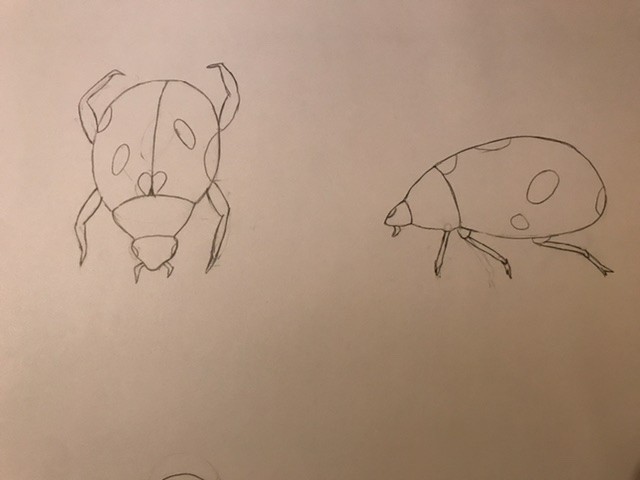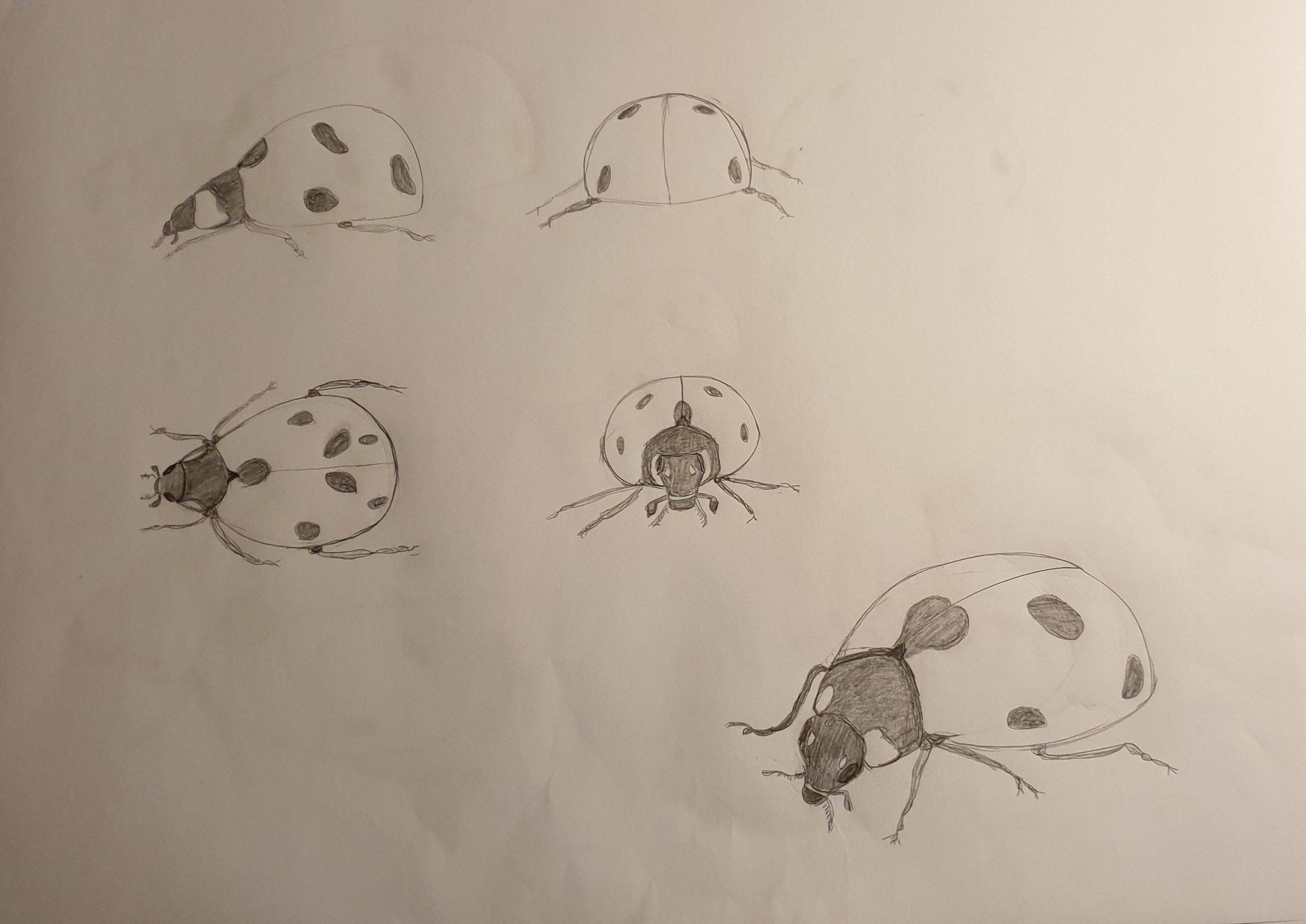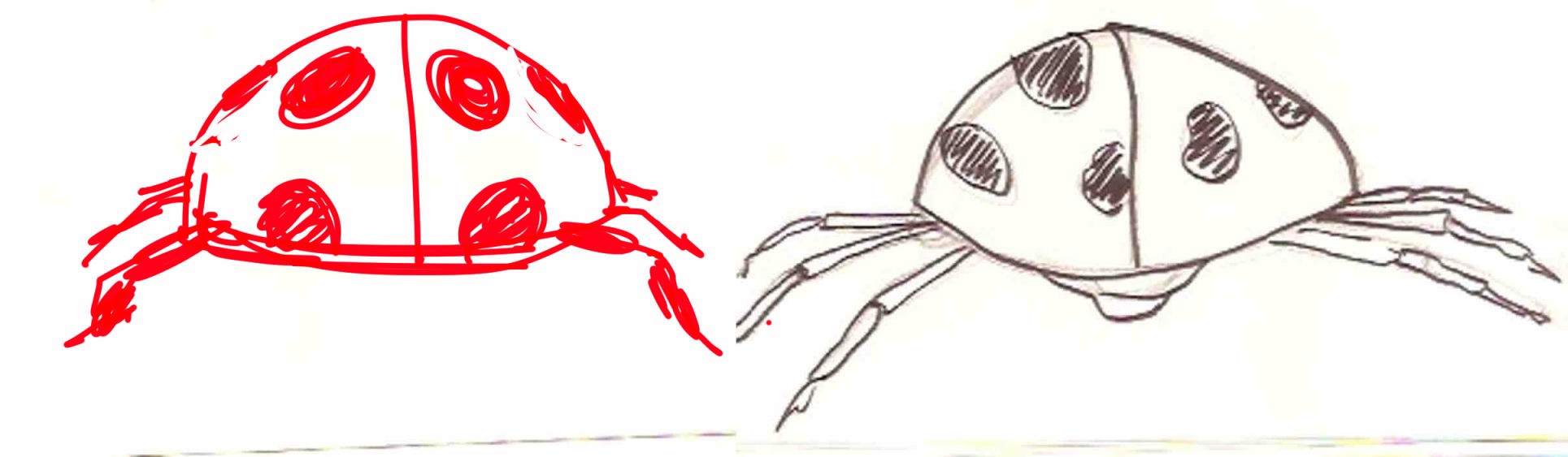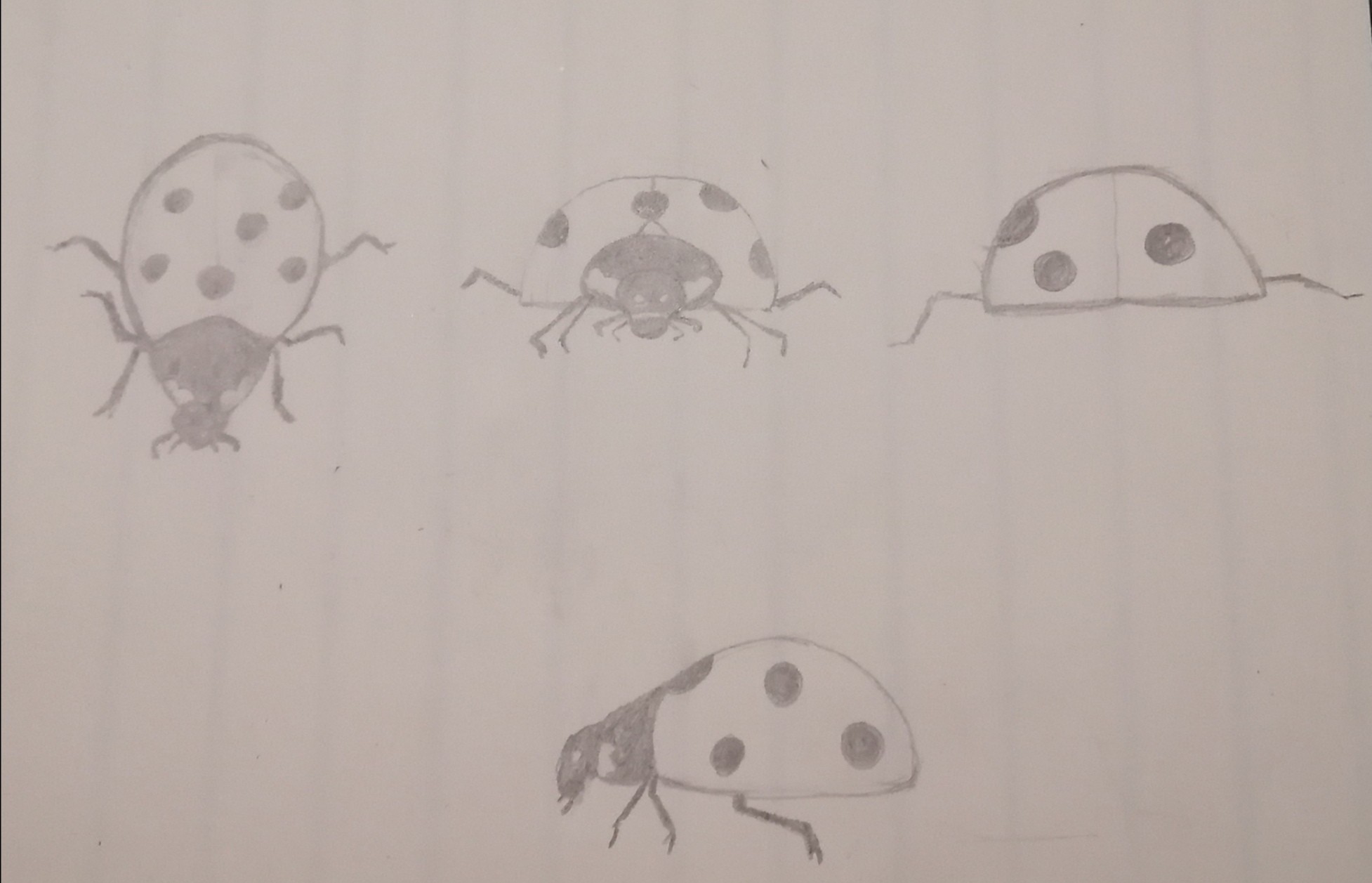 No es fácil dibujar la mariquita. Pero aquí está mi intento.