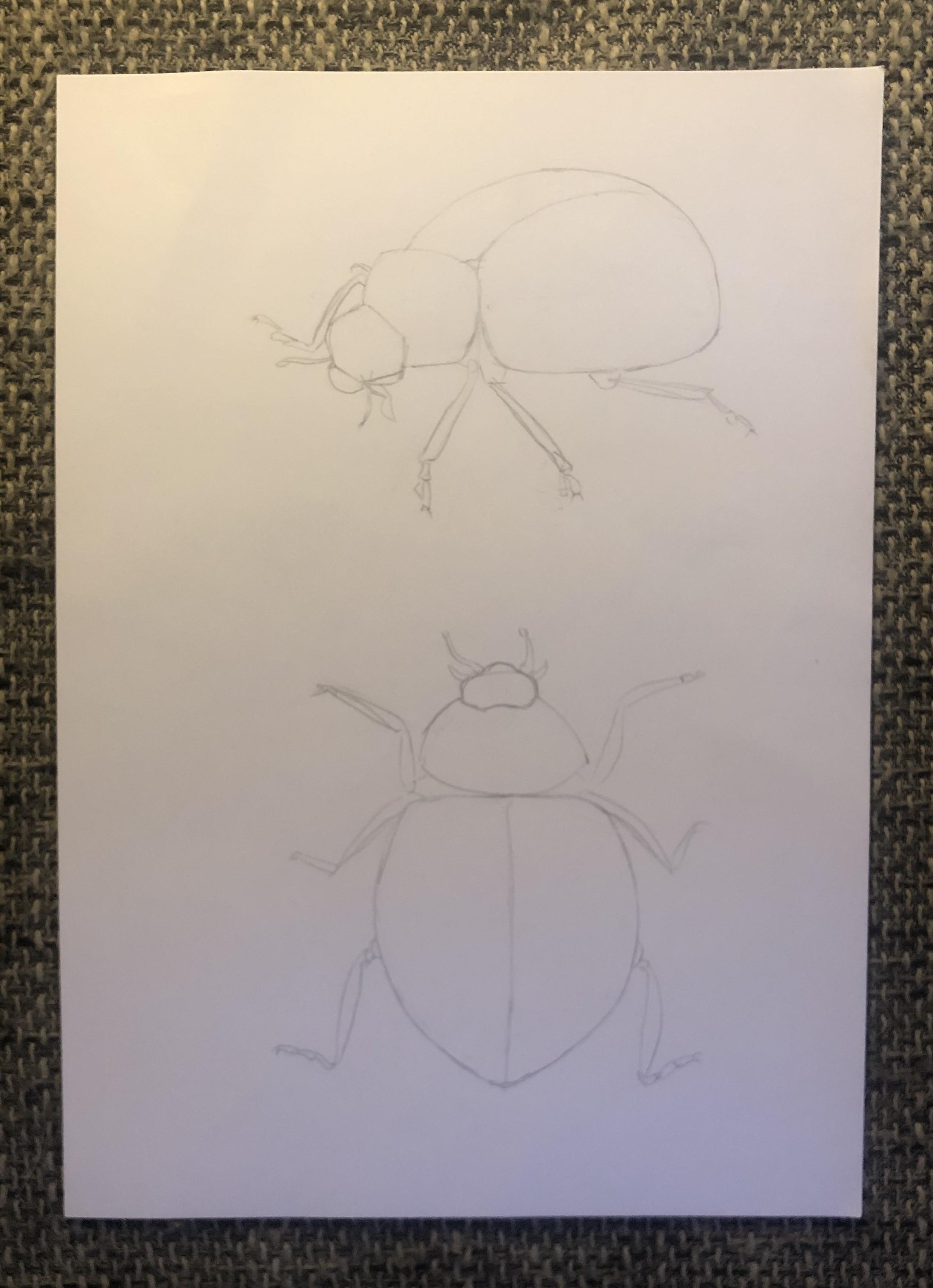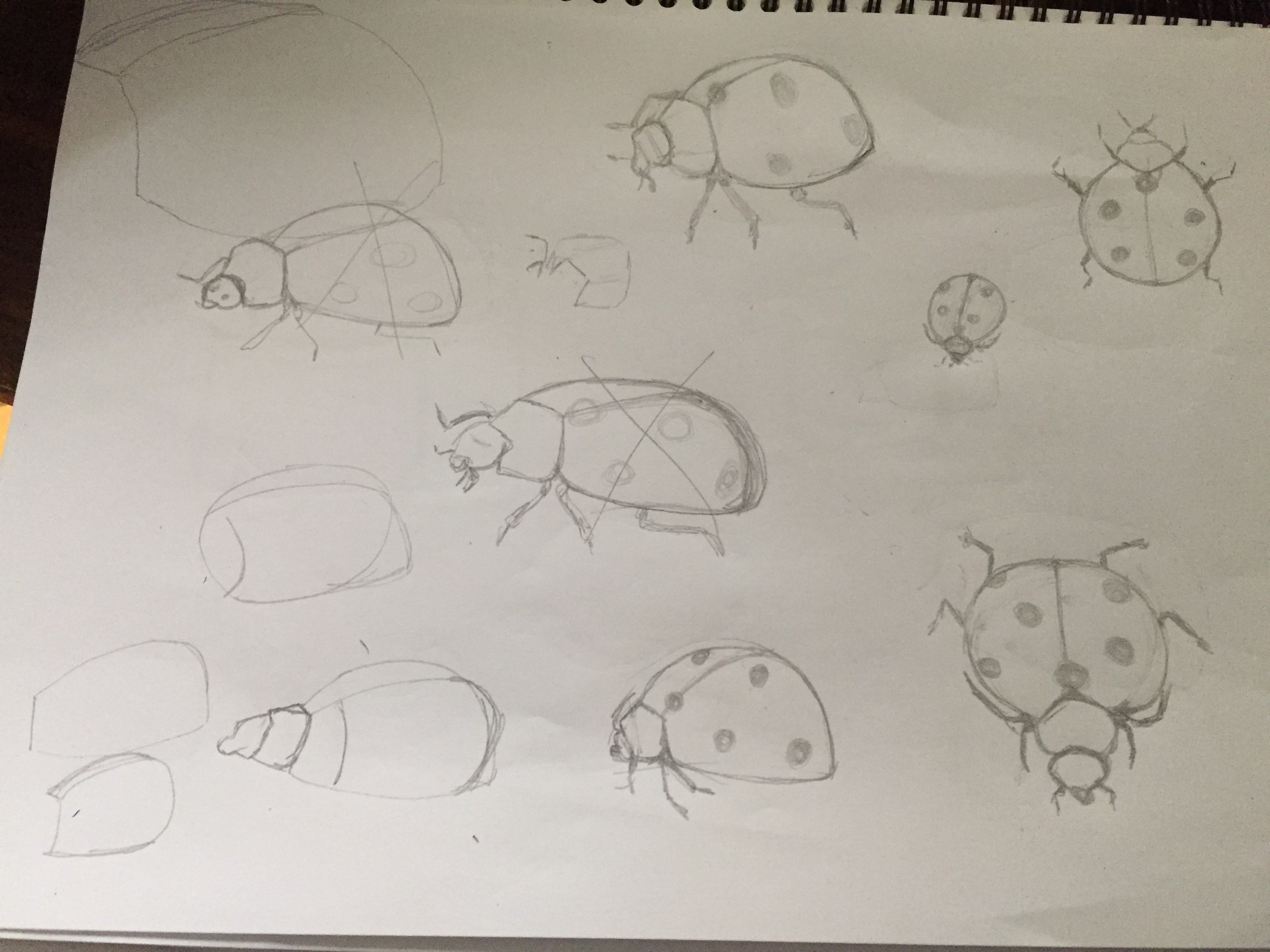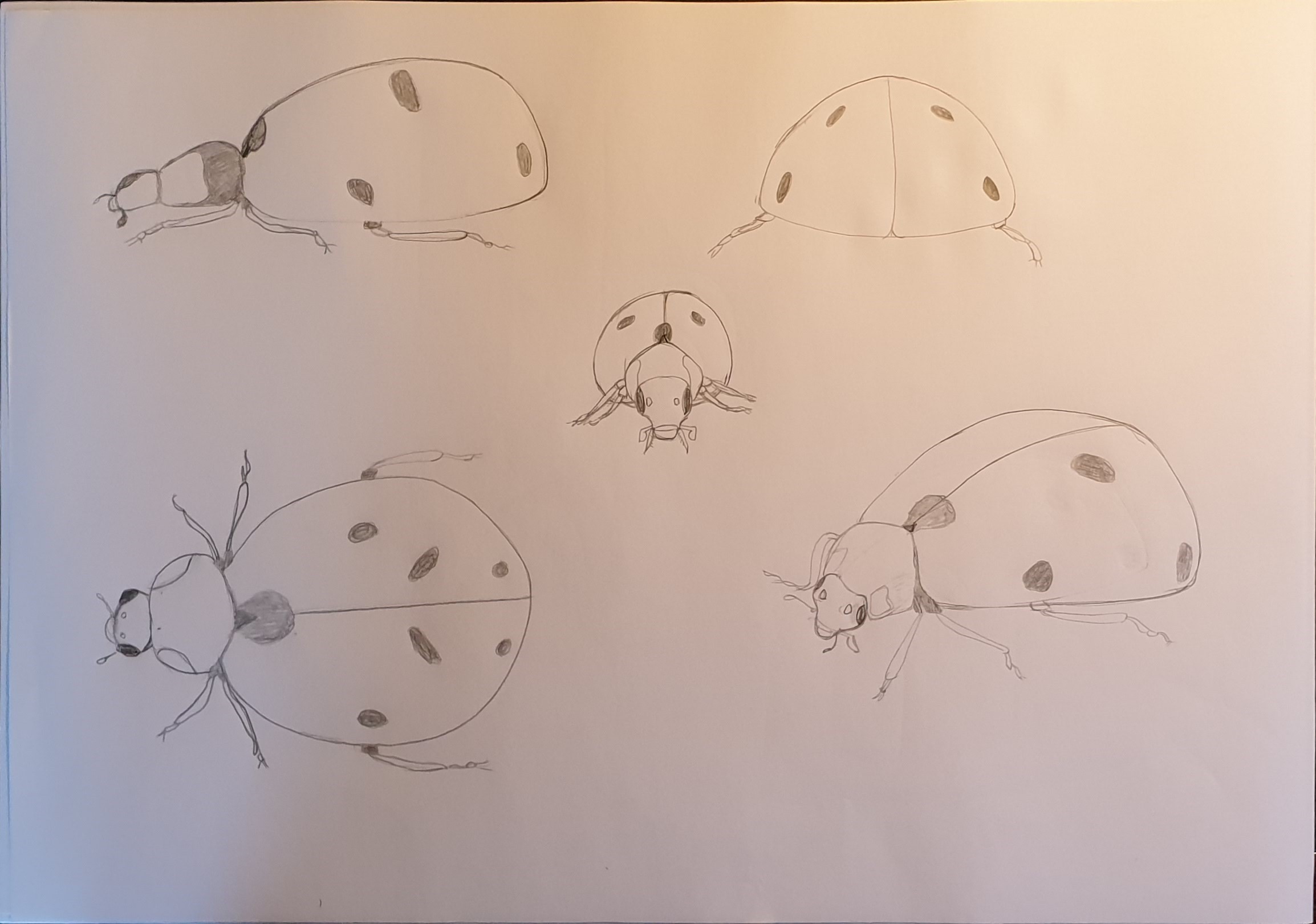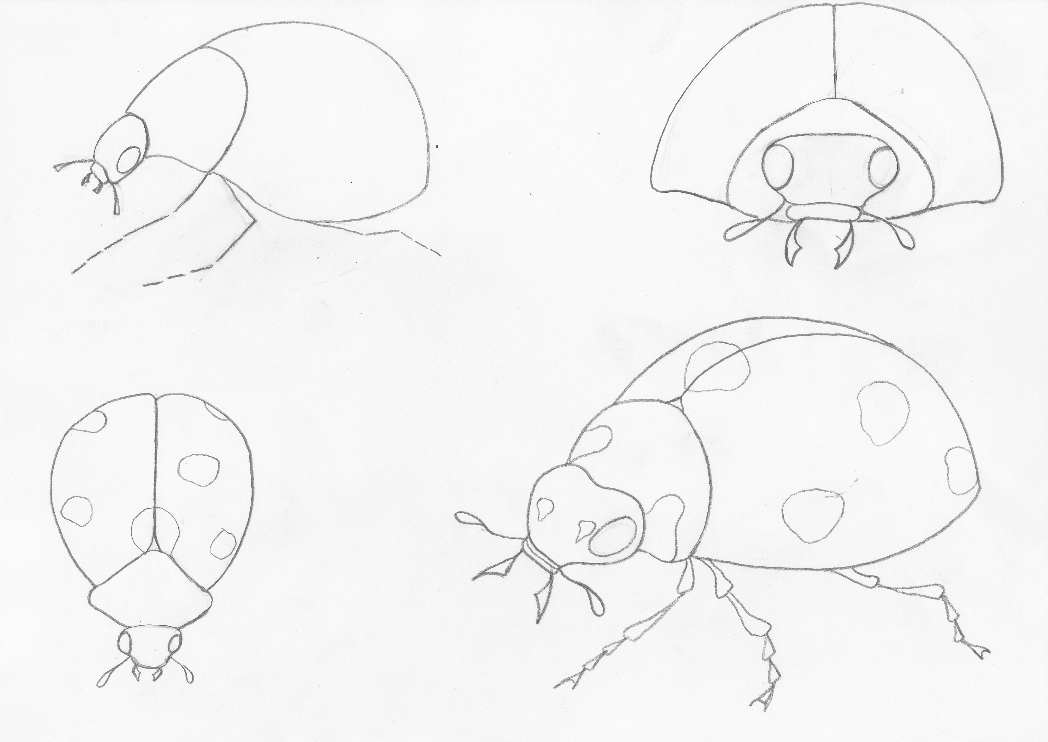 No es fácil dibujar la mariquita. Pero aquí está mi intento.